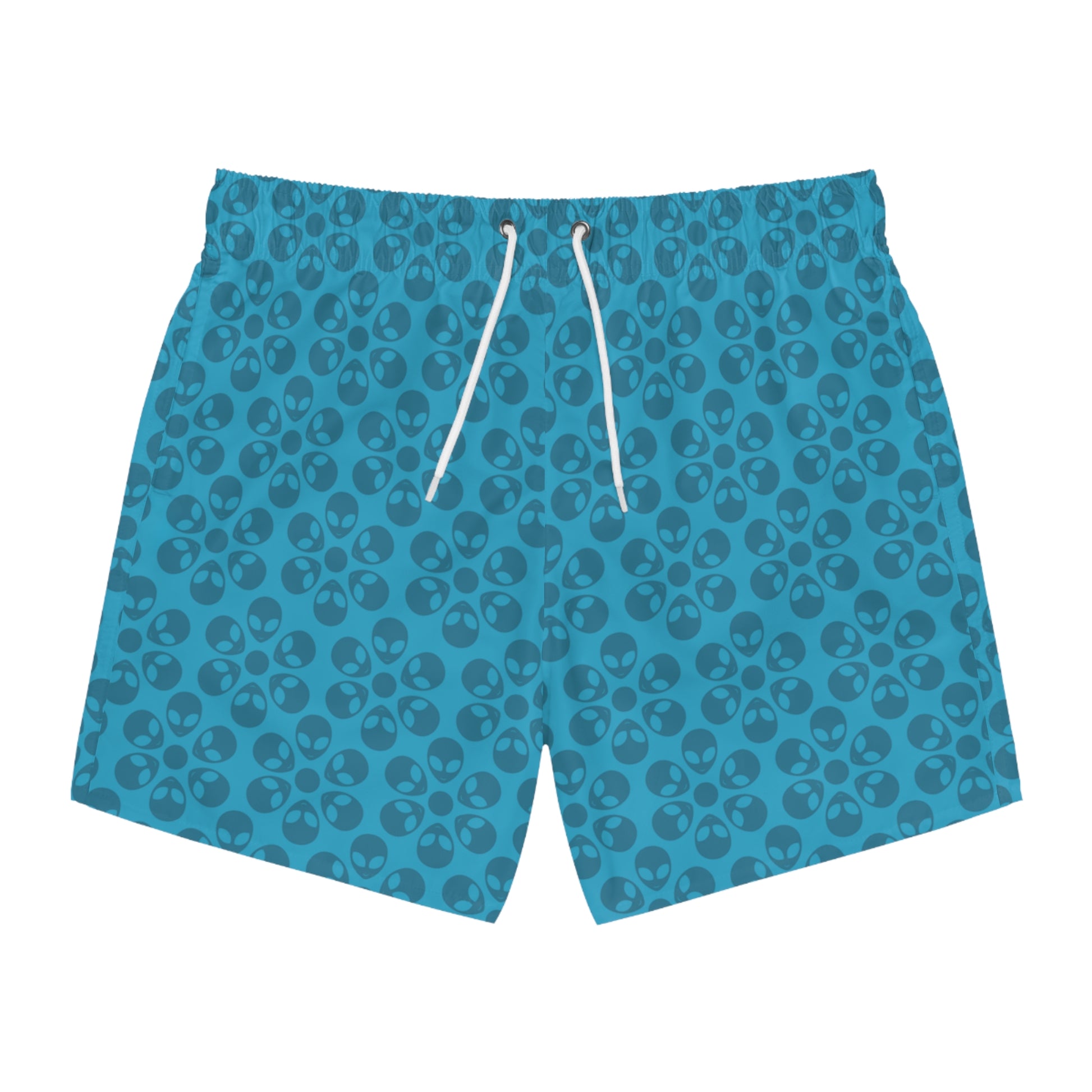 Stylish AOP Swim Trunks for Beach Days Summer Fun Pool Parties Vacation Wear Gift for Him Alien Flowers Turquoise