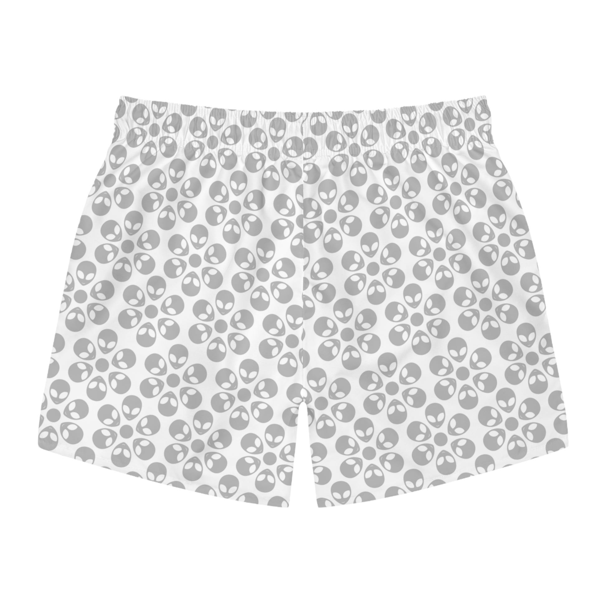 Stylish AOP Swim Trunks for Beach Days Summer Fun Pool Parties Vacation Wear Gift for Him Alien Flowers White