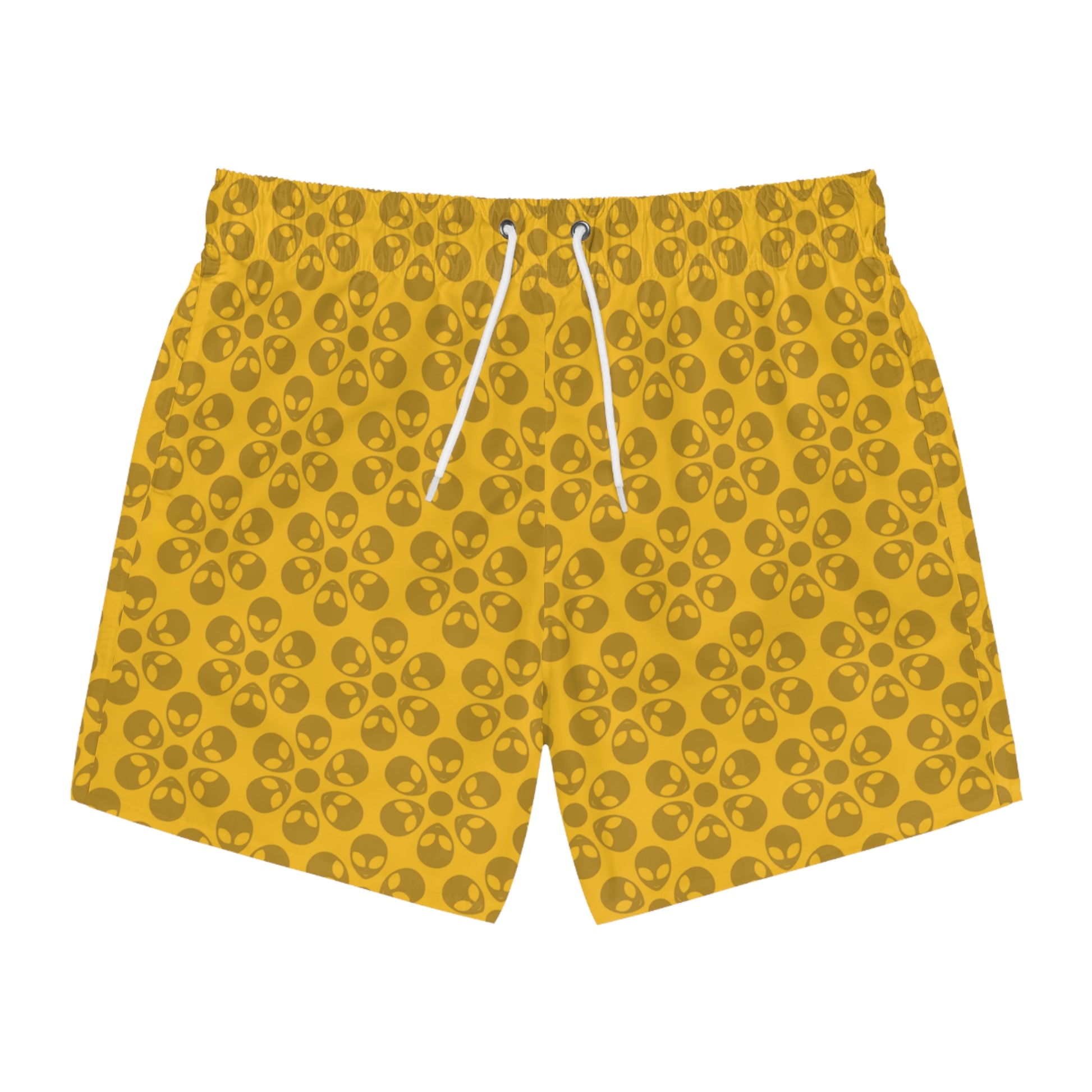 Stylish AOP Swim Trunks for Beach Days Summer Fun Pool Parties Vacation Wear Gift for Him Alien Flowers Yellow