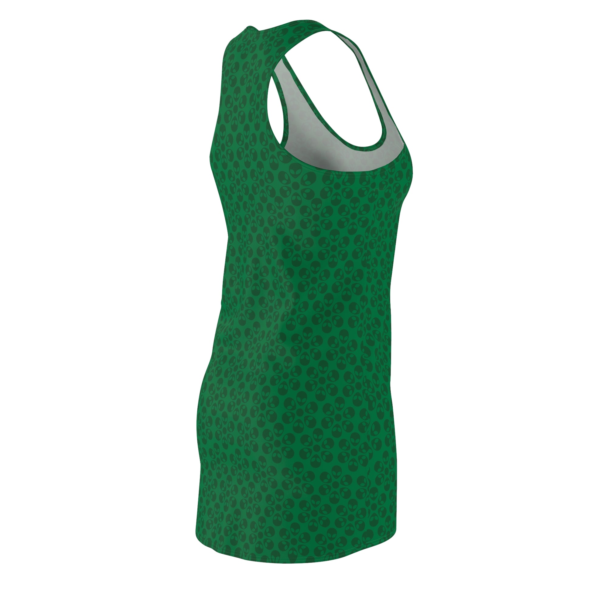 Stylish Floral Racerback Dress Perfect for Summer Beach Days and Casual Outings Trendy Outfit Flower Print Dress Gift for Her Alien Flowers Dark Green