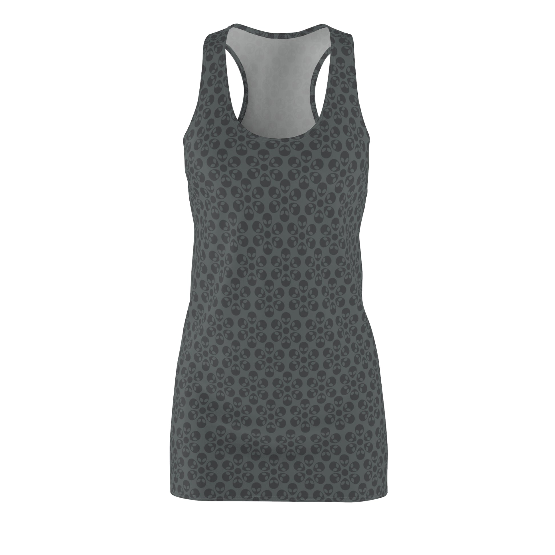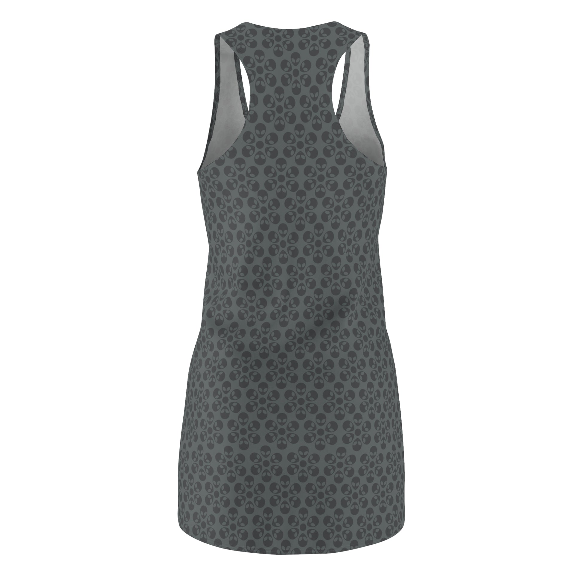 Stylish Floral Racerback Dress Perfect for Summer Beach Days and Casual Outings Trendy Outfit Flower Print Dress Gift for Her Alien Flowers Dark Grey