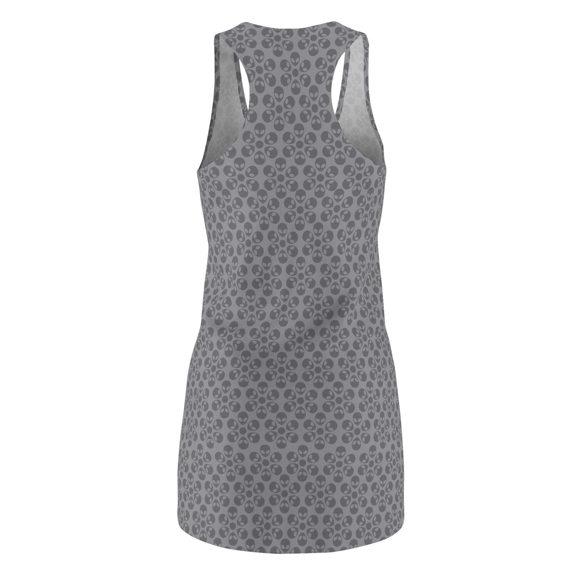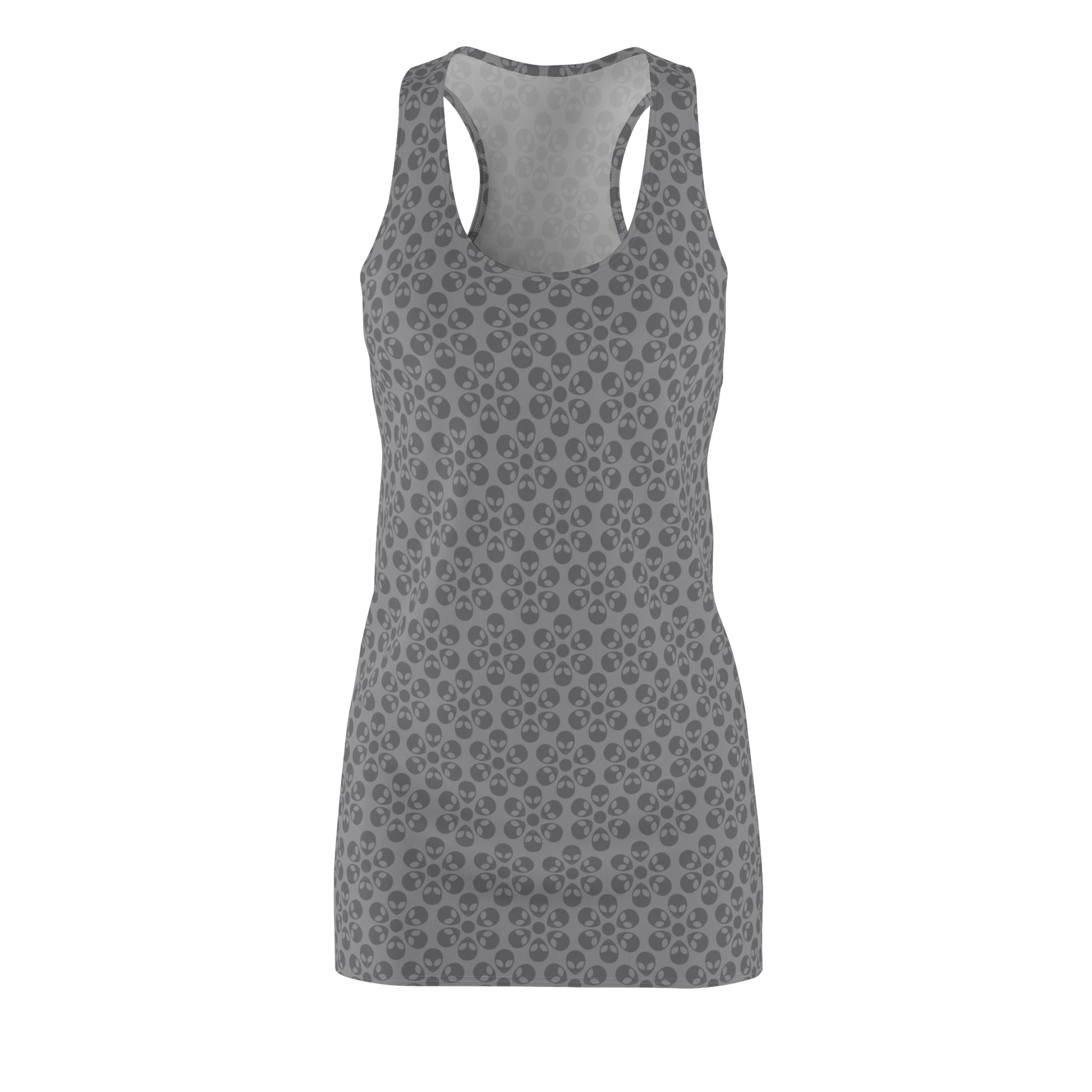 Stylish Floral Racerback Dress Perfect for Summer Beach Days and Casual Outings Trendy Outfit Flower Print Dress Gift for Her Alien Flowers Grey