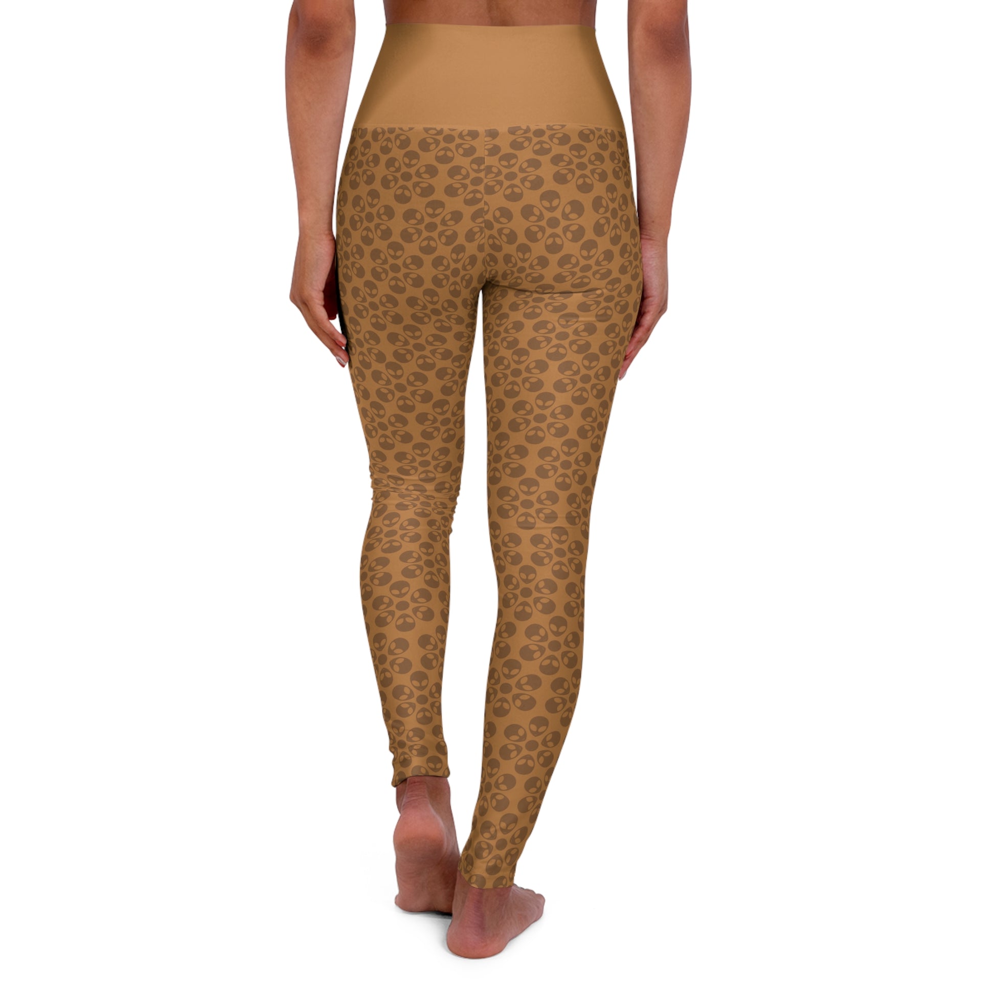 Stylish High Waisted Yoga Leggings Activewear Fitness Leggings Workout Pants Gift for Her Yoga Apparel Alien Flowers Light Brown