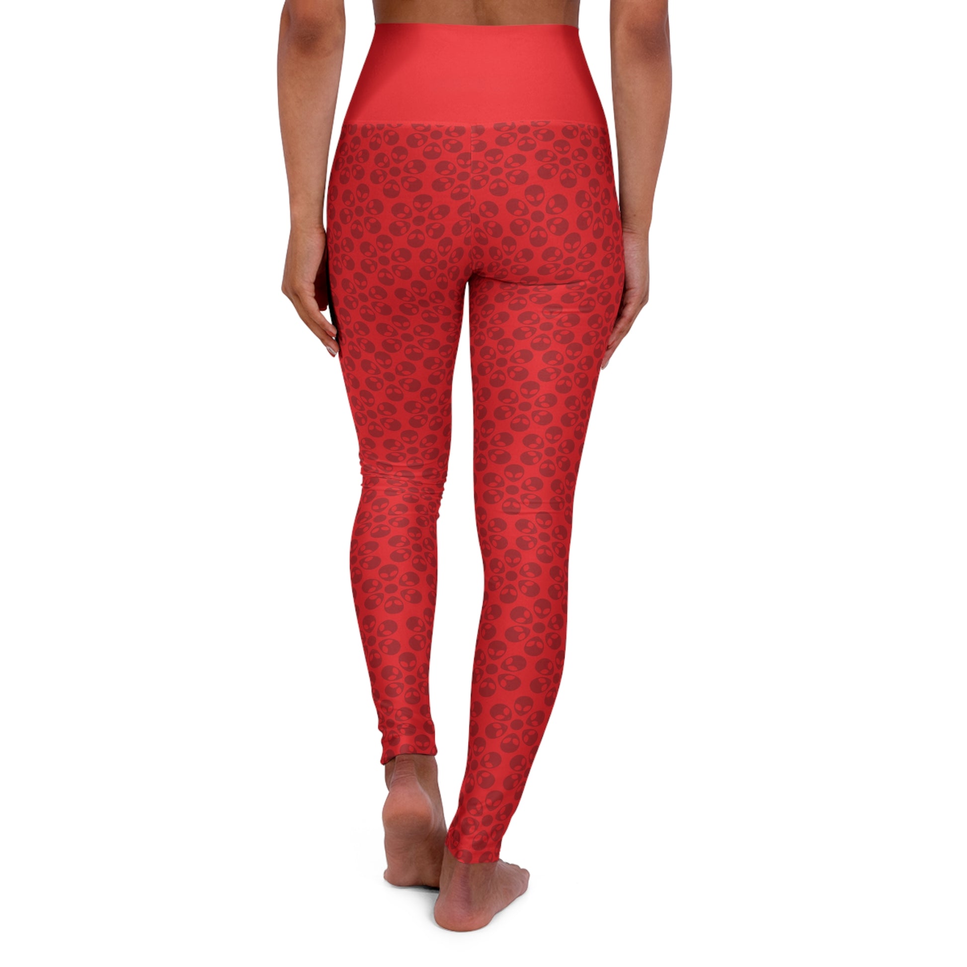 Stylish High Waisted Yoga Leggings Activewear Fitness Leggings Workout Pants Gift for Her Yoga Apparel Alien Flowers Red