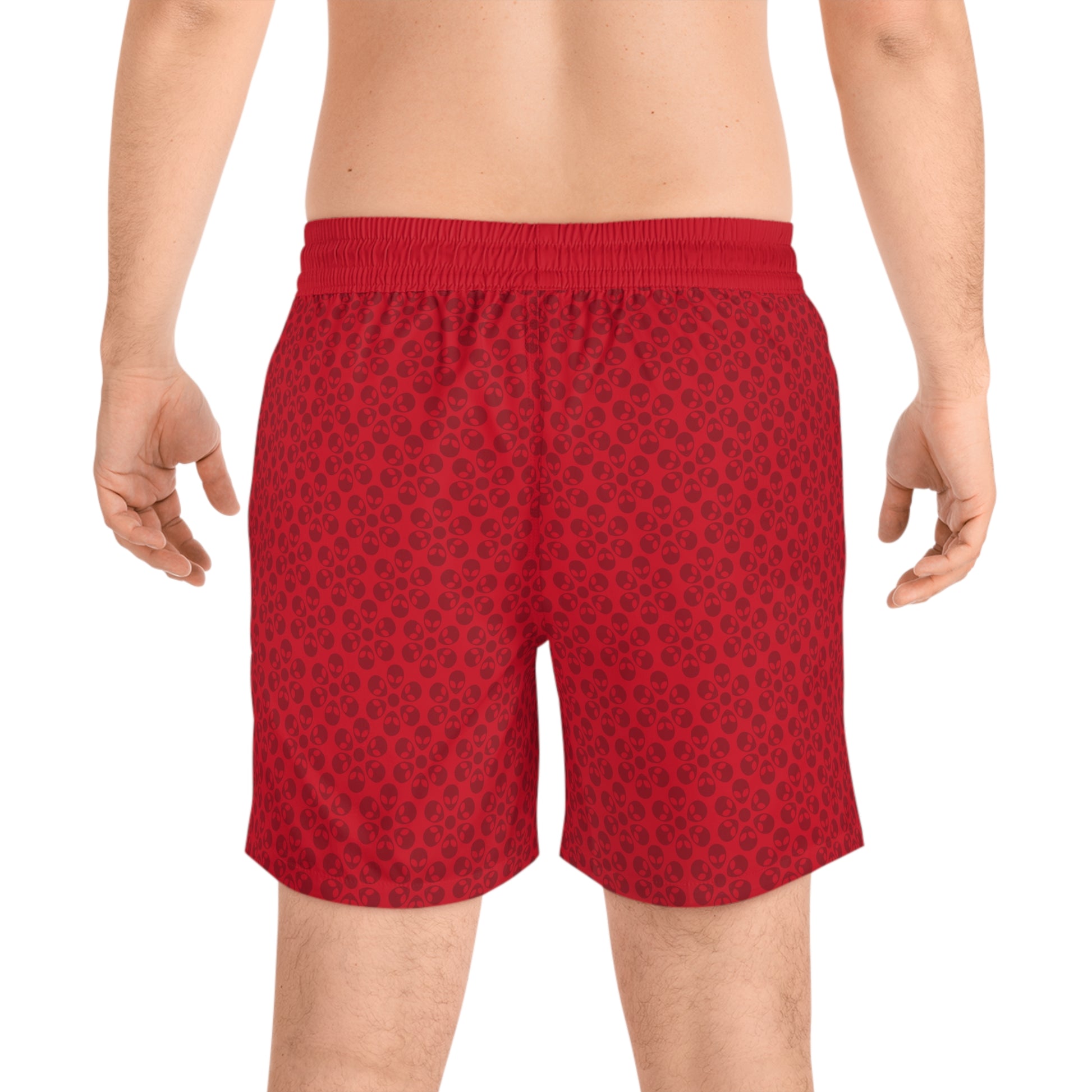 Stylish Mens MidLength Swim Shorts Beachwear Vacation Essentials Poolside Comfort Summer Outfit Trendy Swimwear Alien Flowers Dark Red