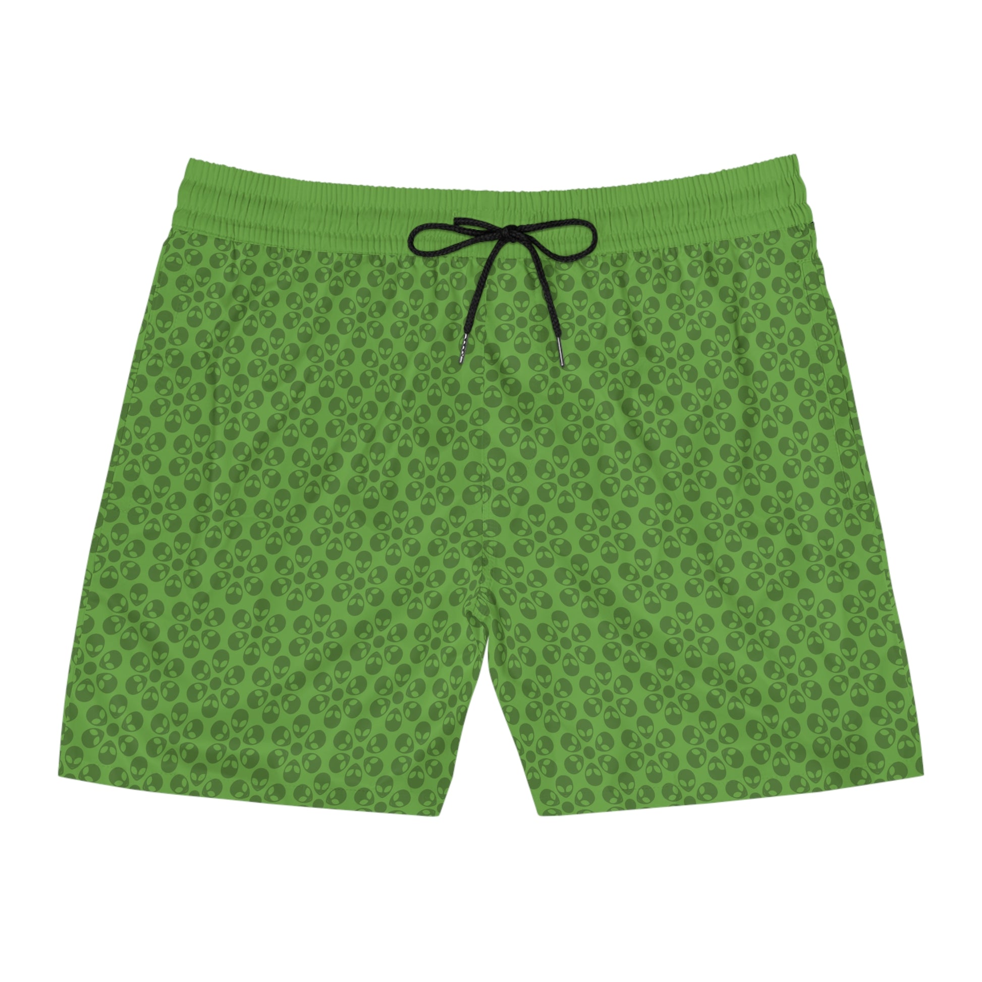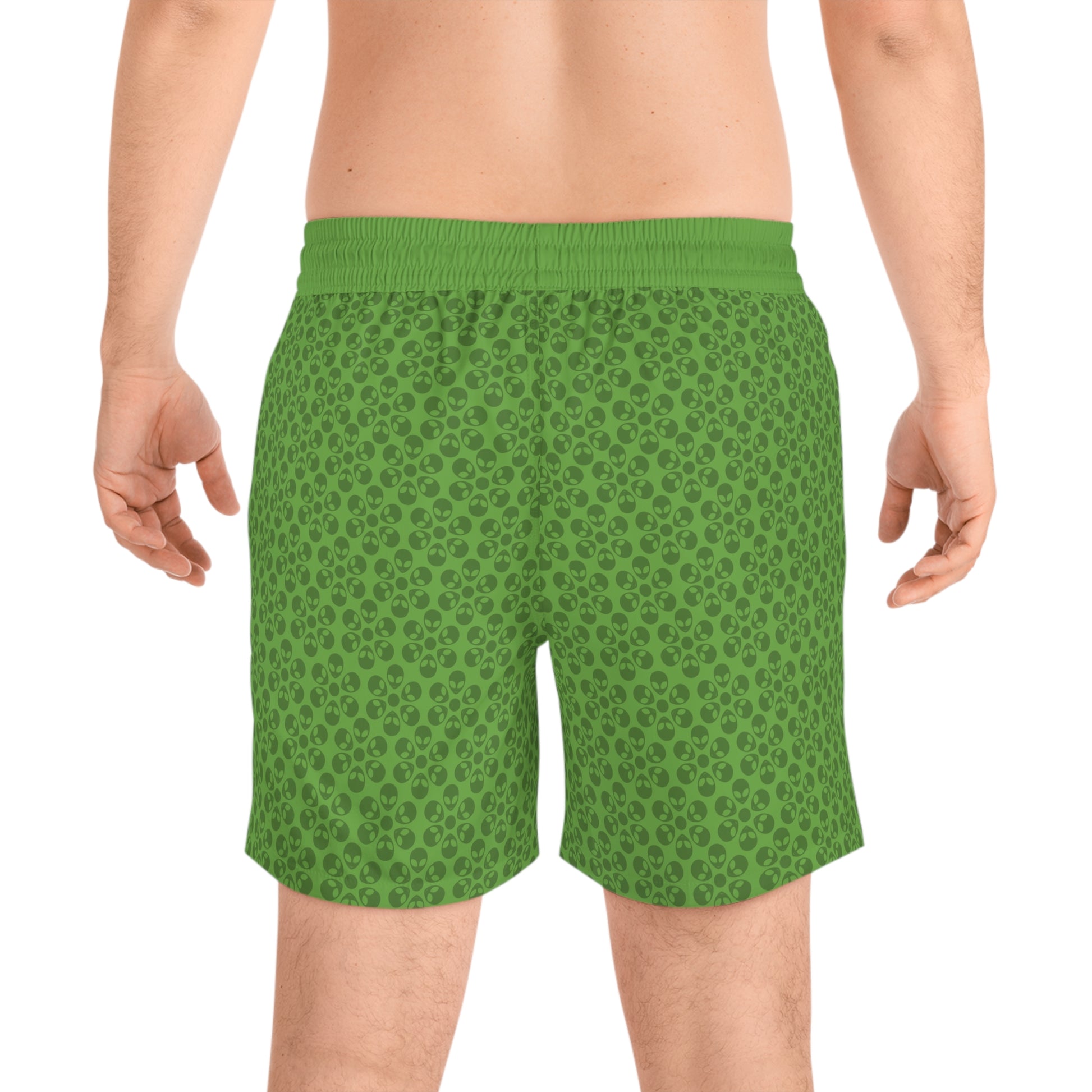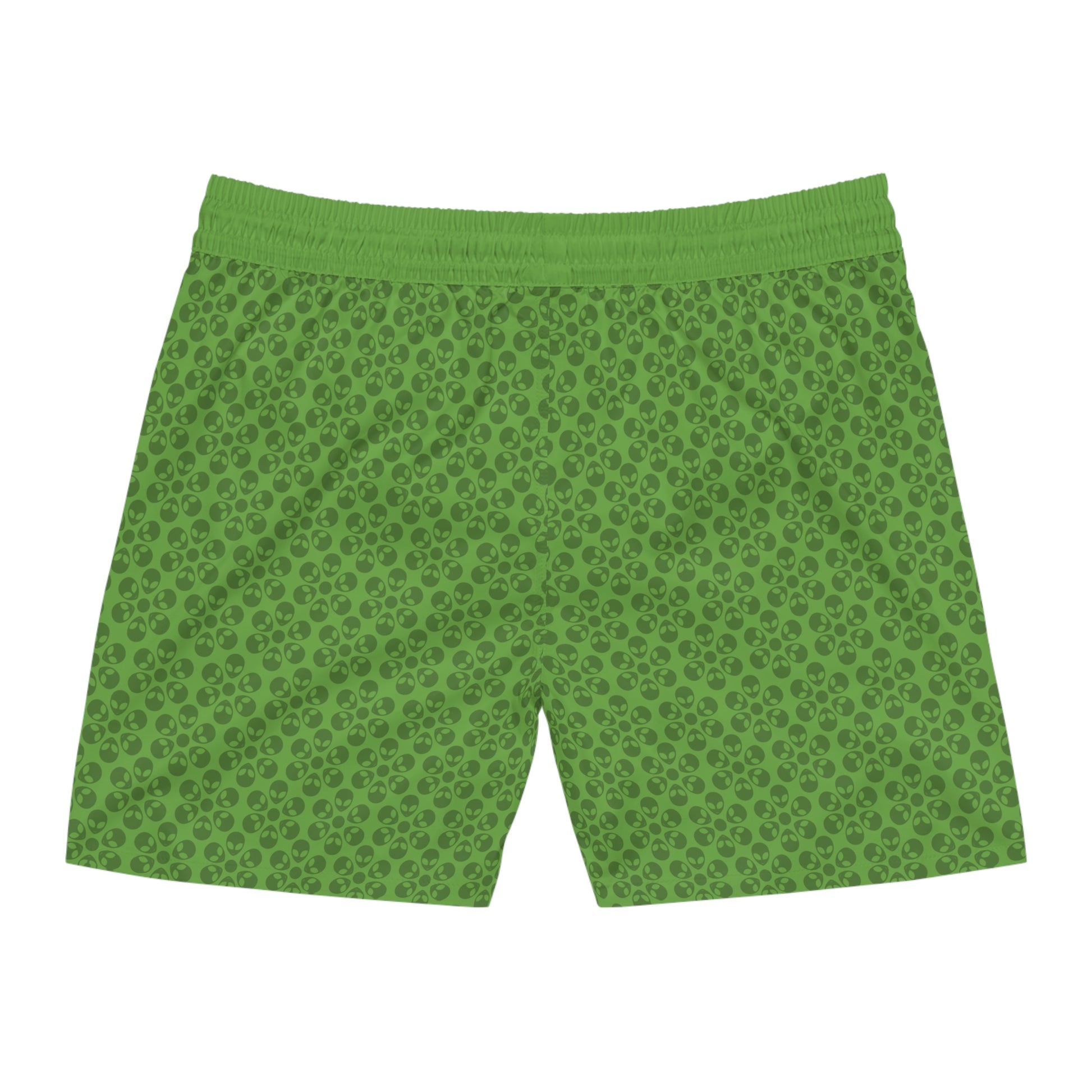 Stylish Mens MidLength Swim Shorts Beachwear Vacation Essentials Poolside Comfort Summer Outfit Trendy Swimwear Alien Flowers Green