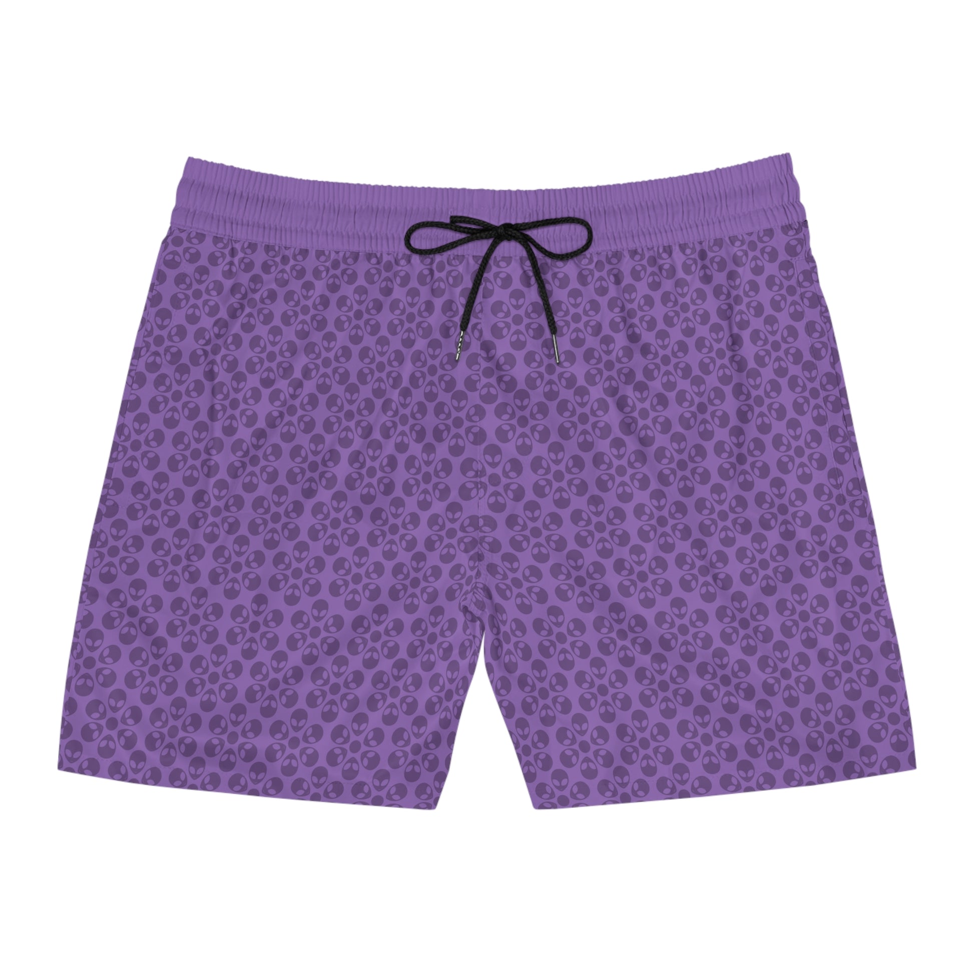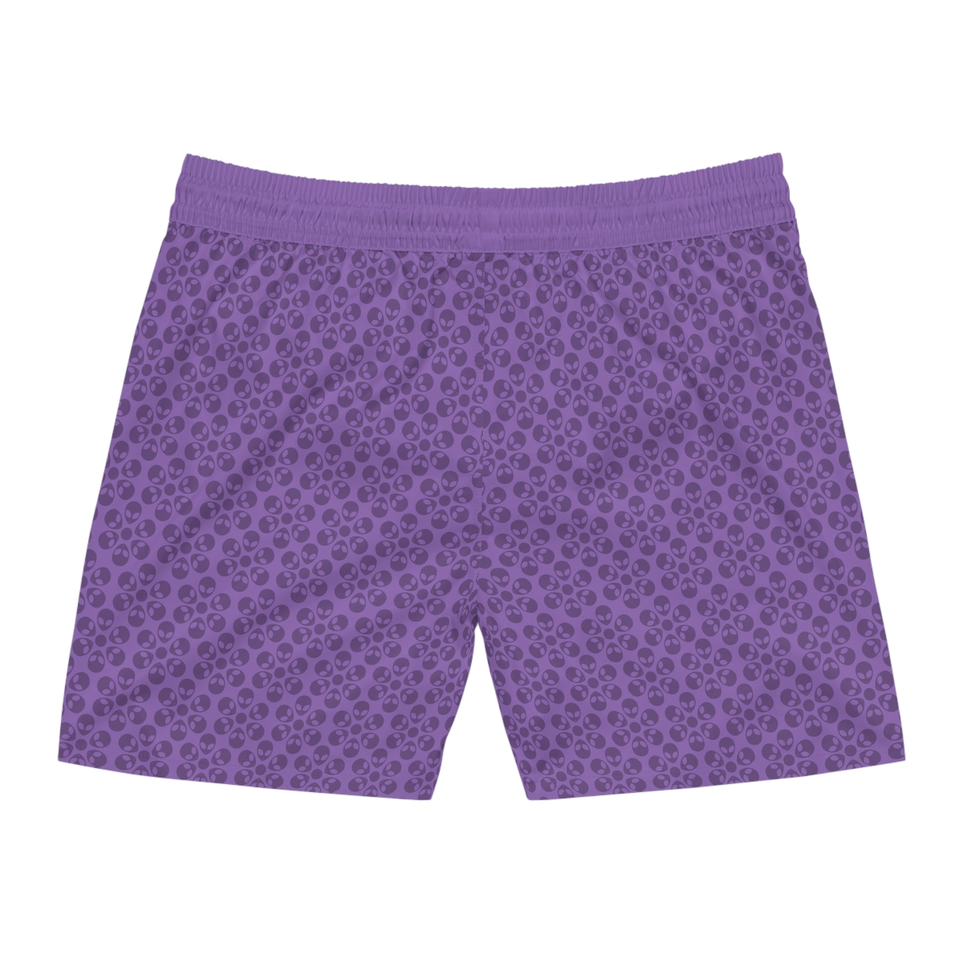 Stylish Mens MidLength Swim Shorts Beachwear Vacation Essentials Poolside Comfort Summer Outfit Trendy Swimwear Alien Flowers Light Purple