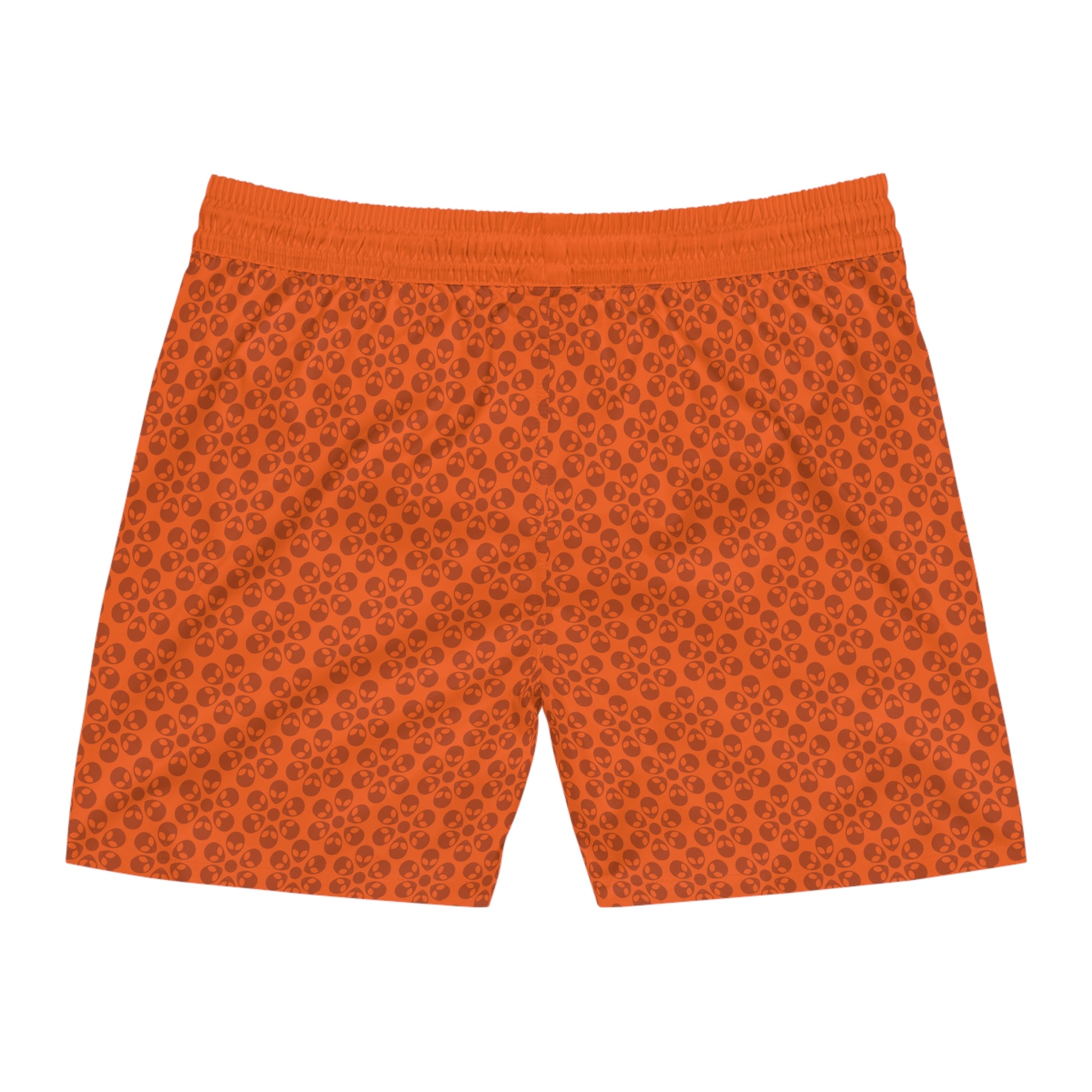 Stylish Mens MidLength Swim Shorts Beachwear Vacation Essentials Poolside Comfort Summer Outfit Trendy Swimwear Alien Flowers Orange