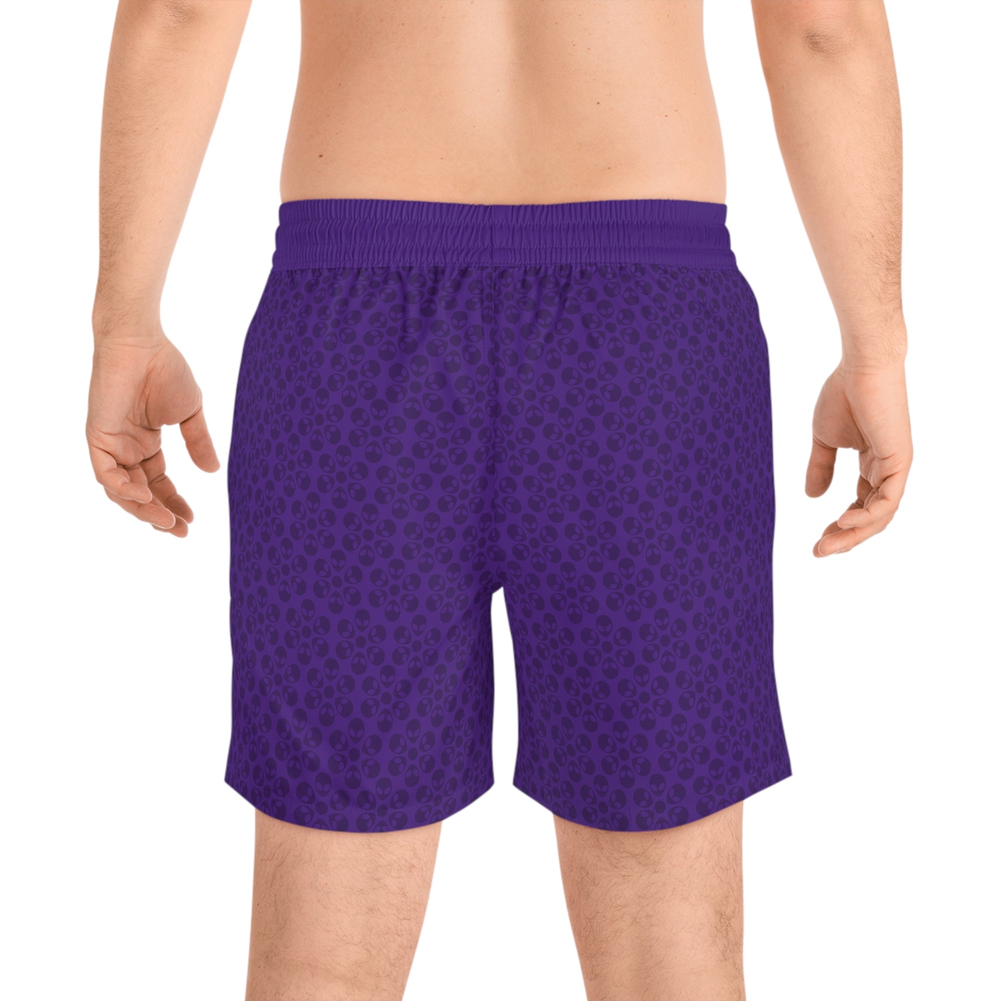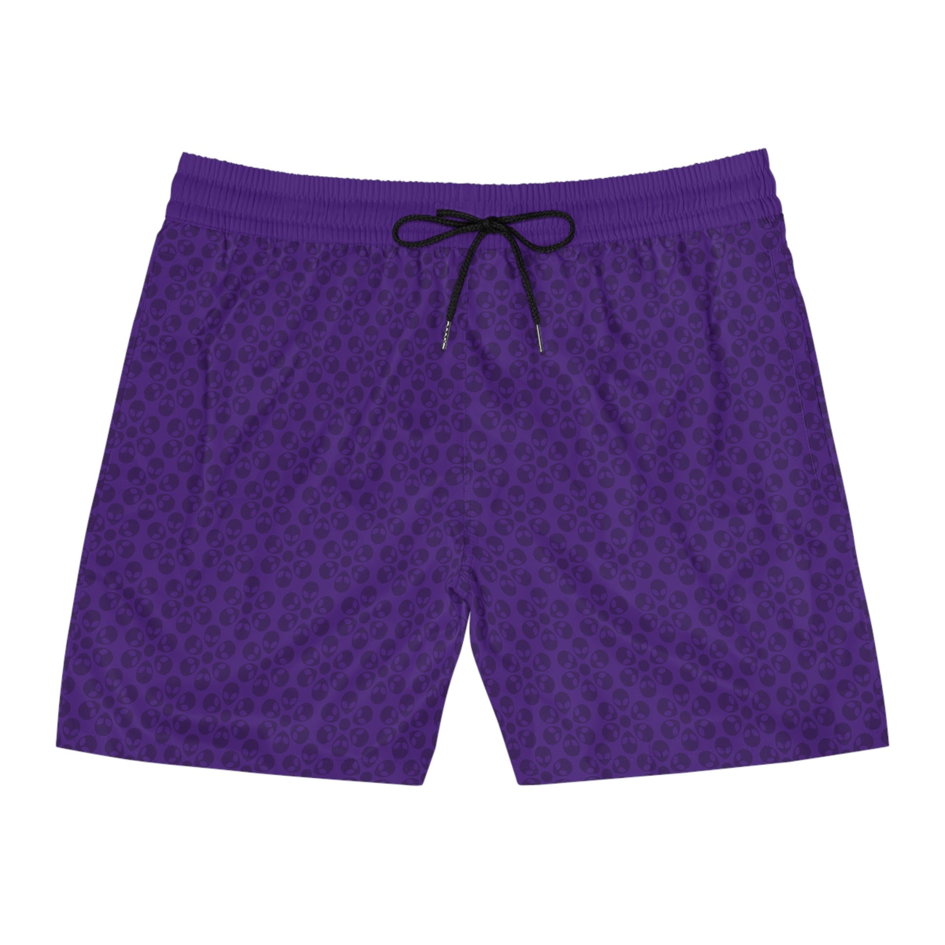 Stylish Mens MidLength Swim Shorts Beachwear Vacation Essentials Poolside Comfort Summer Outfit Trendy Swimwear Alien Flowers Purple