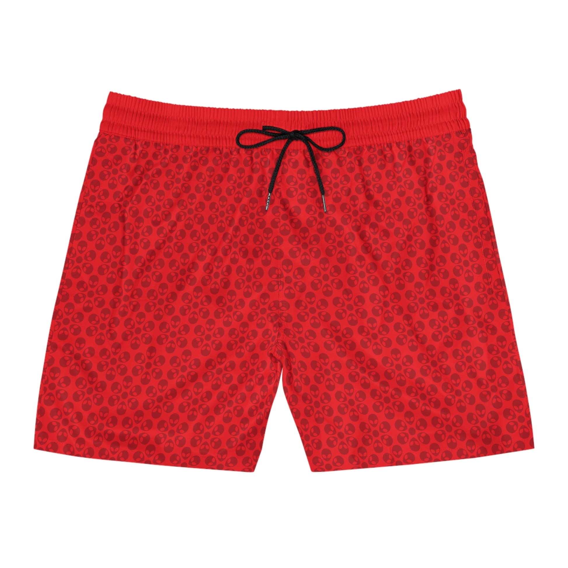 Stylish Mens MidLength Swim Shorts Beachwear Vacation Essentials Poolside Comfort Summer Outfit Trendy Swimwear Alien Flowers Red
