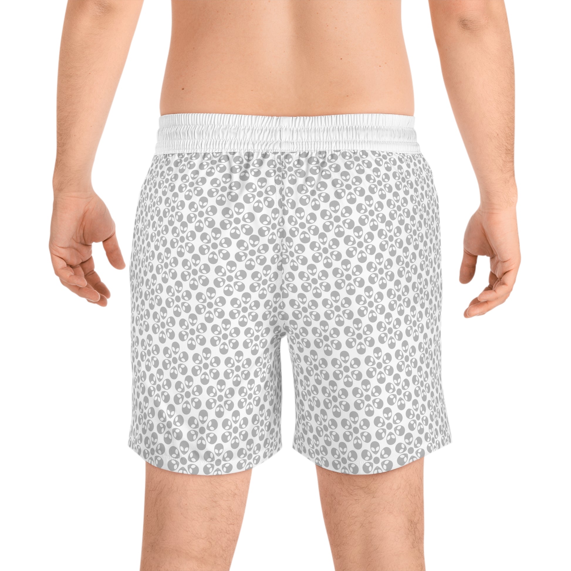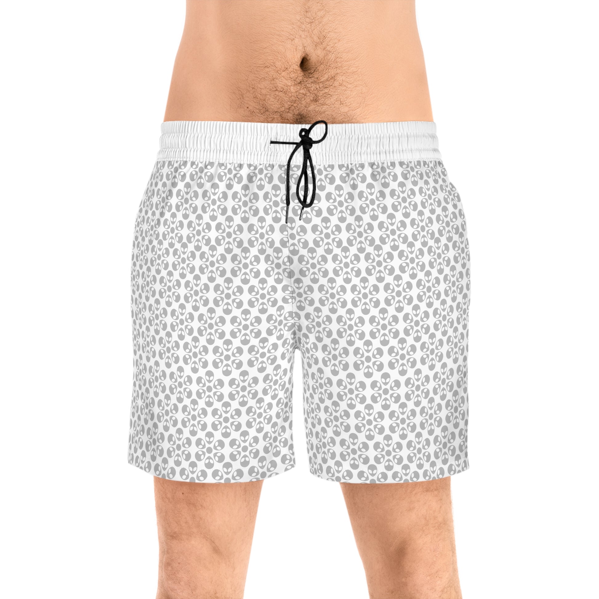 Stylish Mens MidLength Swim Shorts Beachwear Vacation Essentials Poolside Comfort Summer Outfit Trendy Swimwear Alien Flowers White