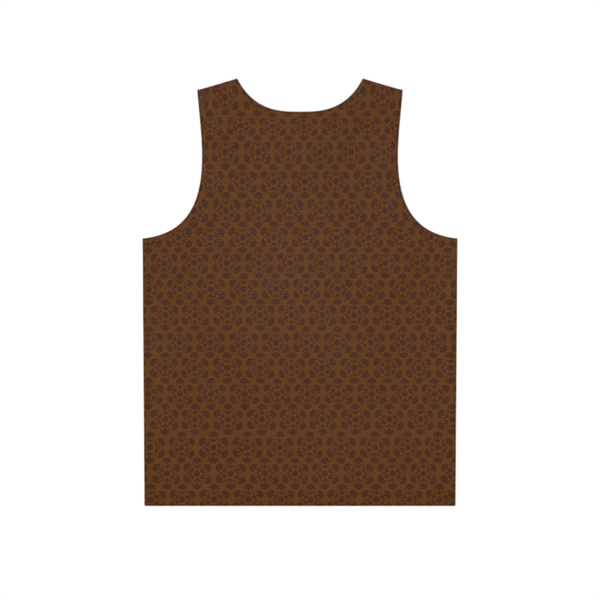 Stylish Mens Tank Top AOP Leopard Print Summer Wear Fitness Gear Casual Apparel Trendy Vacation Outfit Alien Flowers Brown