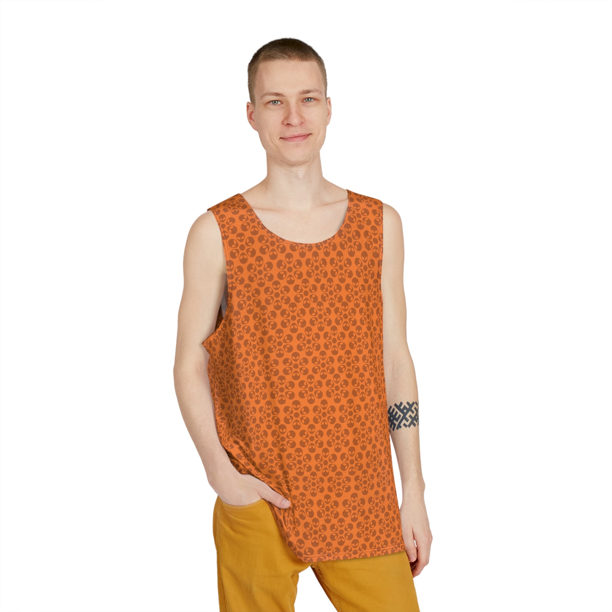 Stylish Mens Tank Top AOP Leopard Print Summer Wear Fitness Gear Casual Apparel Trendy Vacation Outfit Alien Flowers Crusta