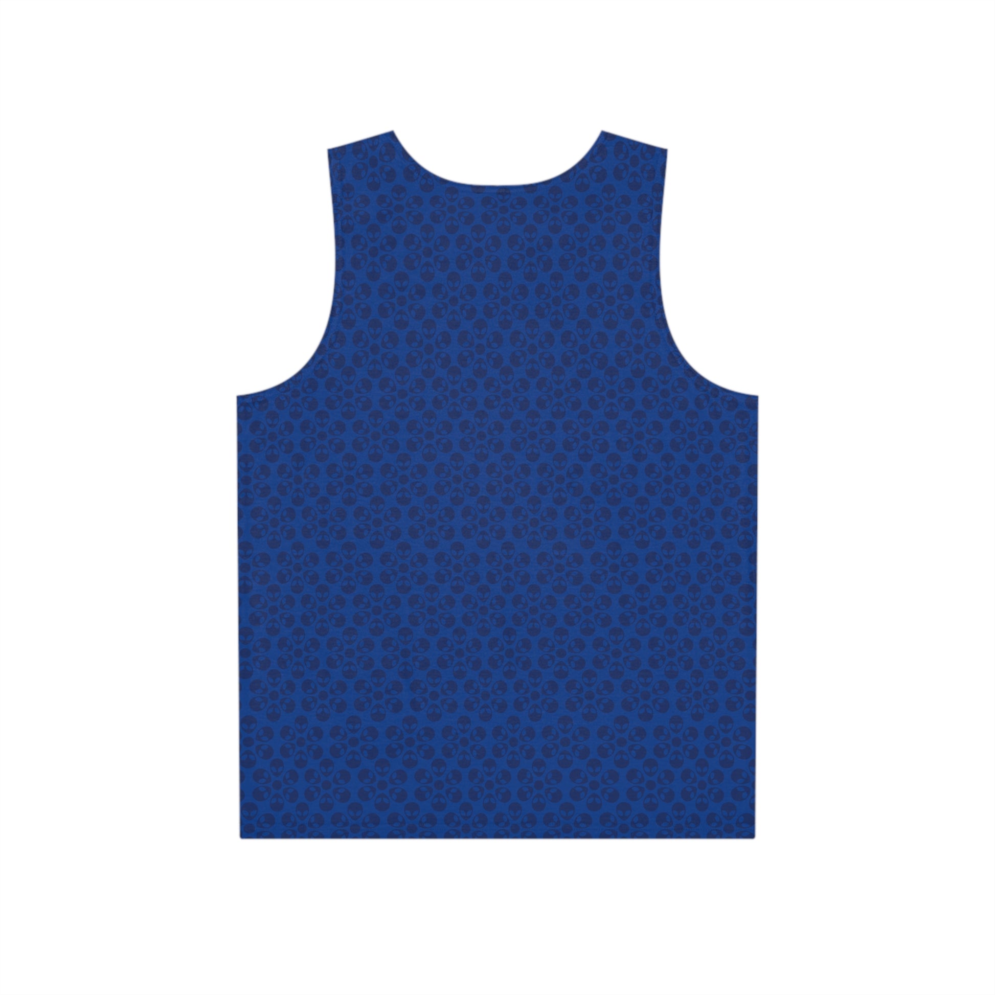Stylish Mens Tank Top AOP Leopard Print Summer Wear Fitness Gear Casual Apparel Trendy Vacation Outfit Alien Flowers Dark Blue