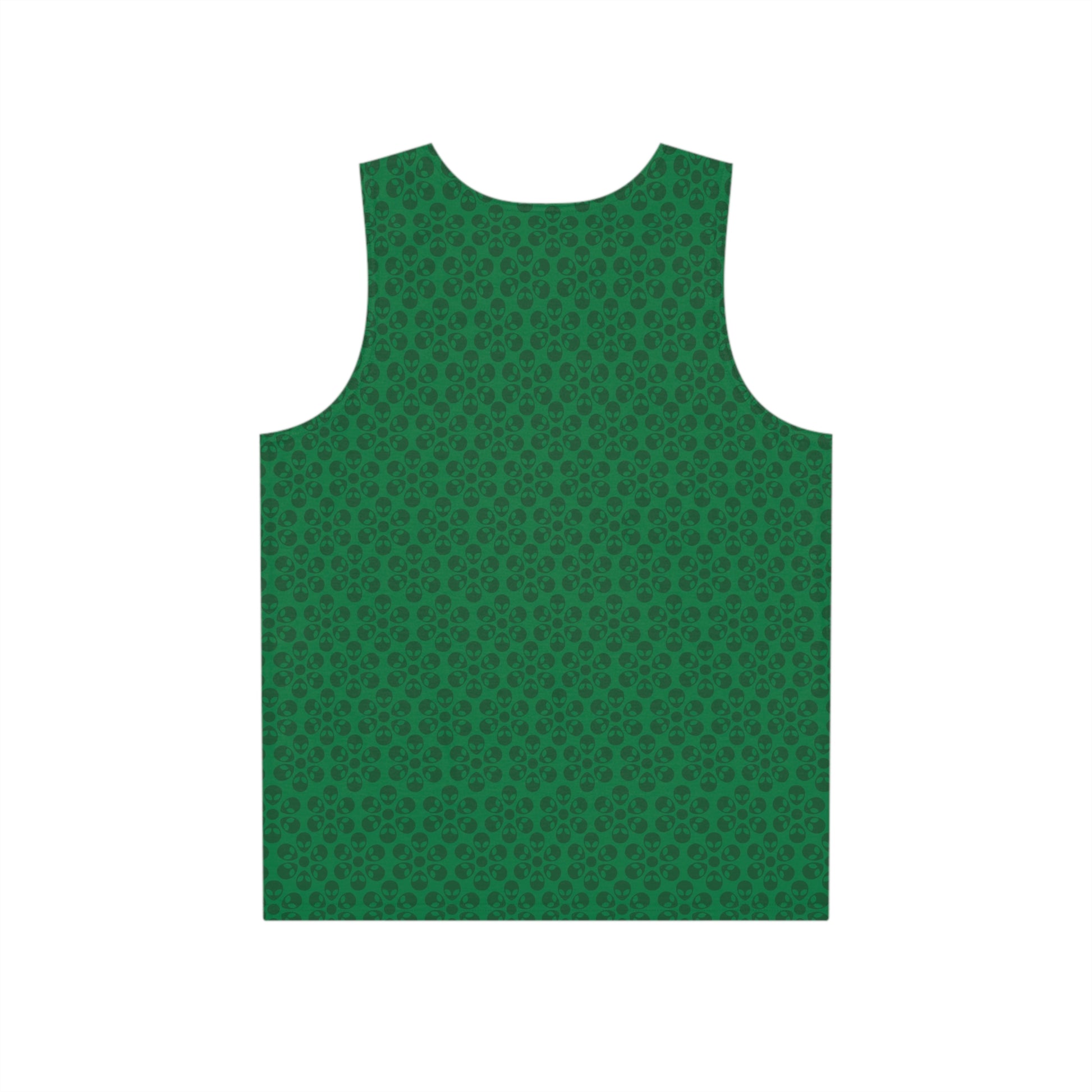 Stylish Mens Tank Top AOP Leopard Print Summer Wear Fitness Gear Casual Apparel Trendy Vacation Outfit Alien Flowers Dark Green