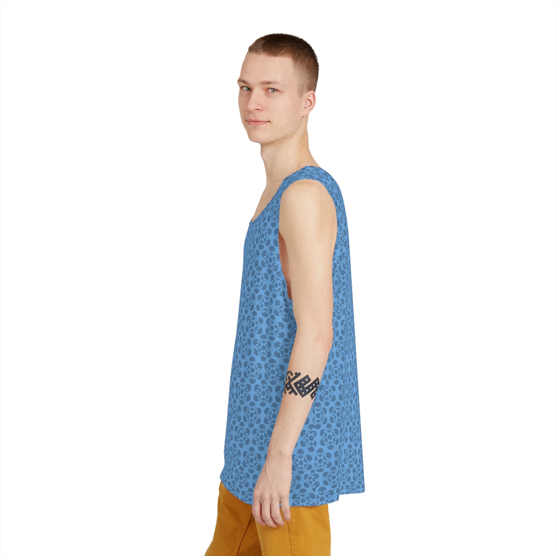 Stylish Mens Tank Top AOP Leopard Print Summer Wear Fitness Gear Casual Apparel Trendy Vacation Outfit Alien Flowers Light Blue
