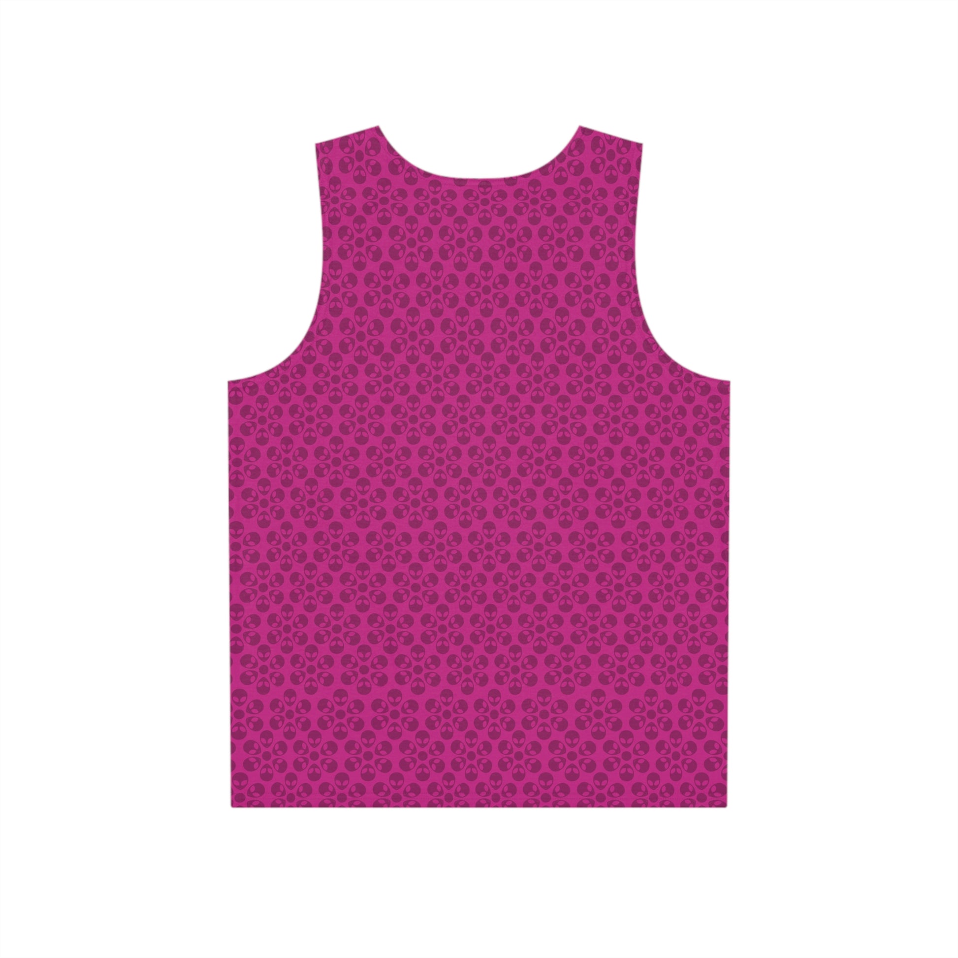 Stylish Mens Tank Top AOP Leopard Print Summer Wear Fitness Gear Casual Apparel Trendy Vacation Outfit Alien Flowers Pink