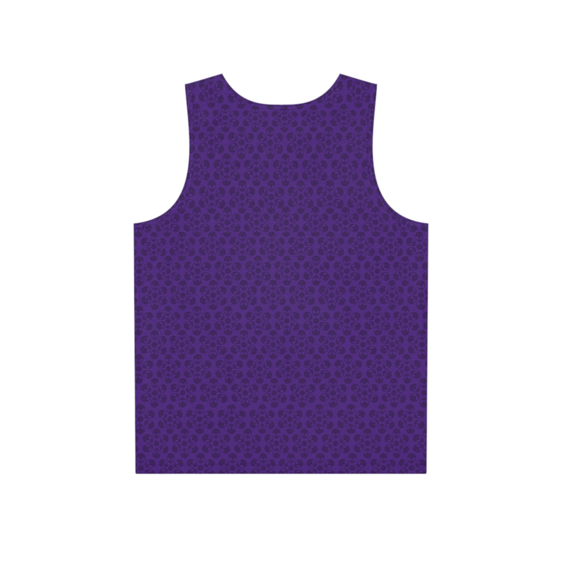 Stylish Mens Tank Top AOP Leopard Print Summer Wear Fitness Gear Casual Apparel Trendy Vacation Outfit Alien Flowers Purple