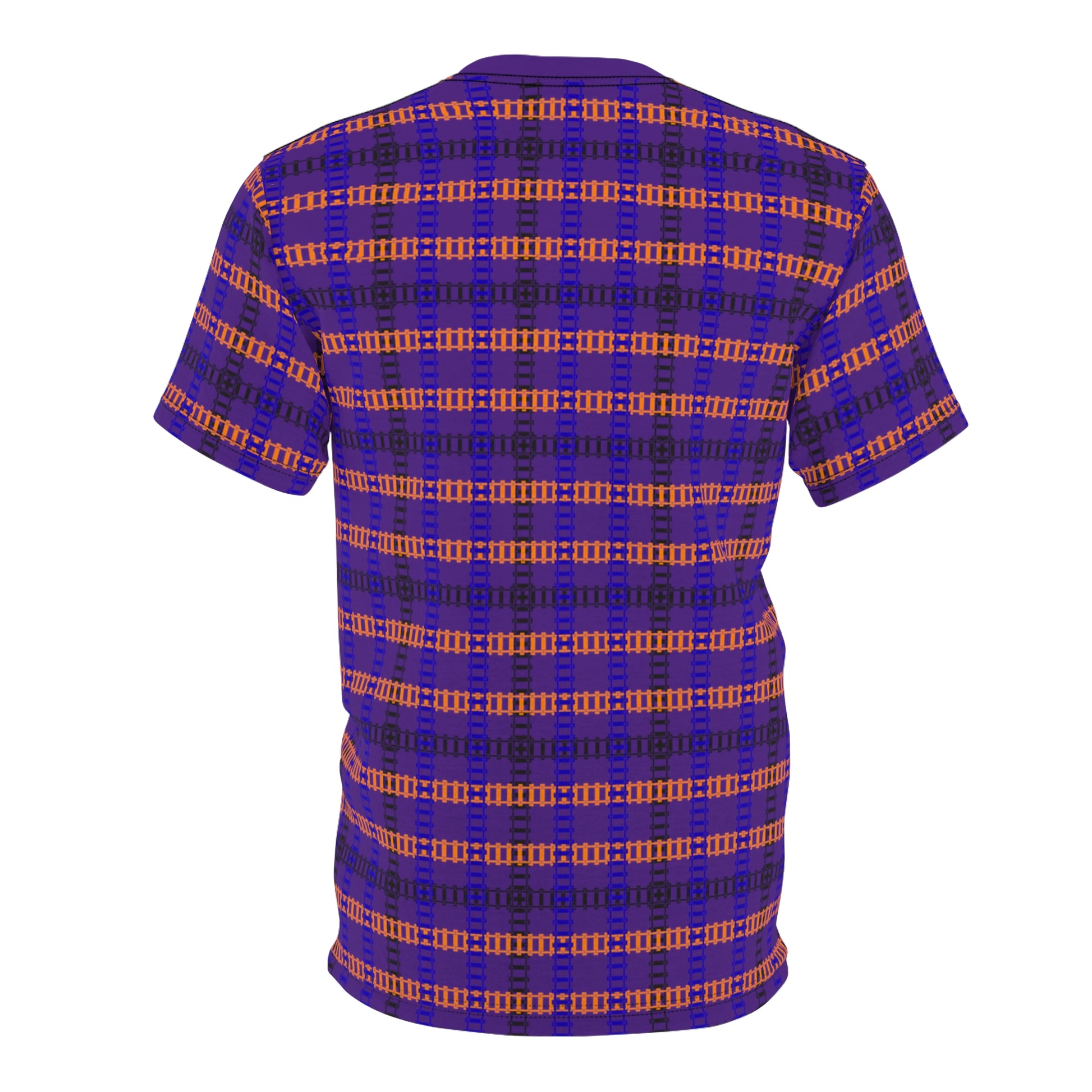 Stylish Plaid Unisex Tee for Everyday Wear Casual Graphics Tee Unique Patterned TShirt Trendy Streetwear Top Perfect Gift for Friends Train Tracks Purple