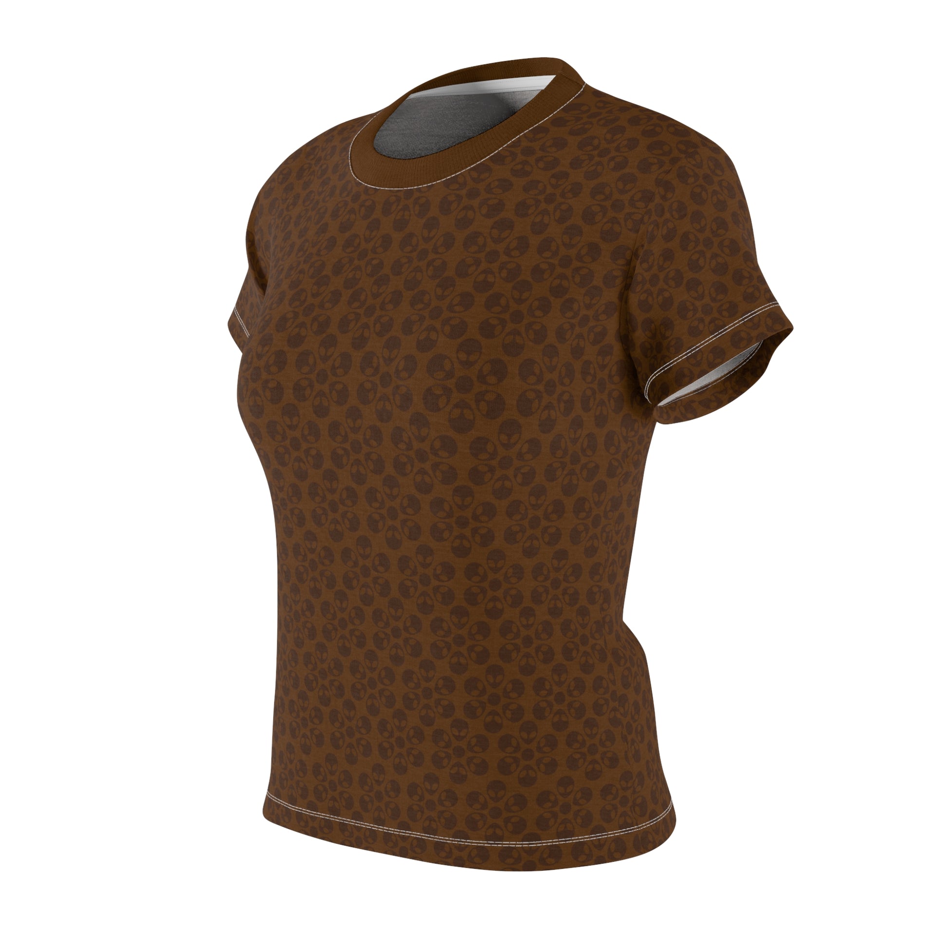 Stylish Womens Floral Tee Casual Trendy Summer Fashion Gift for Her Short Sleeve Top Alien Flowers Brown