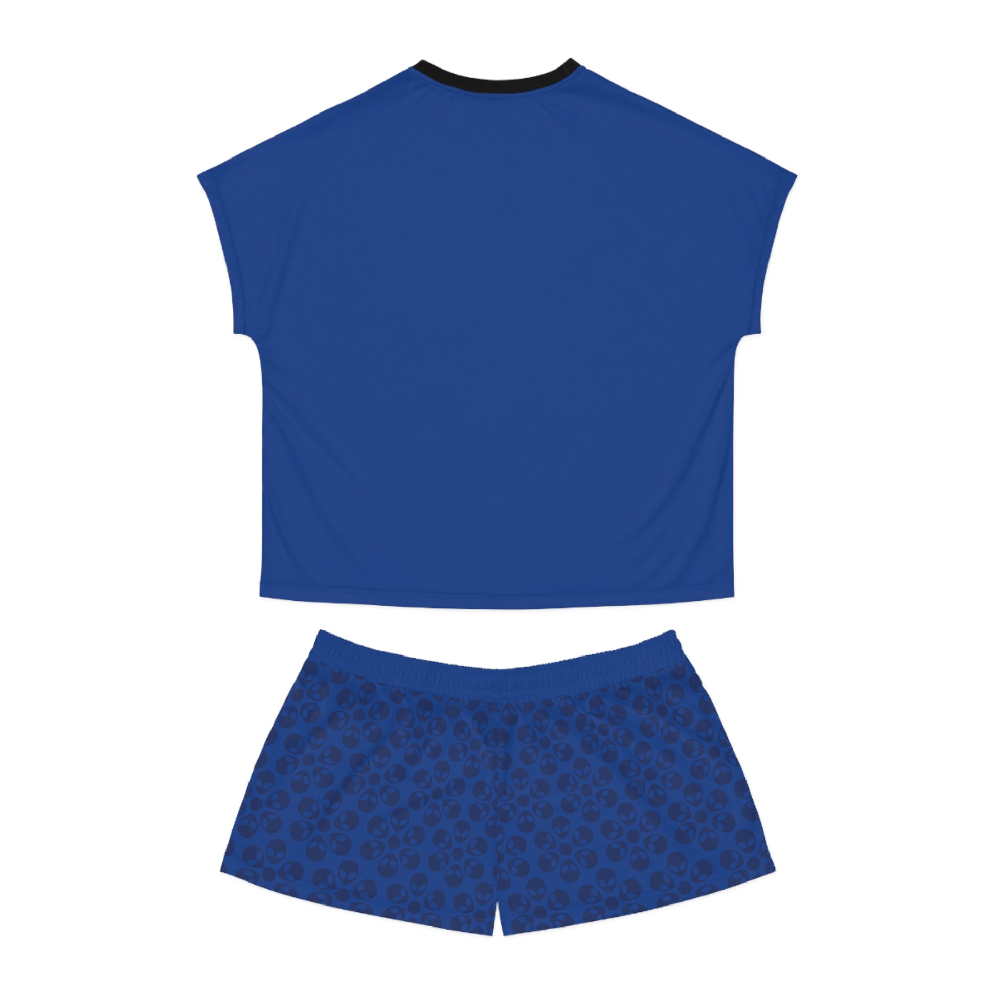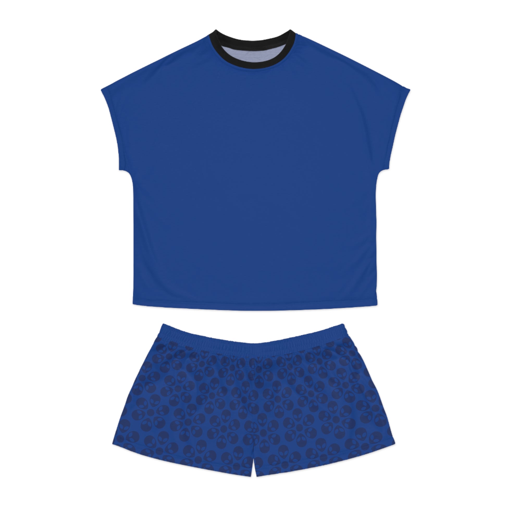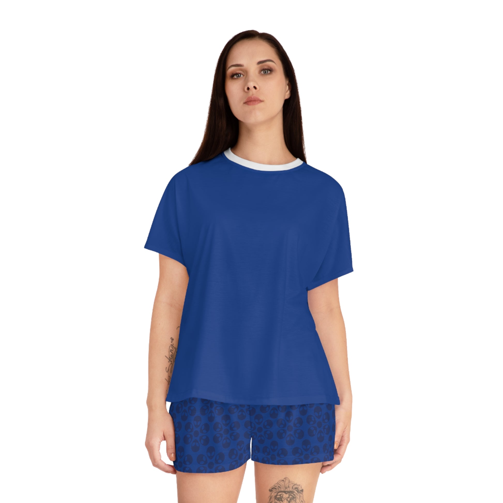 Stylish Womens Pajama Set Cozy Sleepwear AOP Floral Print Perfect for Lounging Gift for Her Summer Nights Relaxation Alien Flowers Dark Blue