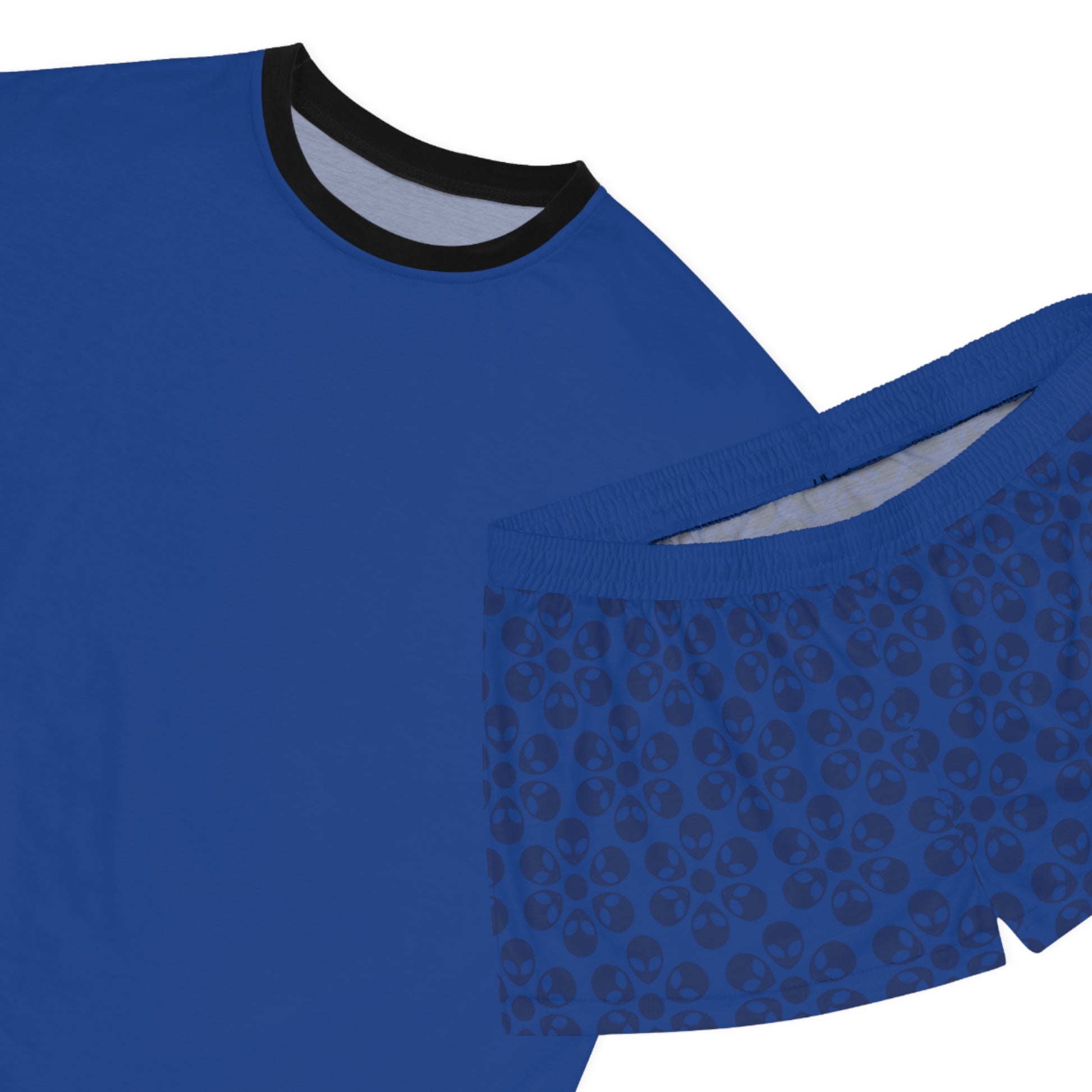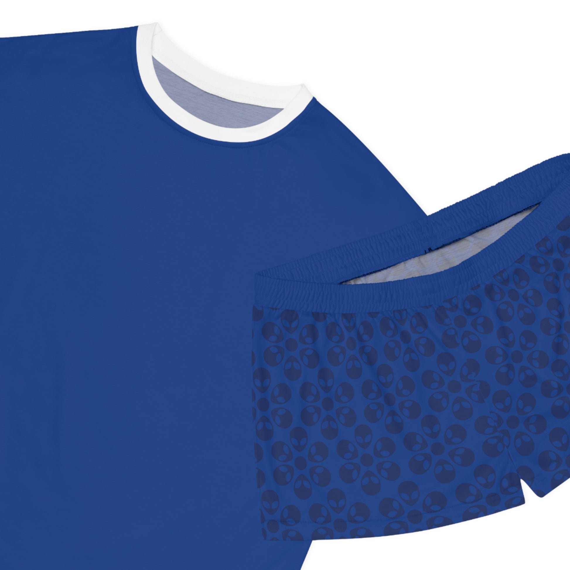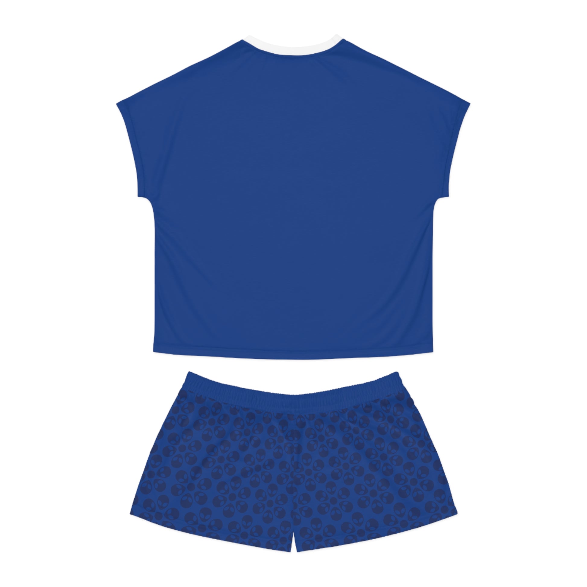 Stylish Womens Pajama Set Cozy Sleepwear AOP Floral Print Perfect for Lounging Gift for Her Summer Nights Relaxation Alien Flowers Dark Blue