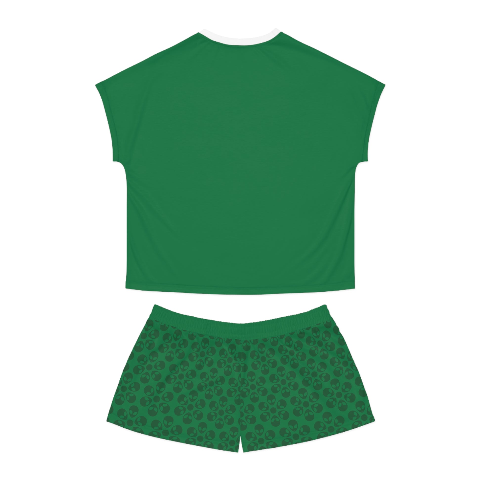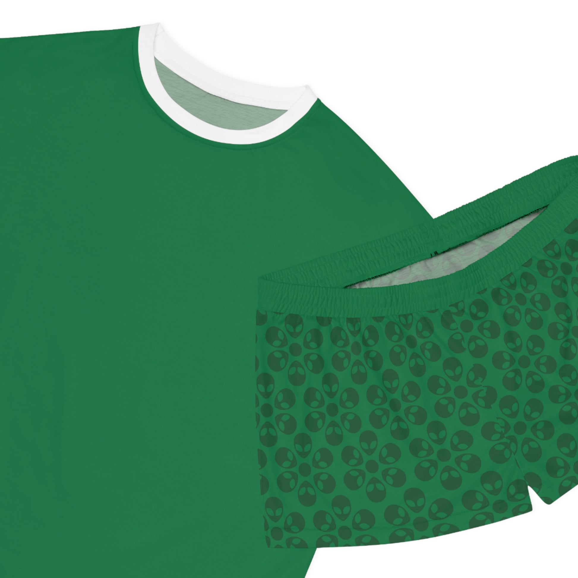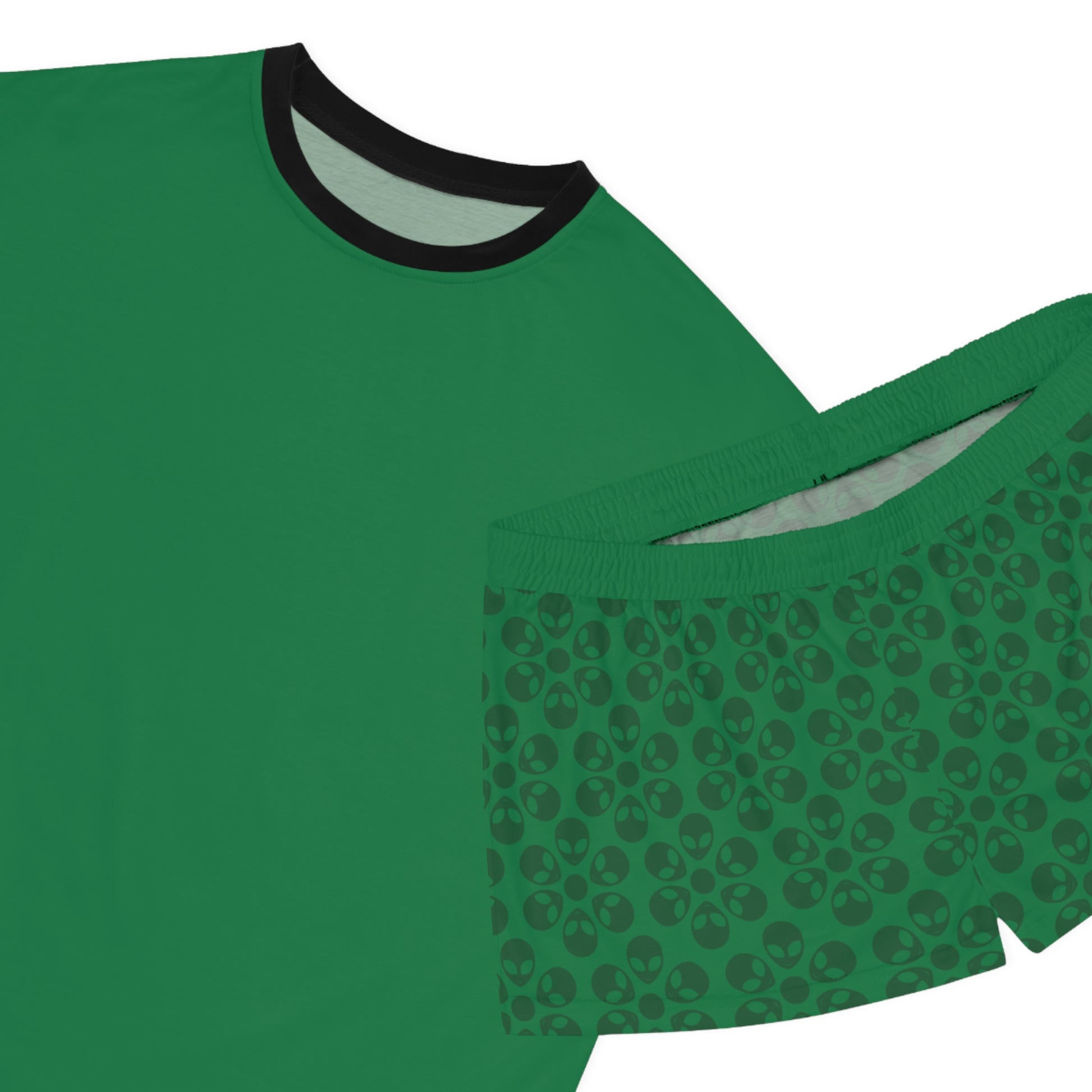 Stylish Womens Pajama Set Cozy Sleepwear AOP Floral Print Perfect for Lounging Gift for Her Summer Nights Relaxation Alien Flowers Dark Green