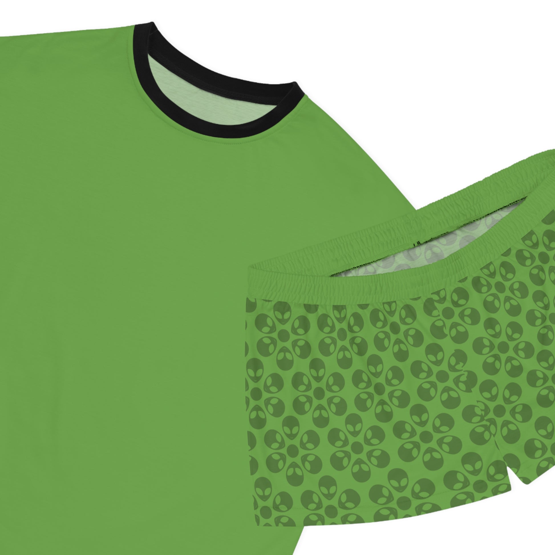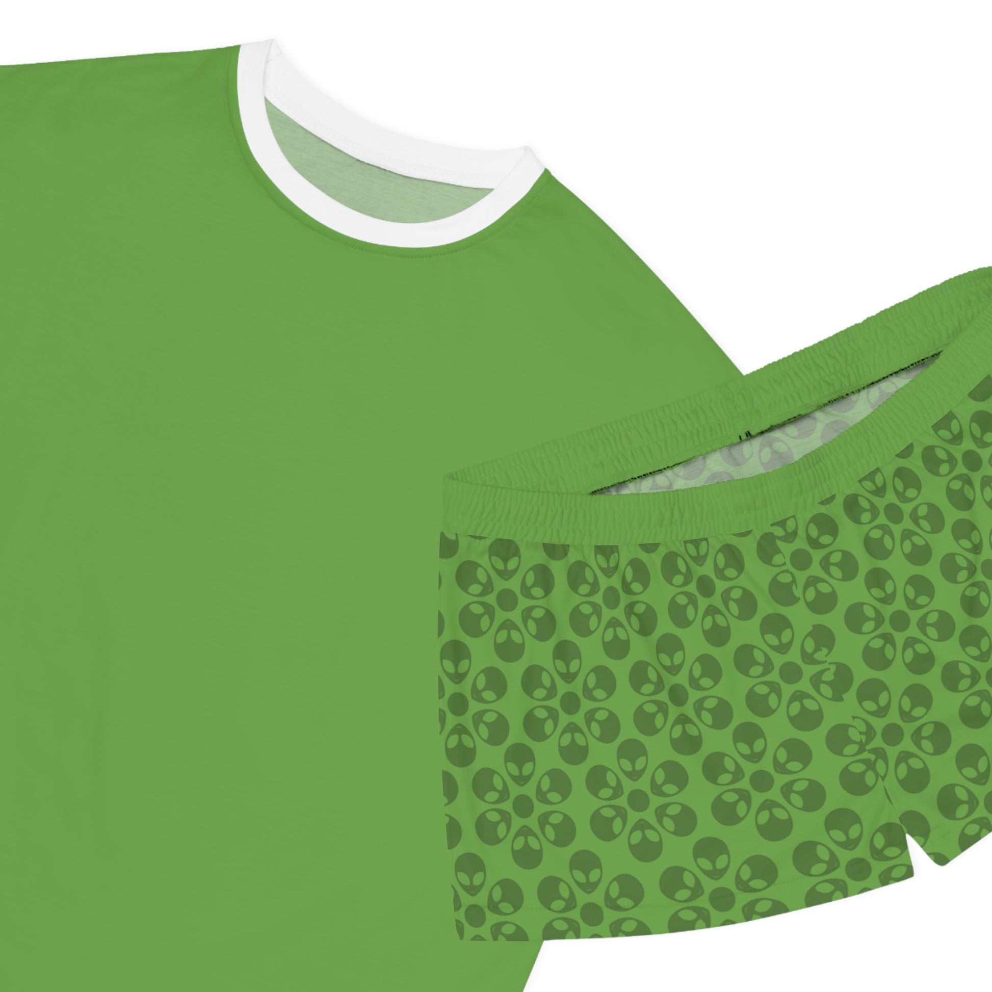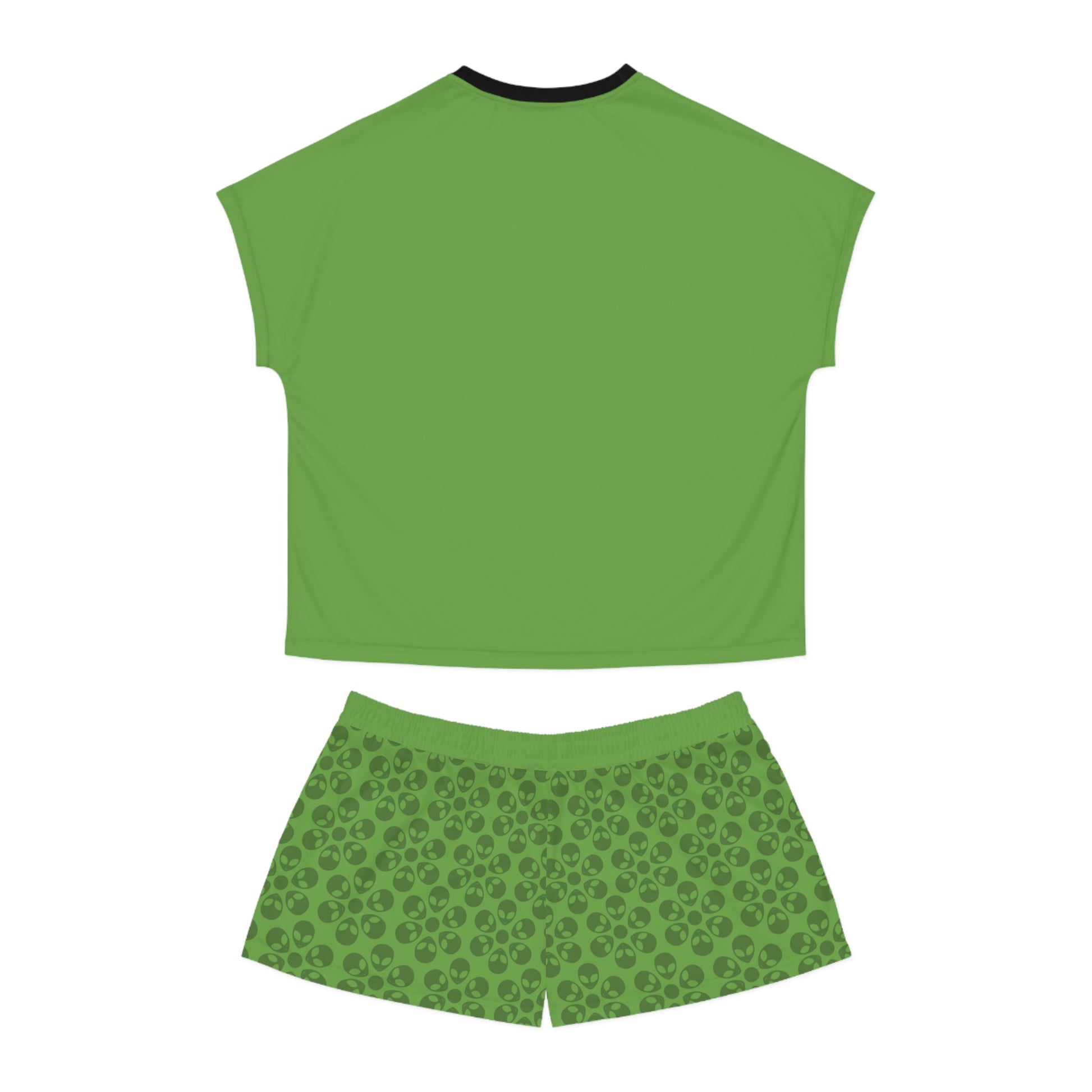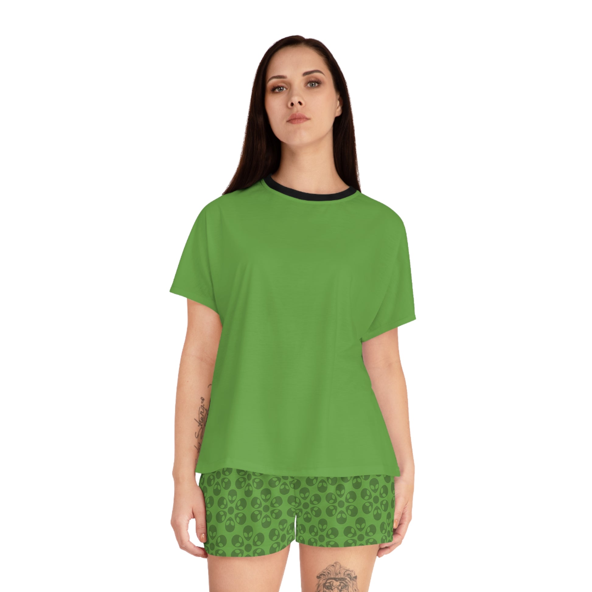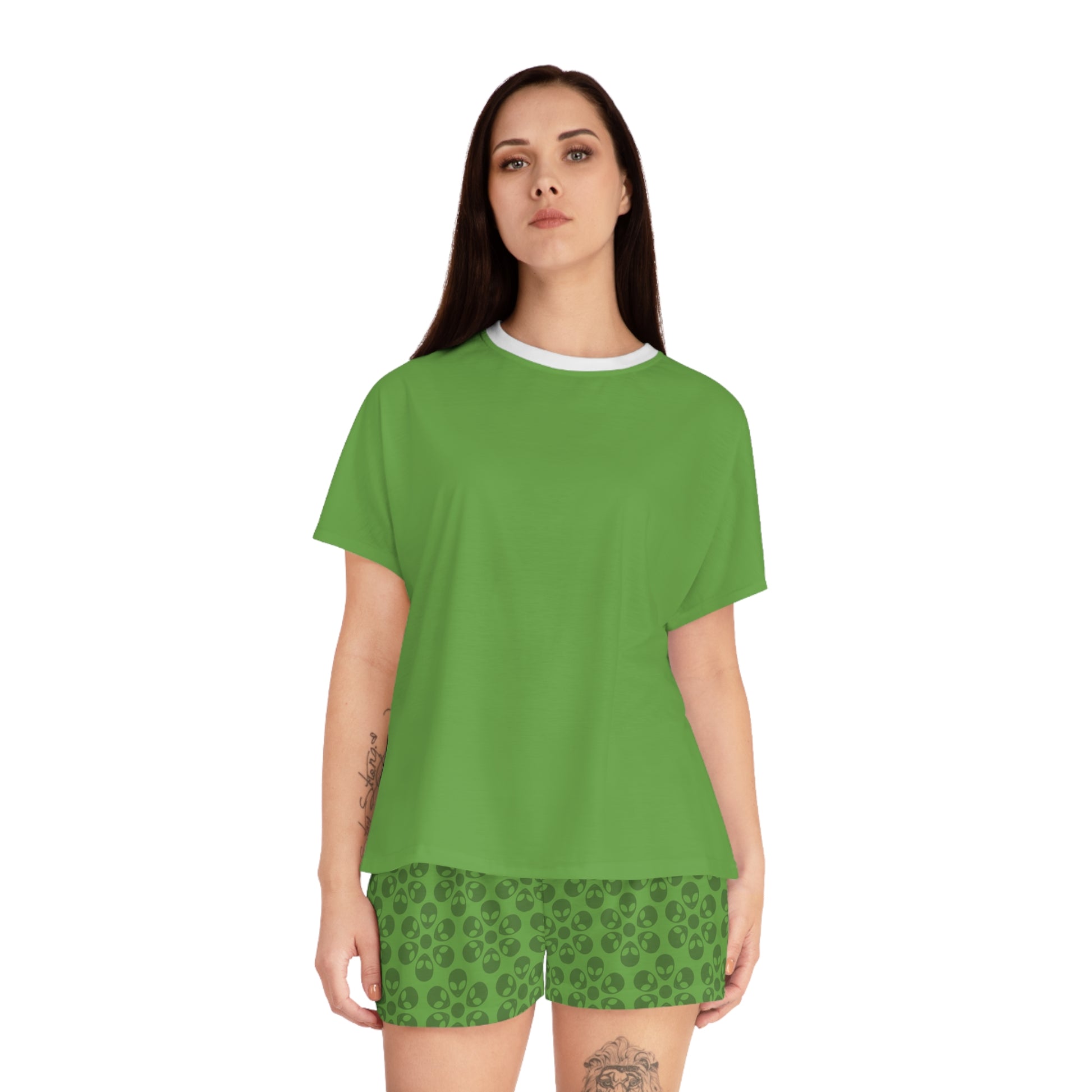 Stylish Womens Pajama Set Cozy Sleepwear AOP Floral Print Perfect for Lounging Gift for Her Summer Nights Relaxation Alien Flowers Green