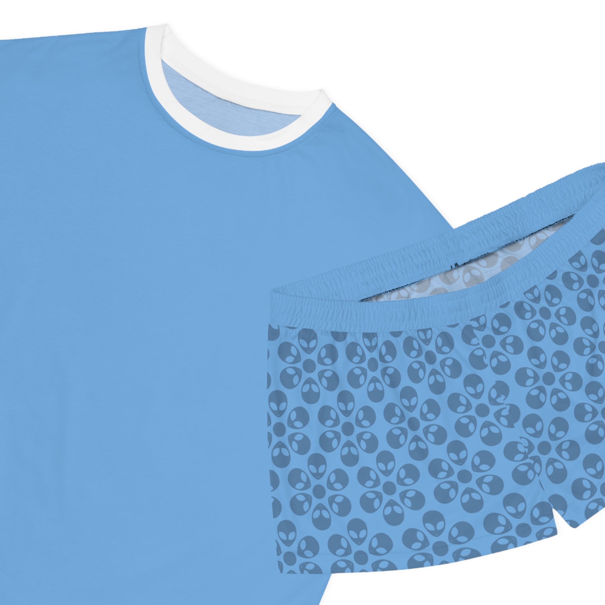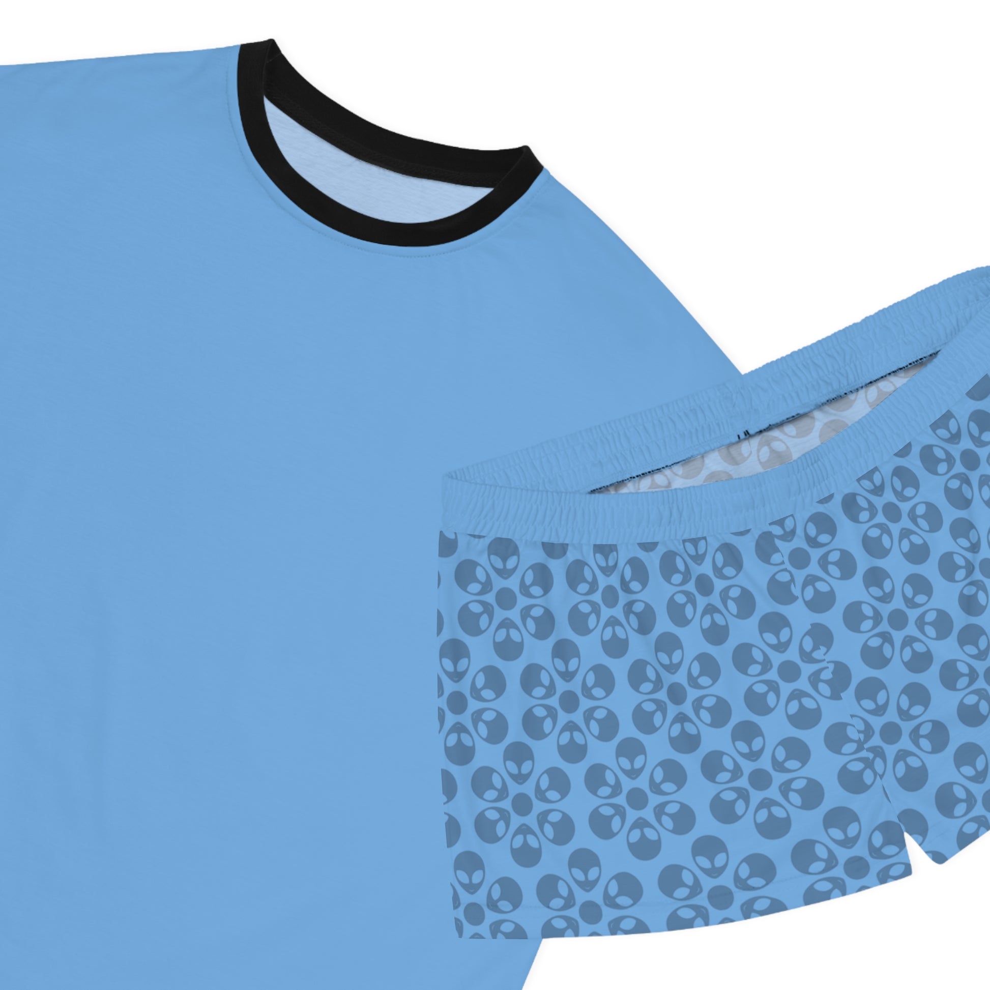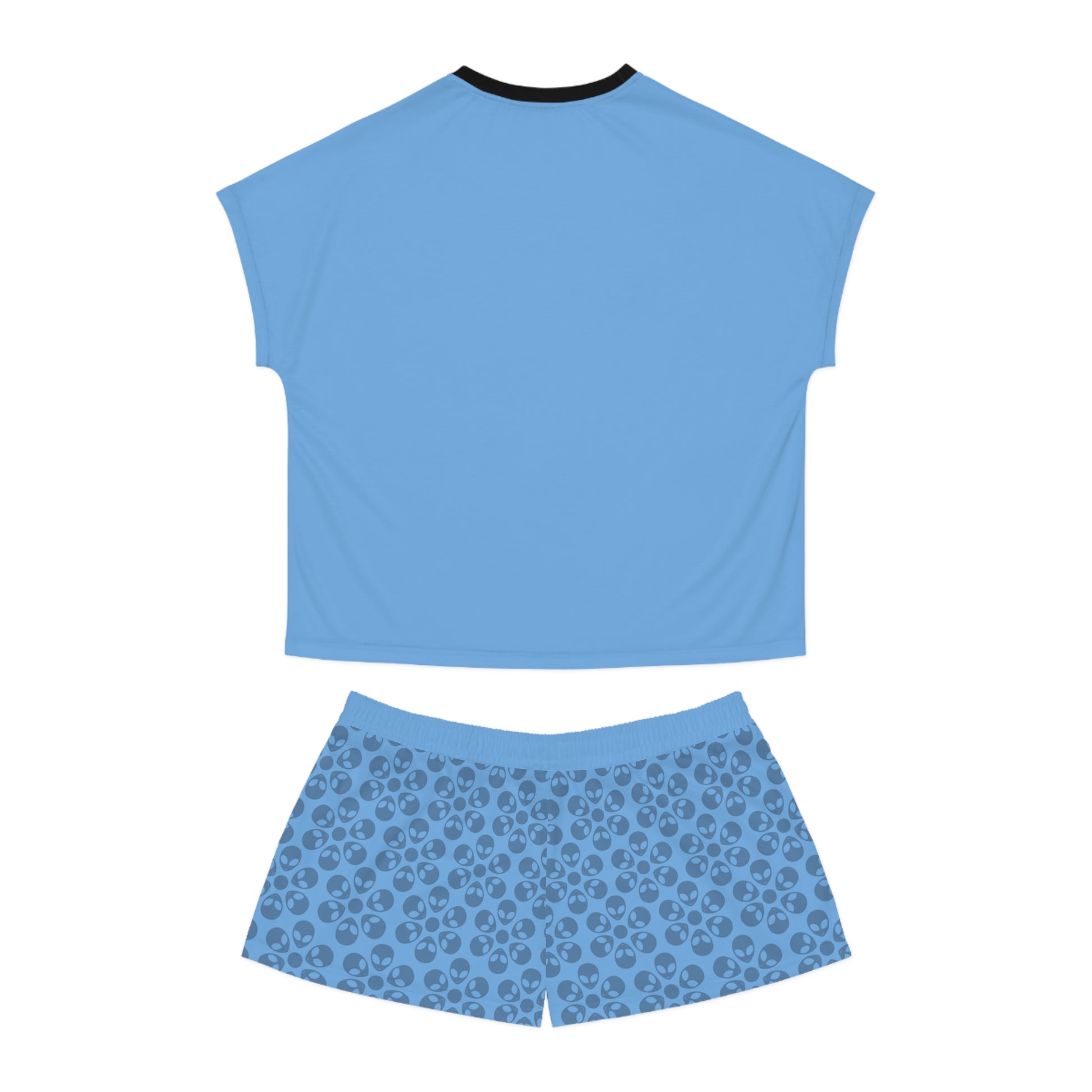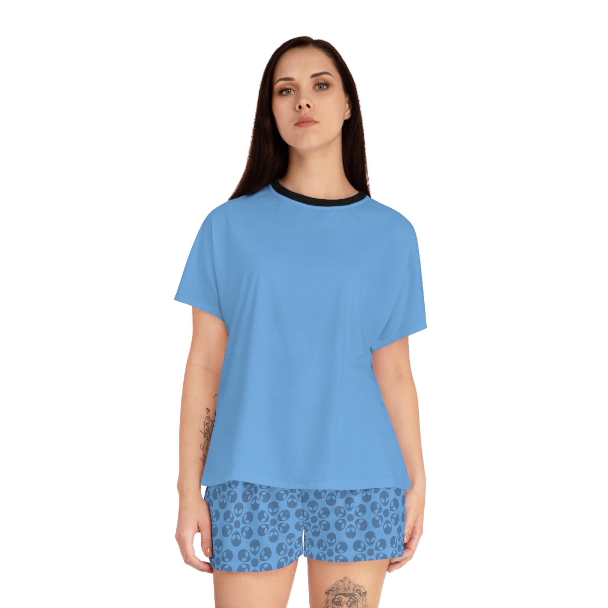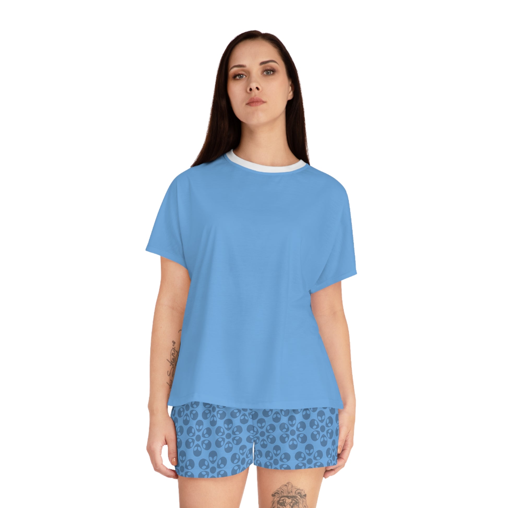 Stylish Womens Pajama Set Cozy Sleepwear AOP Floral Print Perfect for Lounging Gift for Her Summer Nights Relaxation Alien Flowers Light Blue