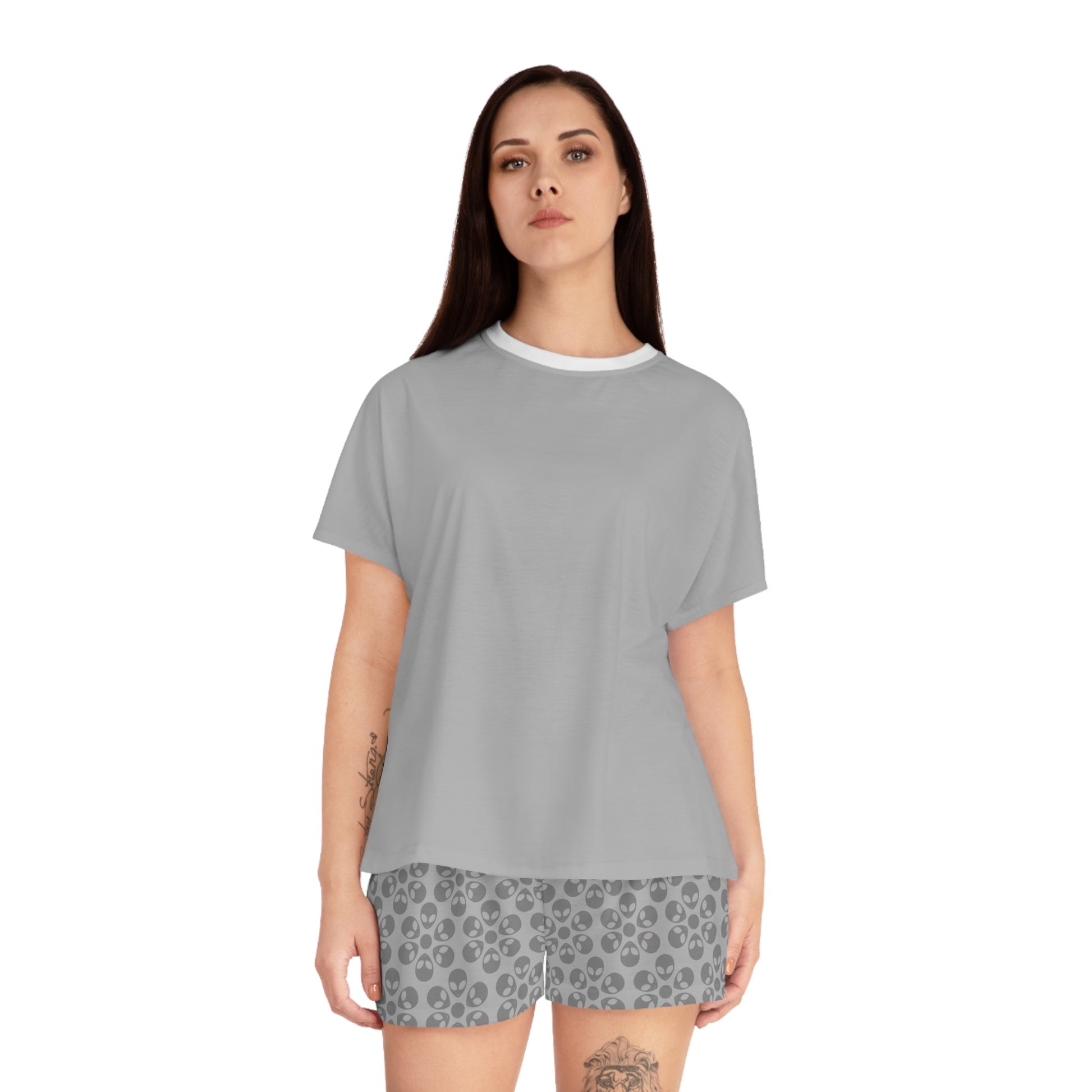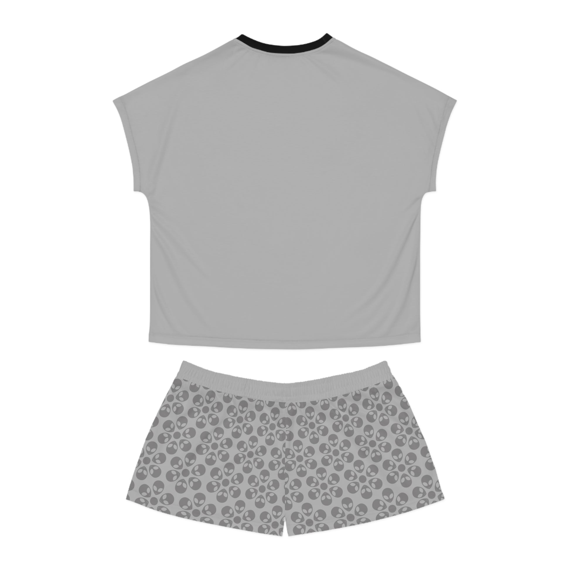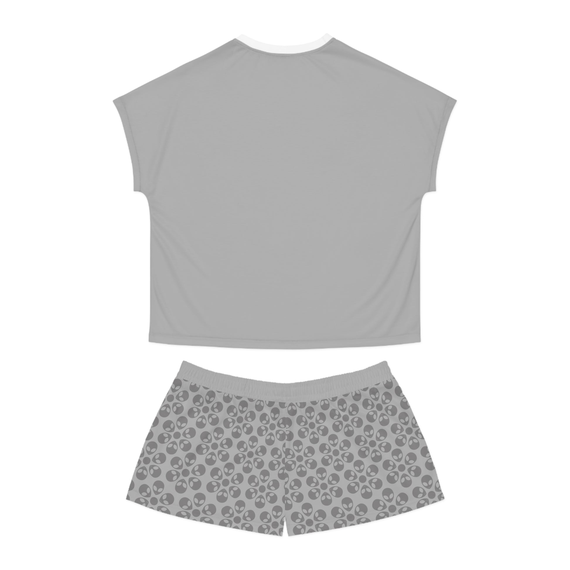 Stylish Womens Pajama Set Cozy Sleepwear AOP Floral Print Perfect for Lounging Gift for Her Summer Nights Relaxation Alien Flowers Light Grey