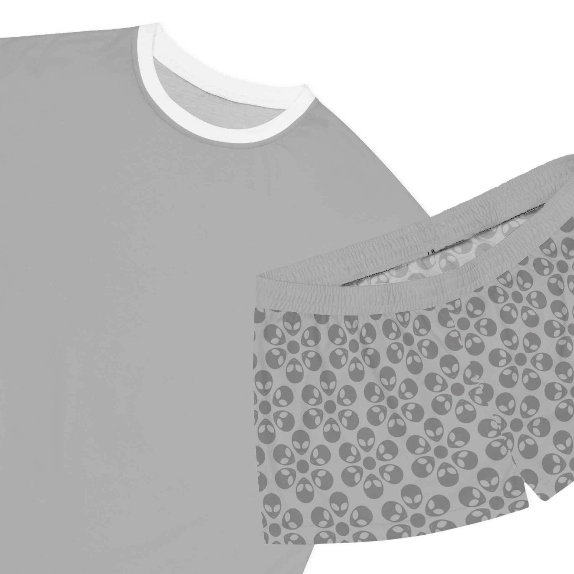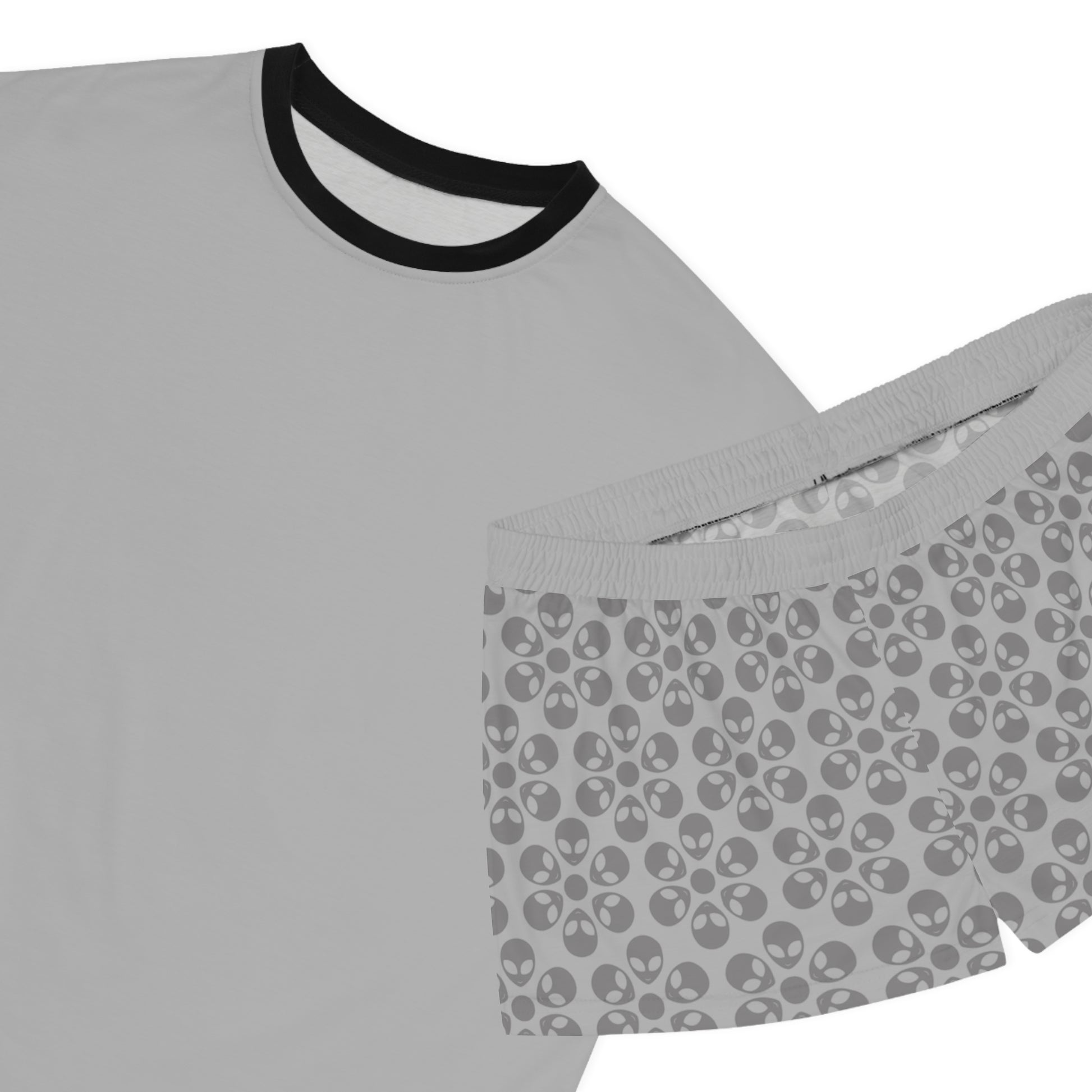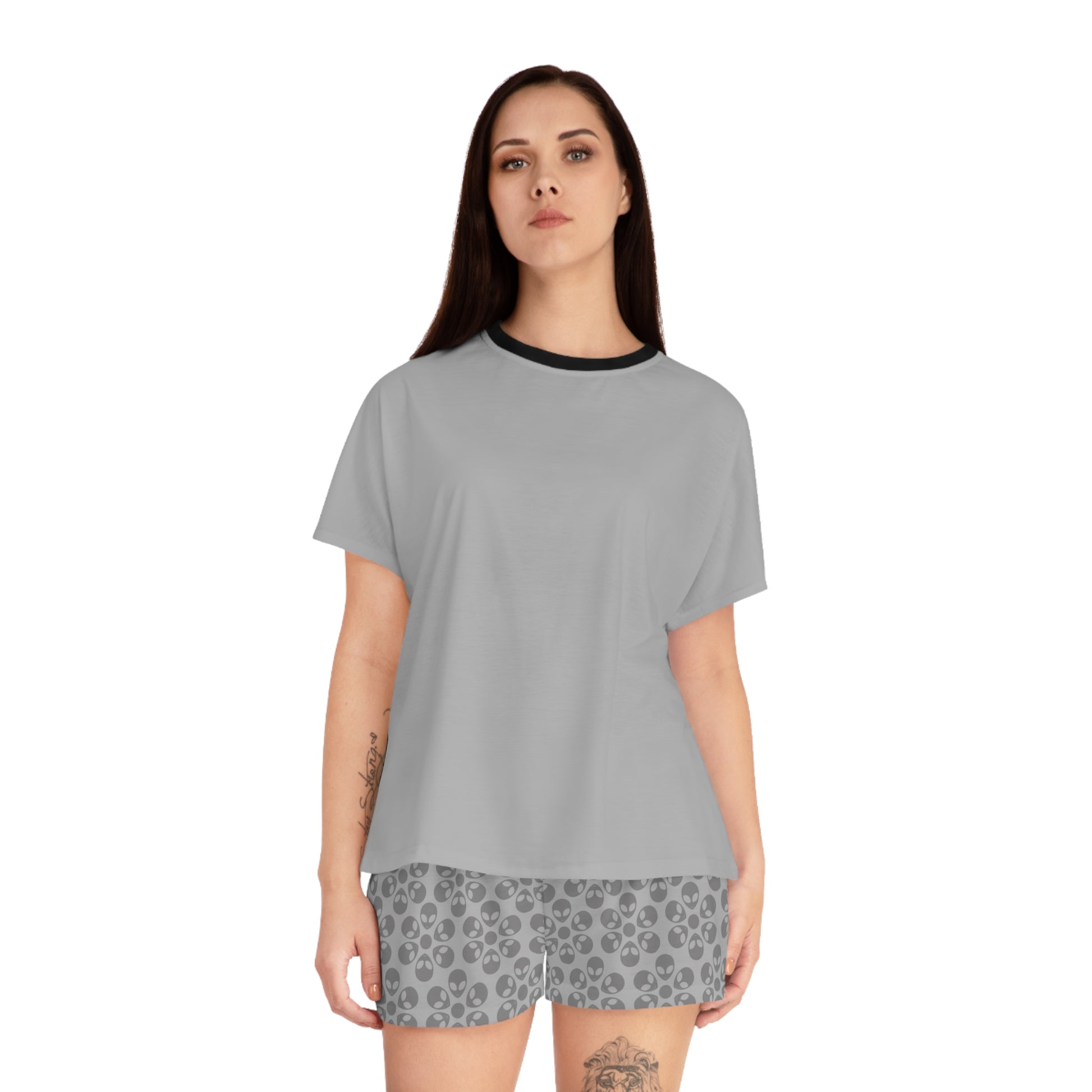 Stylish Womens Pajama Set Cozy Sleepwear AOP Floral Print Perfect for Lounging Gift for Her Summer Nights Relaxation Alien Flowers Light Grey