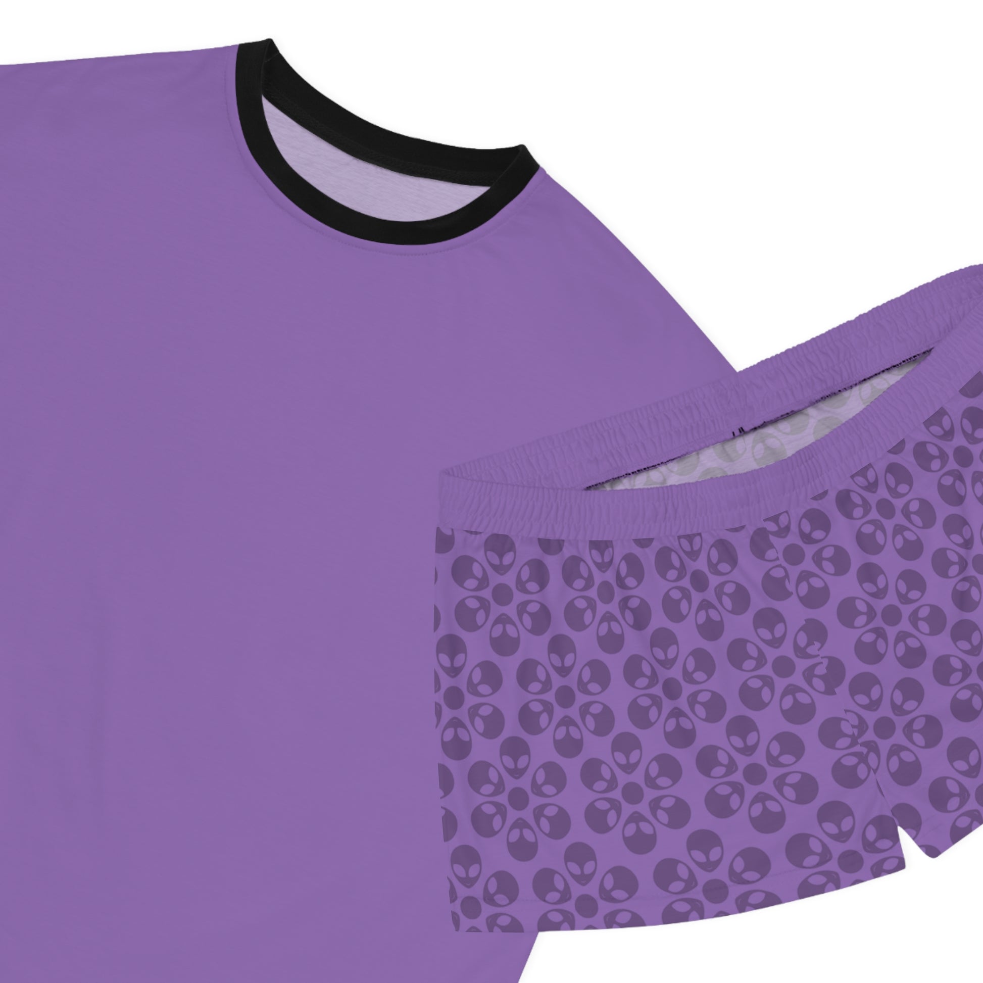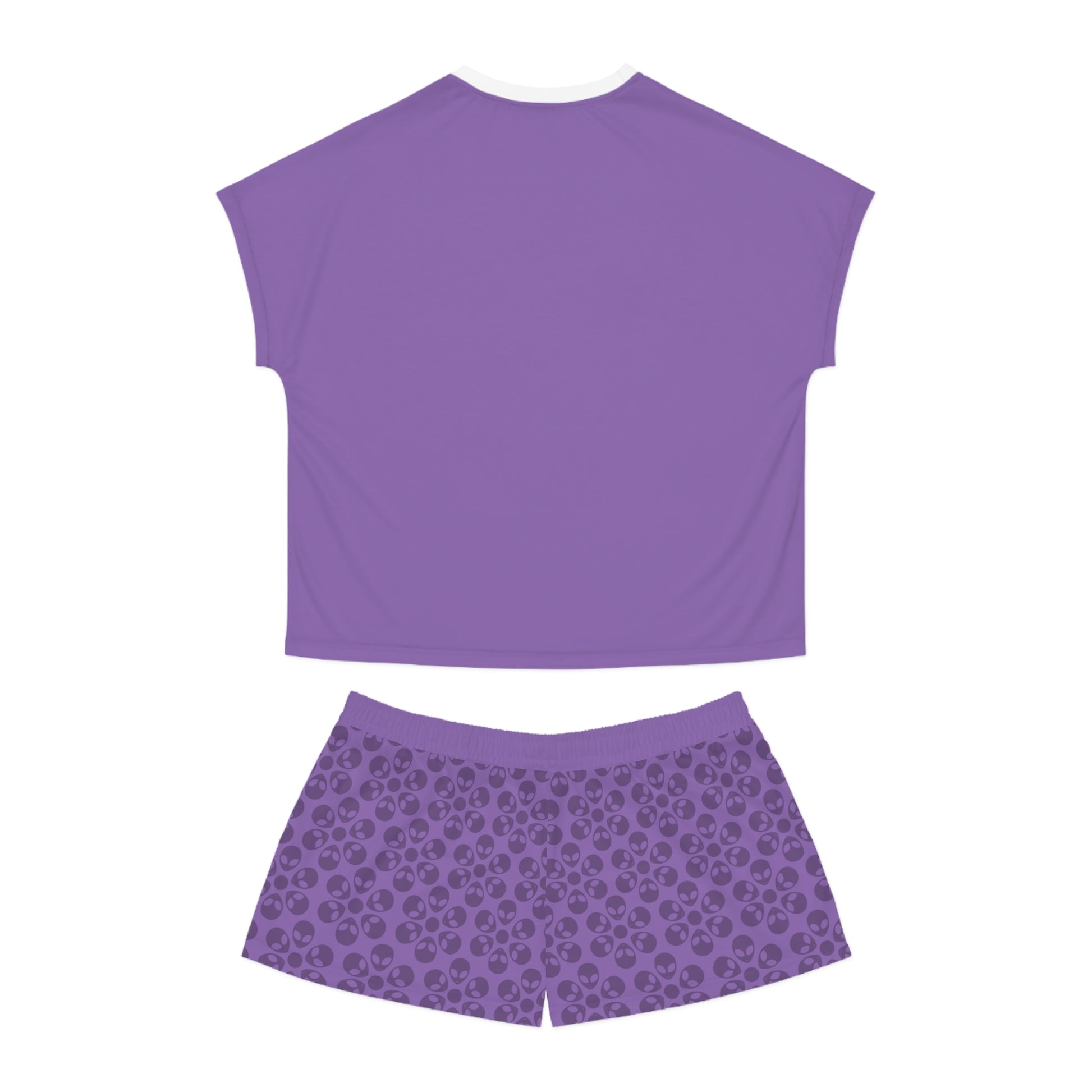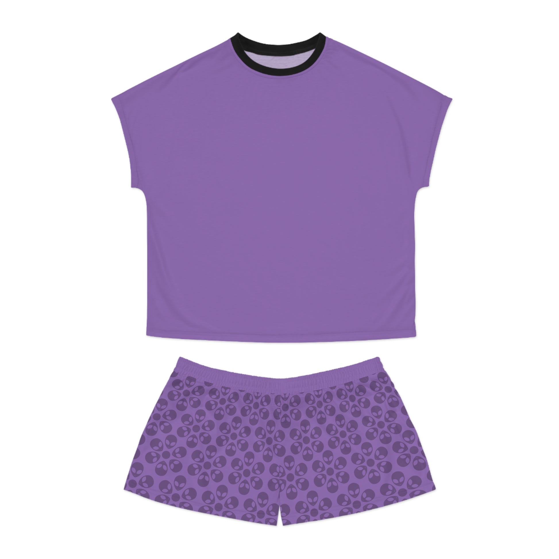 Stylish Womens Pajama Set Cozy Sleepwear AOP Floral Print Perfect for Lounging Gift for Her Summer Nights Relaxation Alien Flowers Light Purple