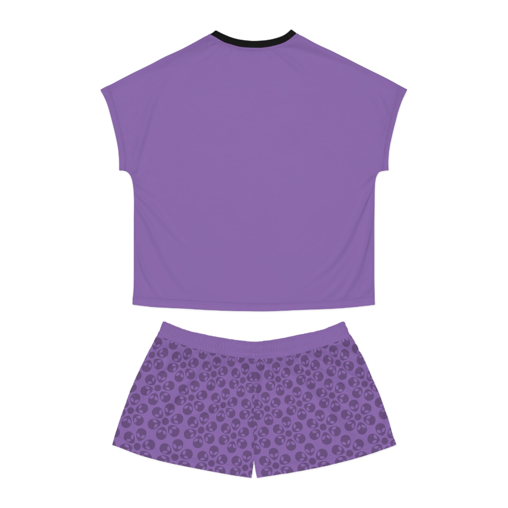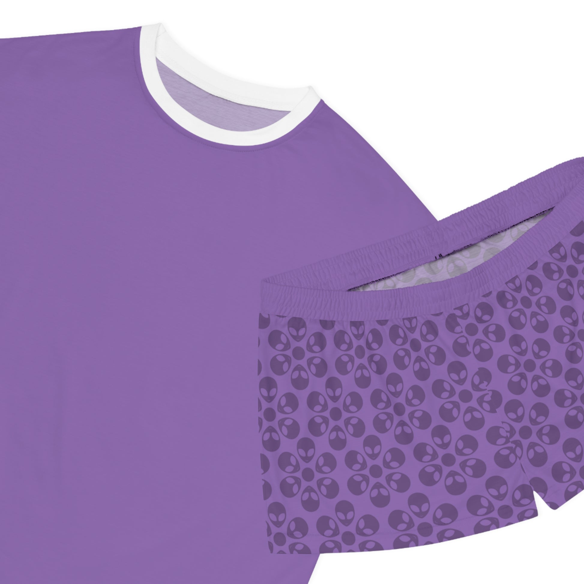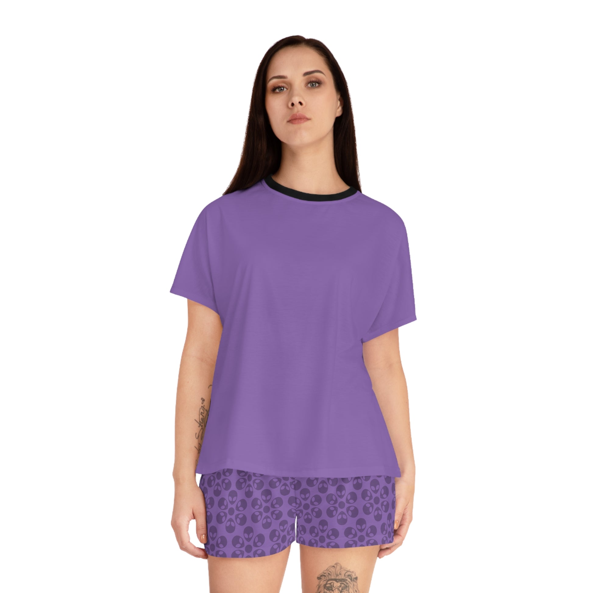 Stylish Womens Pajama Set Cozy Sleepwear AOP Floral Print Perfect for Lounging Gift for Her Summer Nights Relaxation Alien Flowers Light Purple