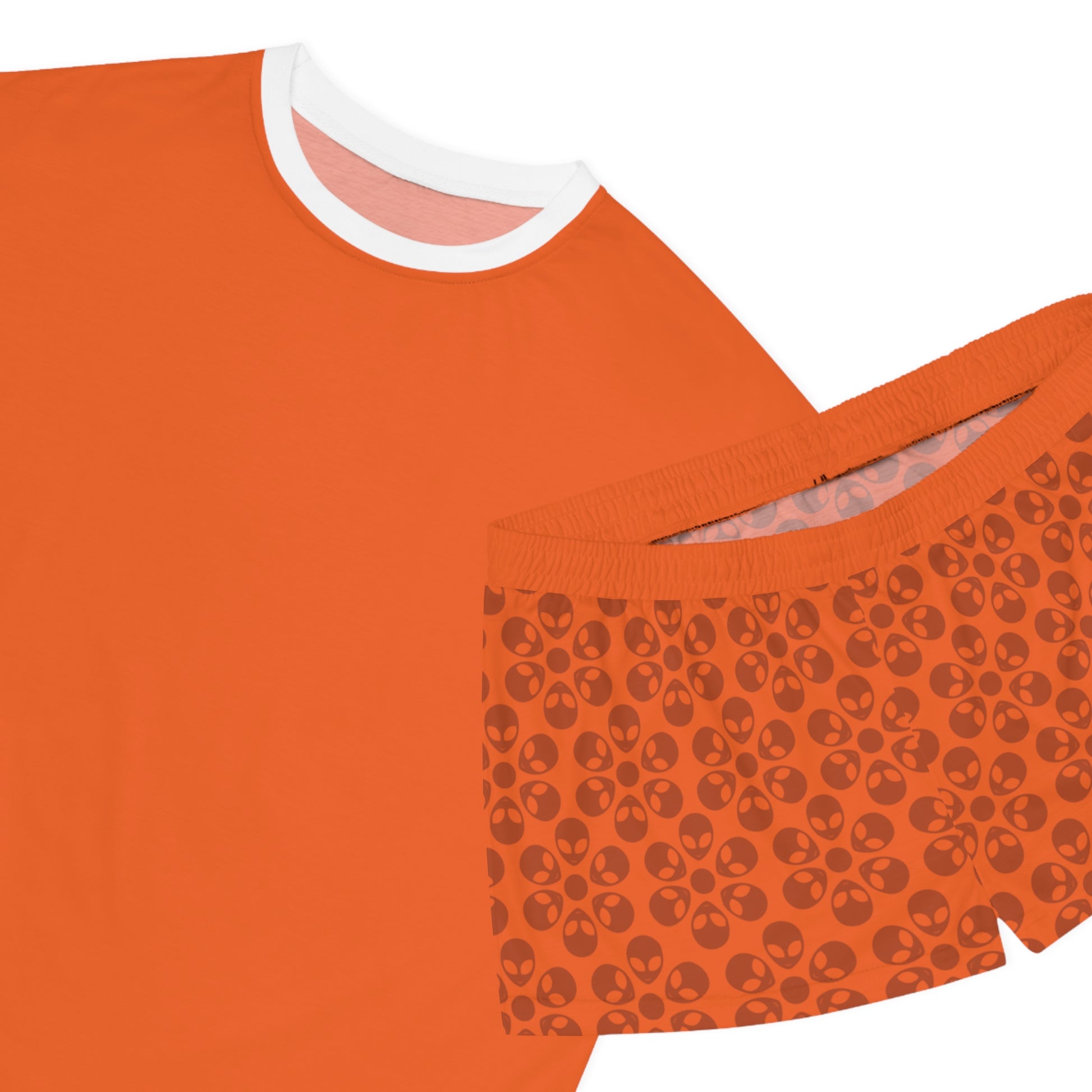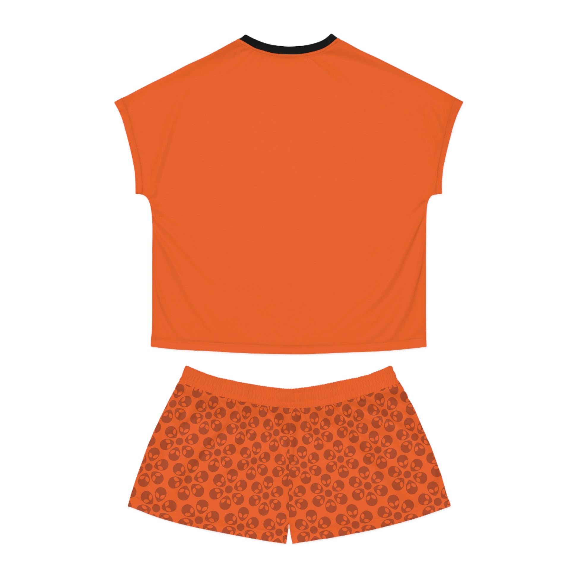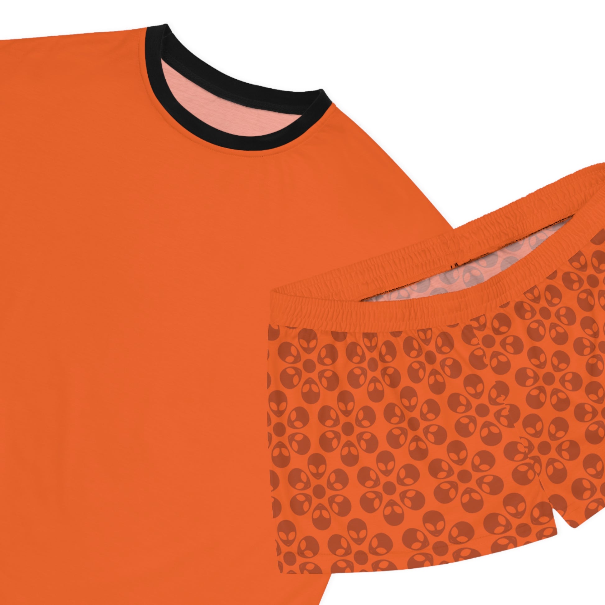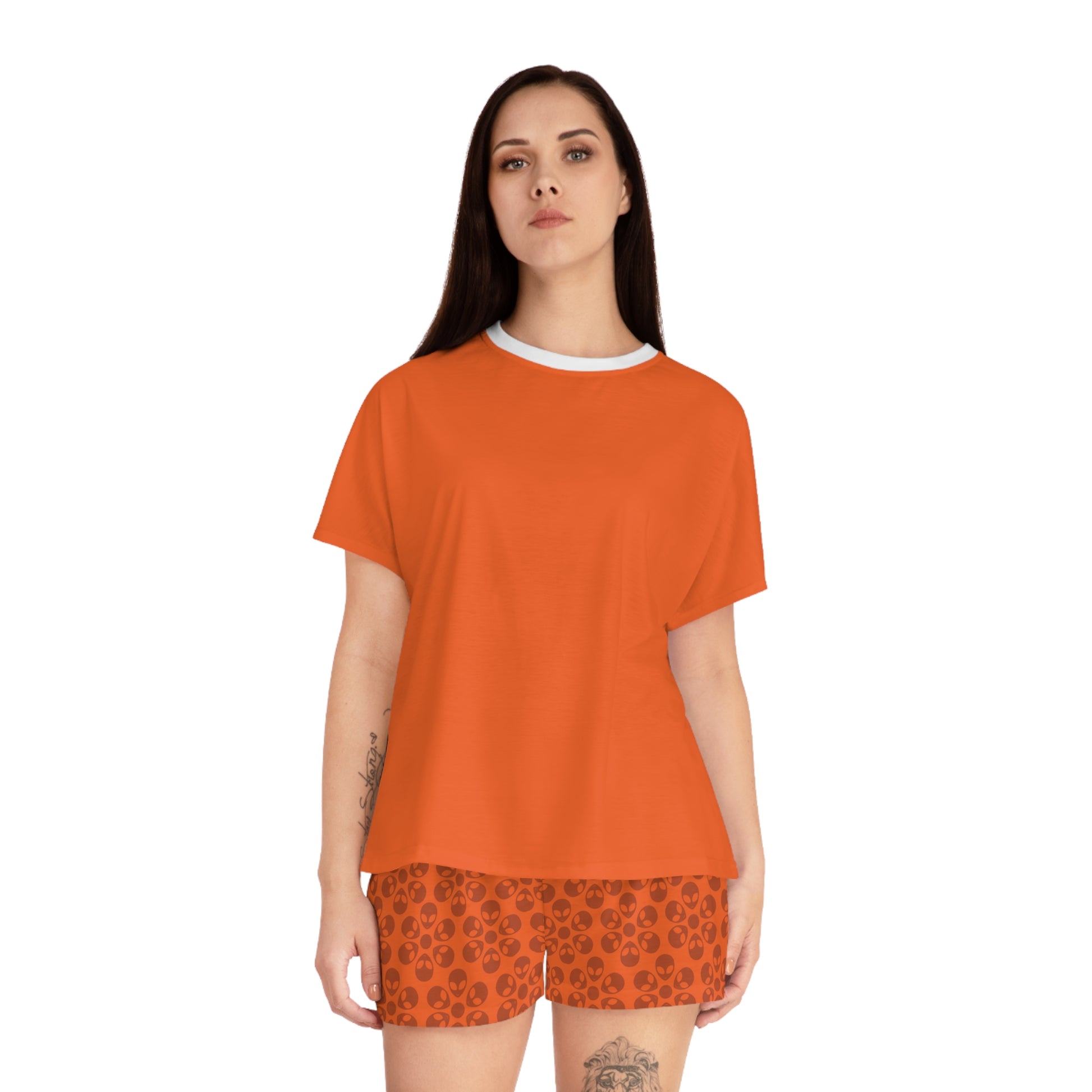 Stylish Womens Pajama Set Cozy Sleepwear AOP Floral Print Perfect for Lounging Gift for Her Summer Nights Relaxation Alien Flowers Orange