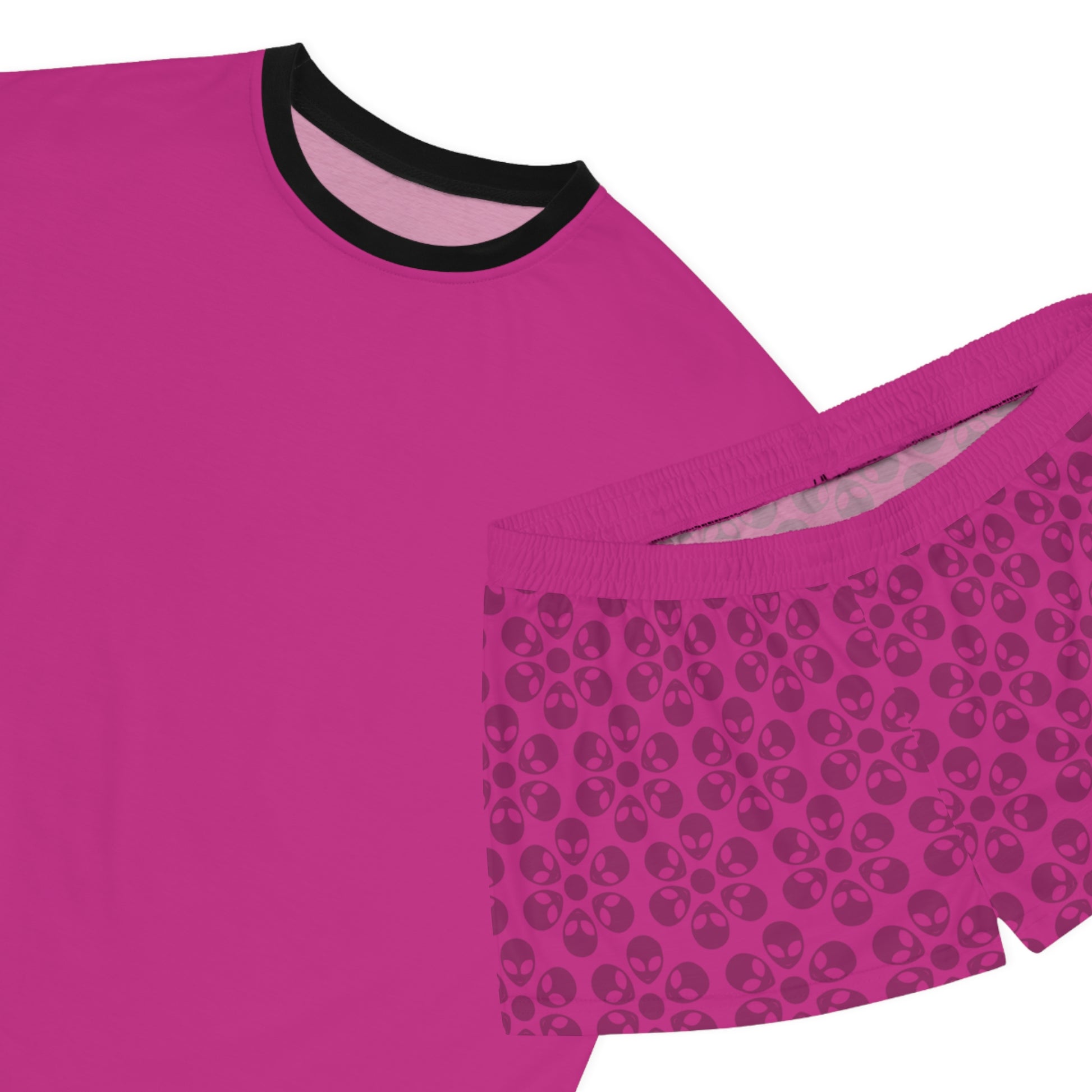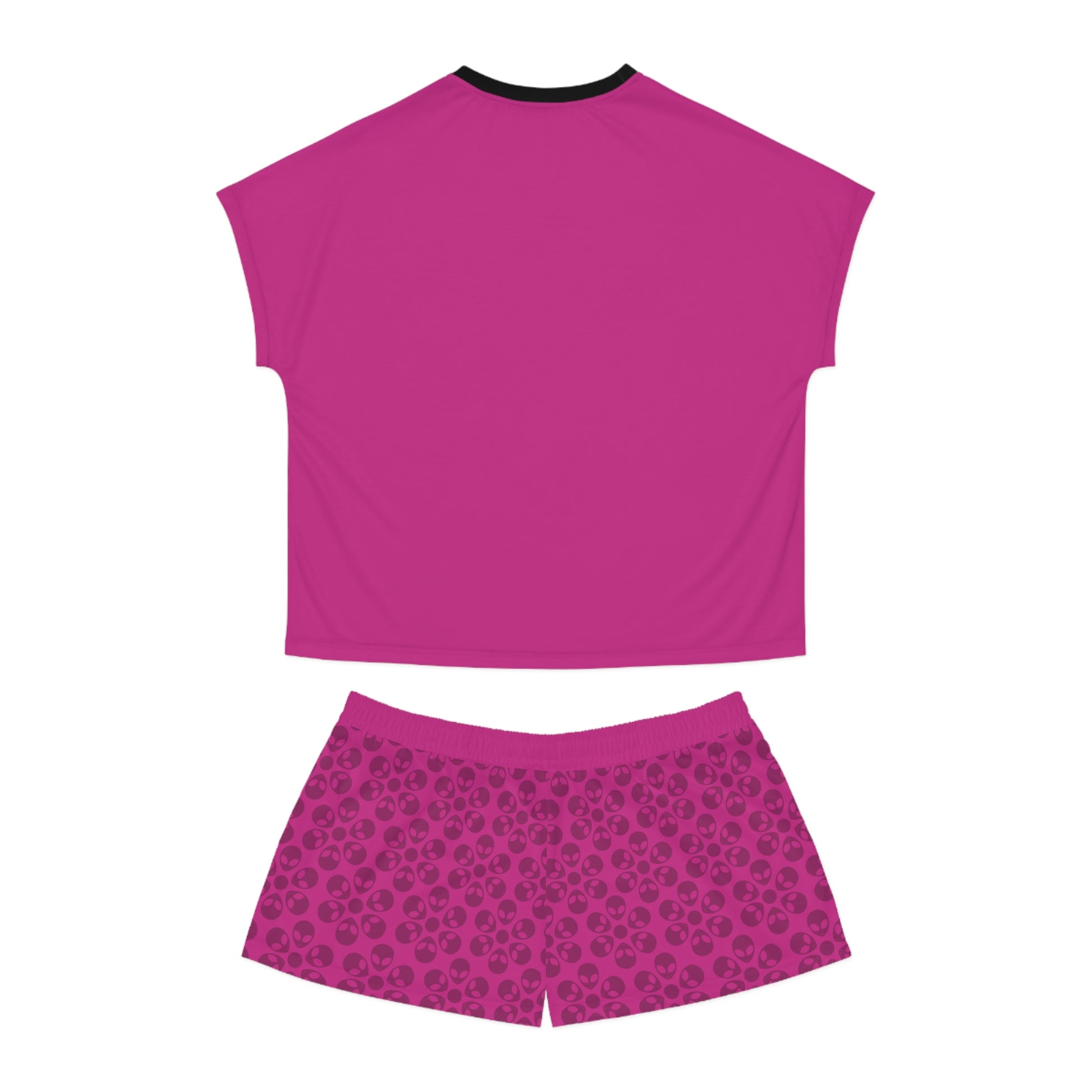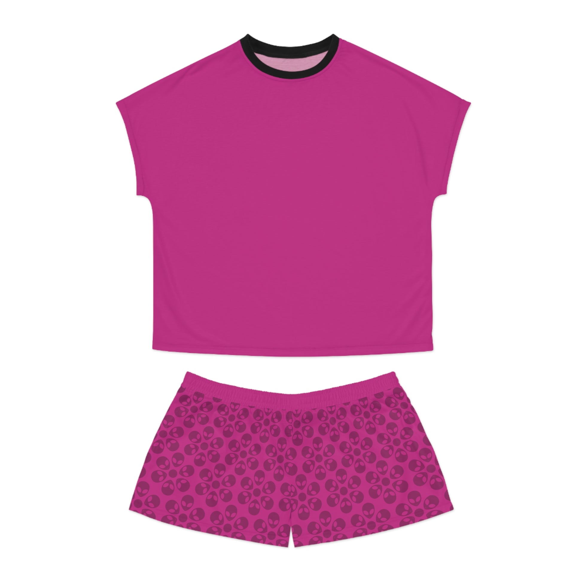 Stylish Womens Pajama Set Cozy Sleepwear AOP Floral Print Perfect for Lounging Gift for Her Summer Nights Relaxation Alien Flowers Pink