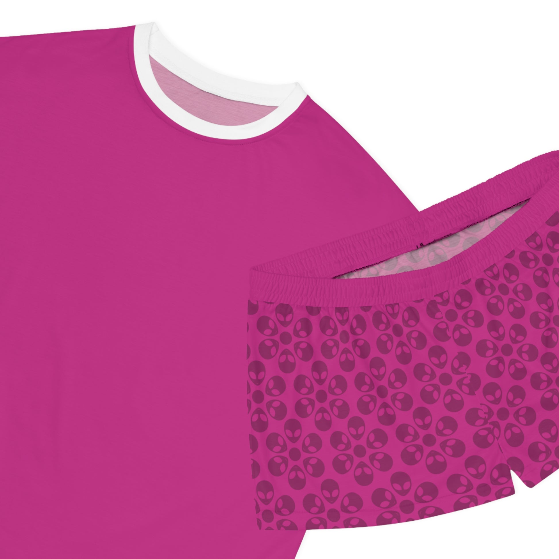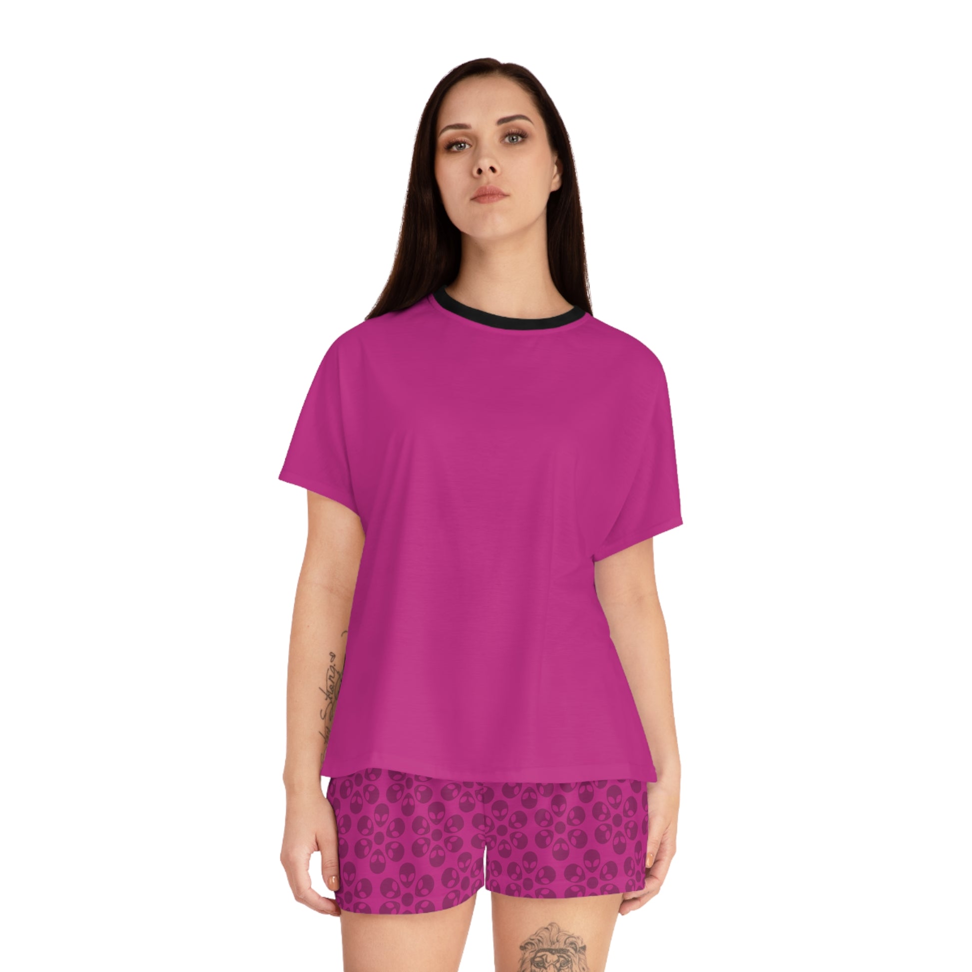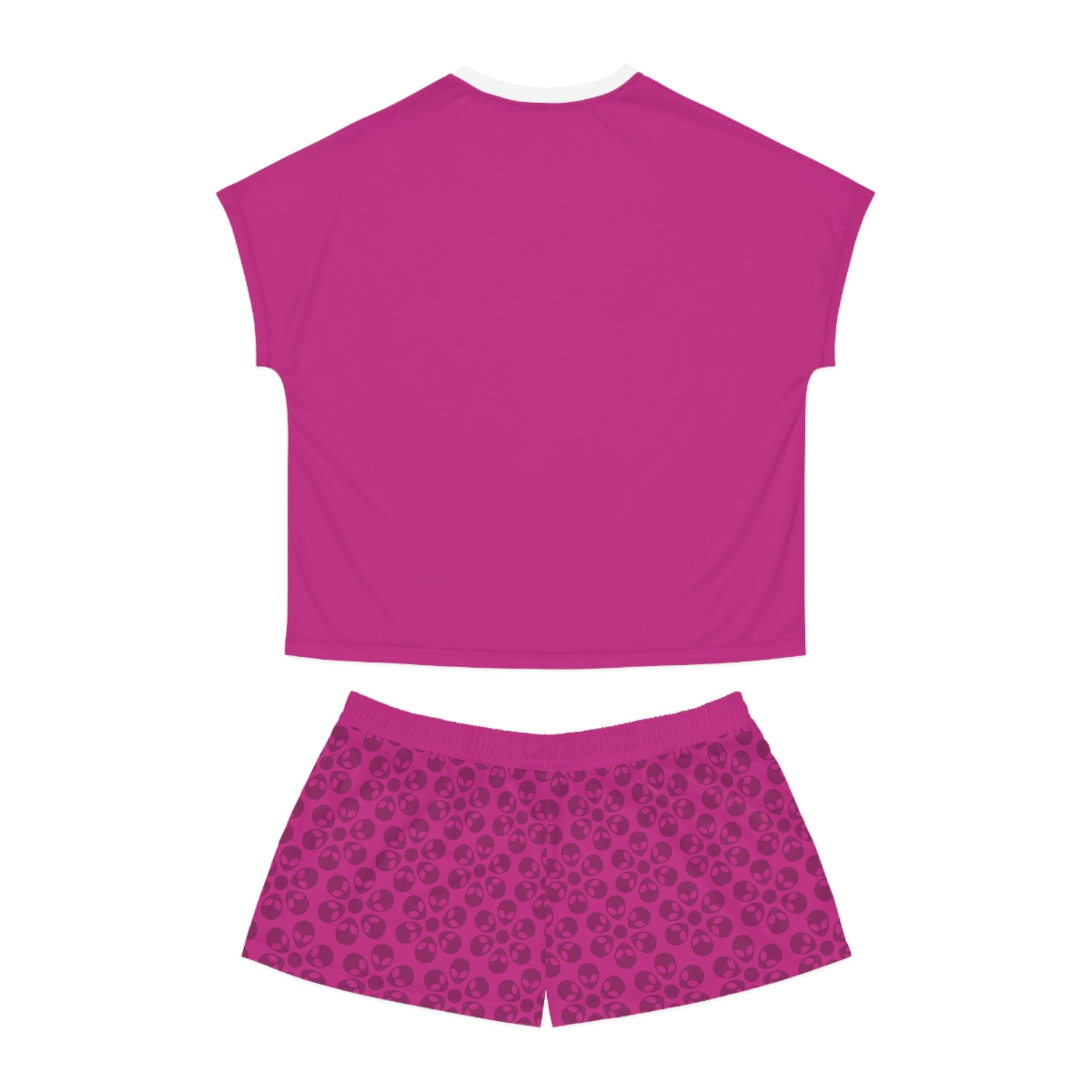 Stylish Womens Pajama Set Cozy Sleepwear AOP Floral Print Perfect for Lounging Gift for Her Summer Nights Relaxation Alien Flowers Pink