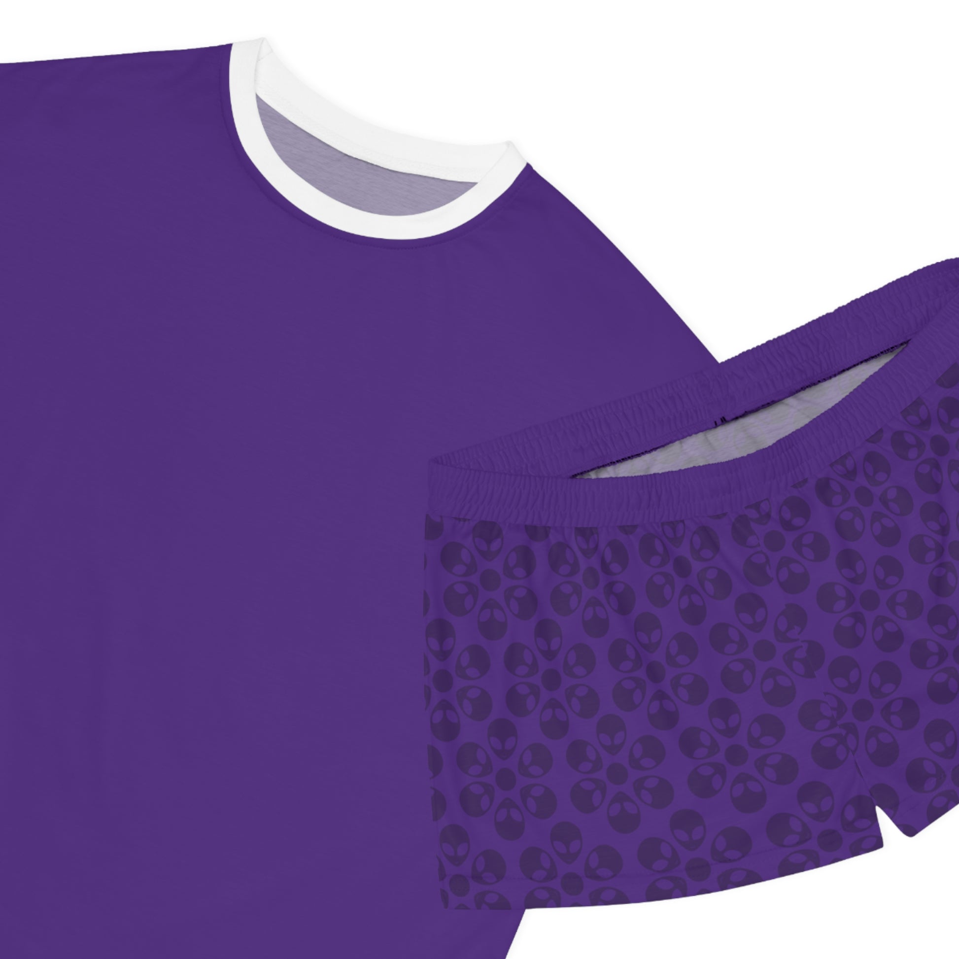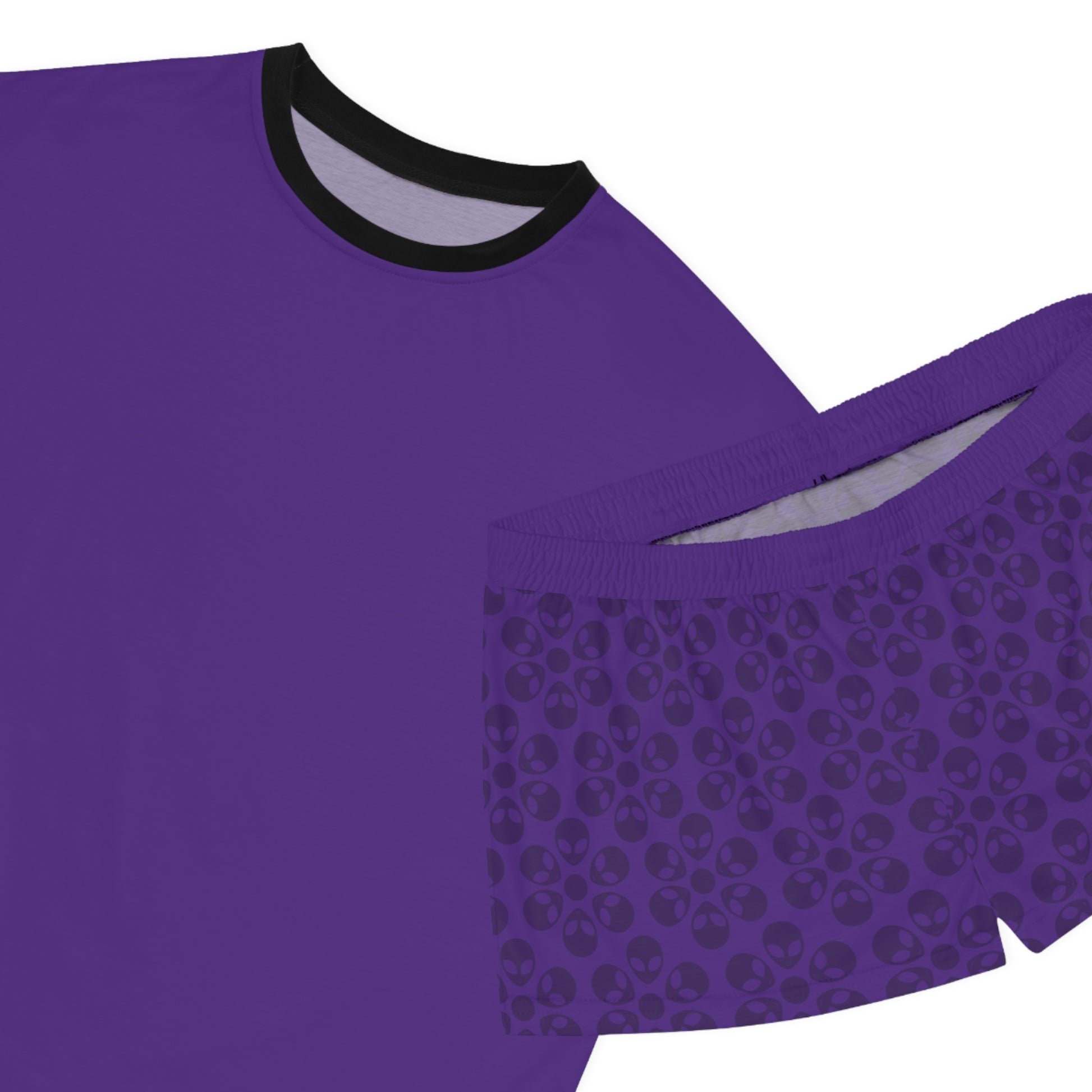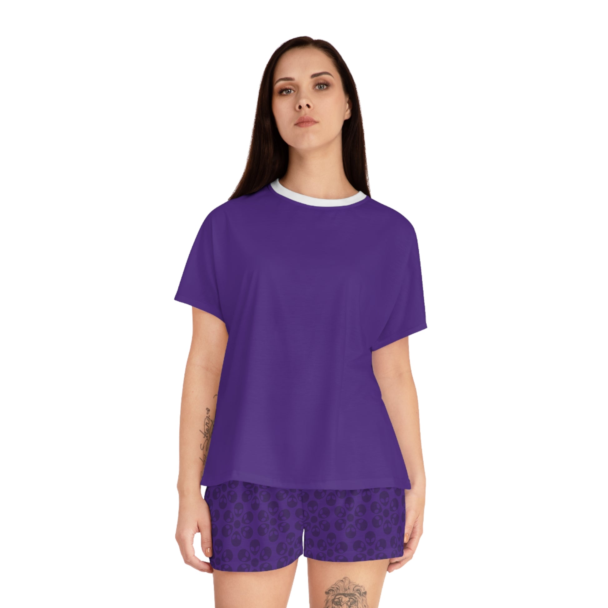 Stylish Womens Pajama Set Cozy Sleepwear AOP Floral Print Perfect for Lounging Gift for Her Summer Nights Relaxation Alien Flowers Purple