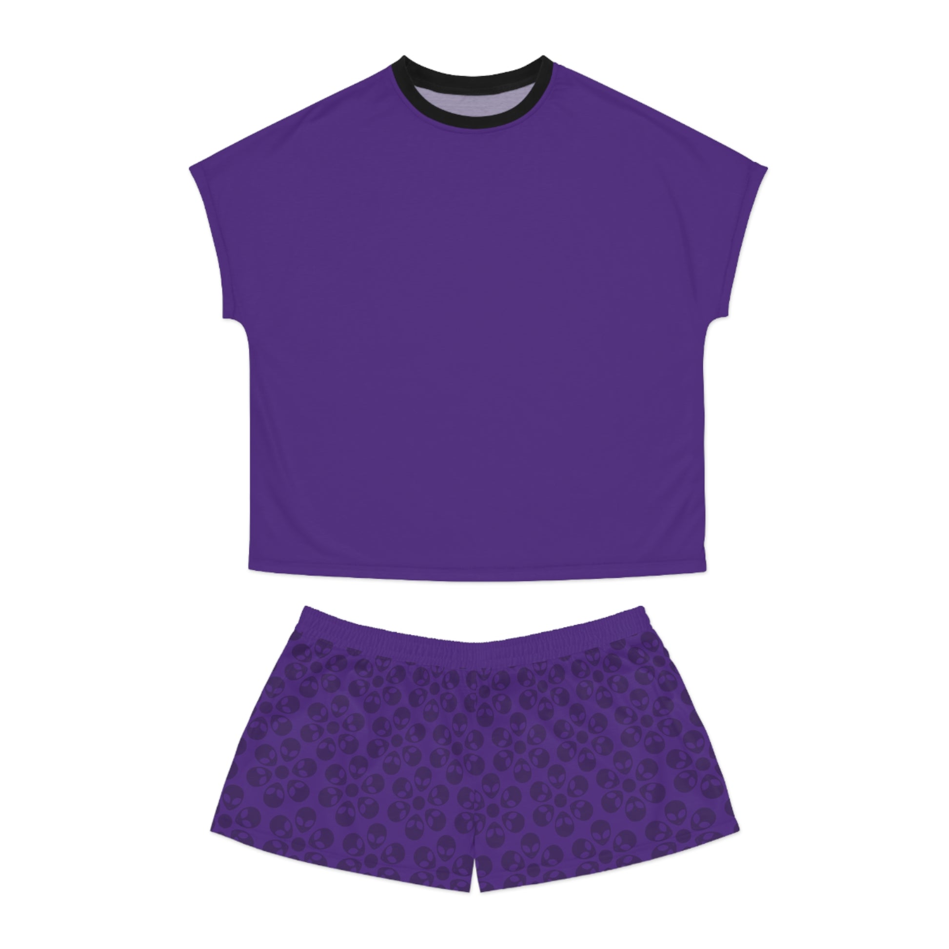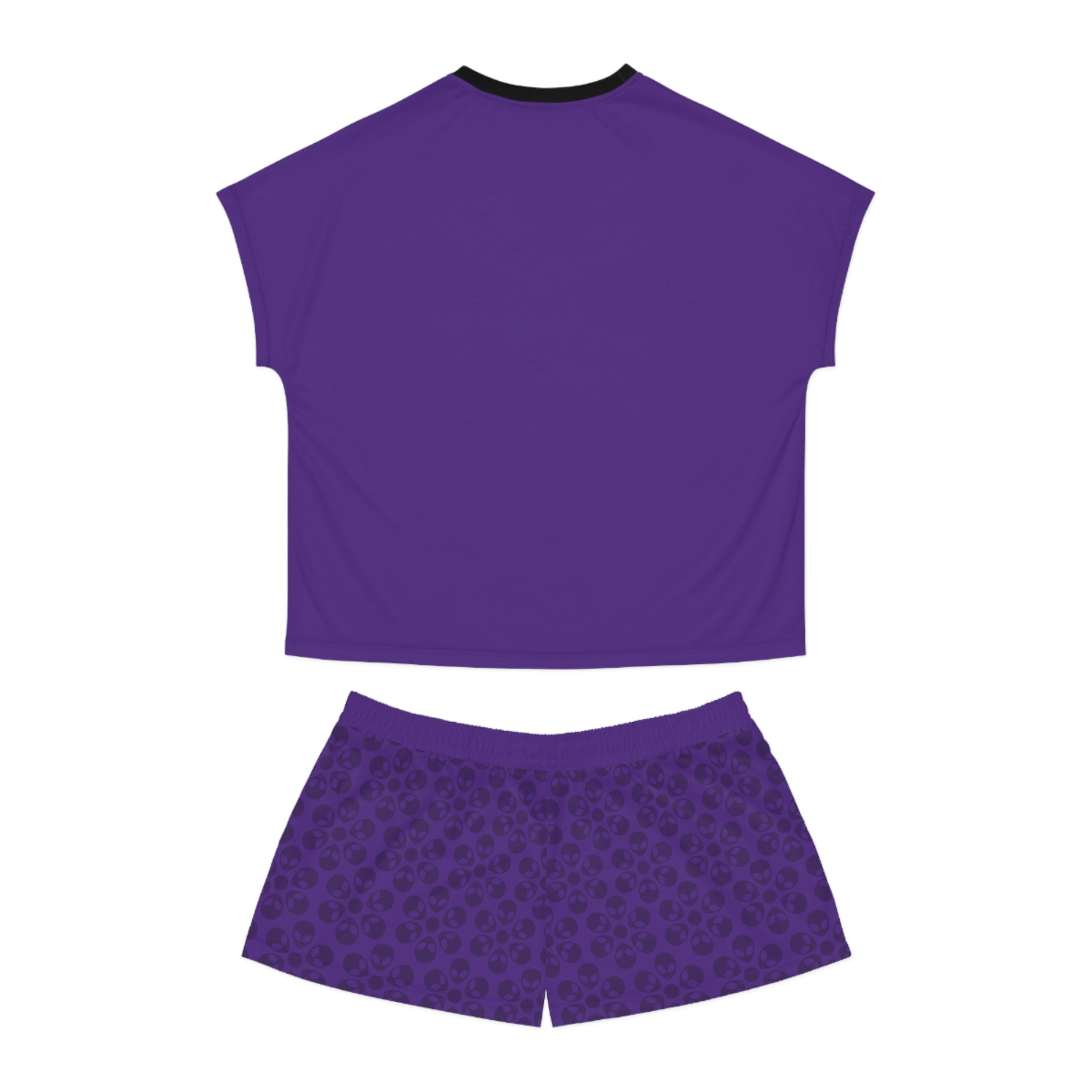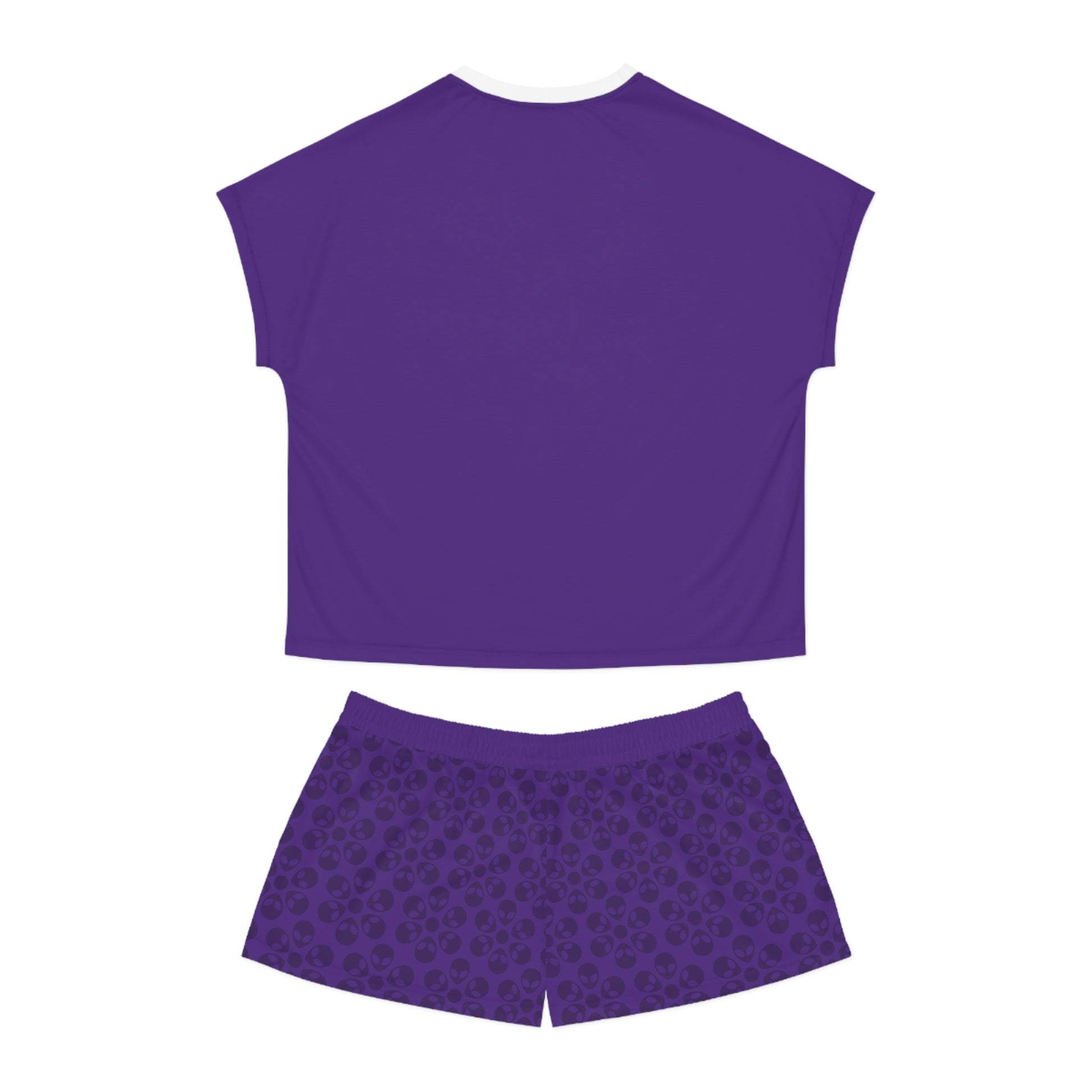 Stylish Womens Pajama Set Cozy Sleepwear AOP Floral Print Perfect for Lounging Gift for Her Summer Nights Relaxation Alien Flowers Purple