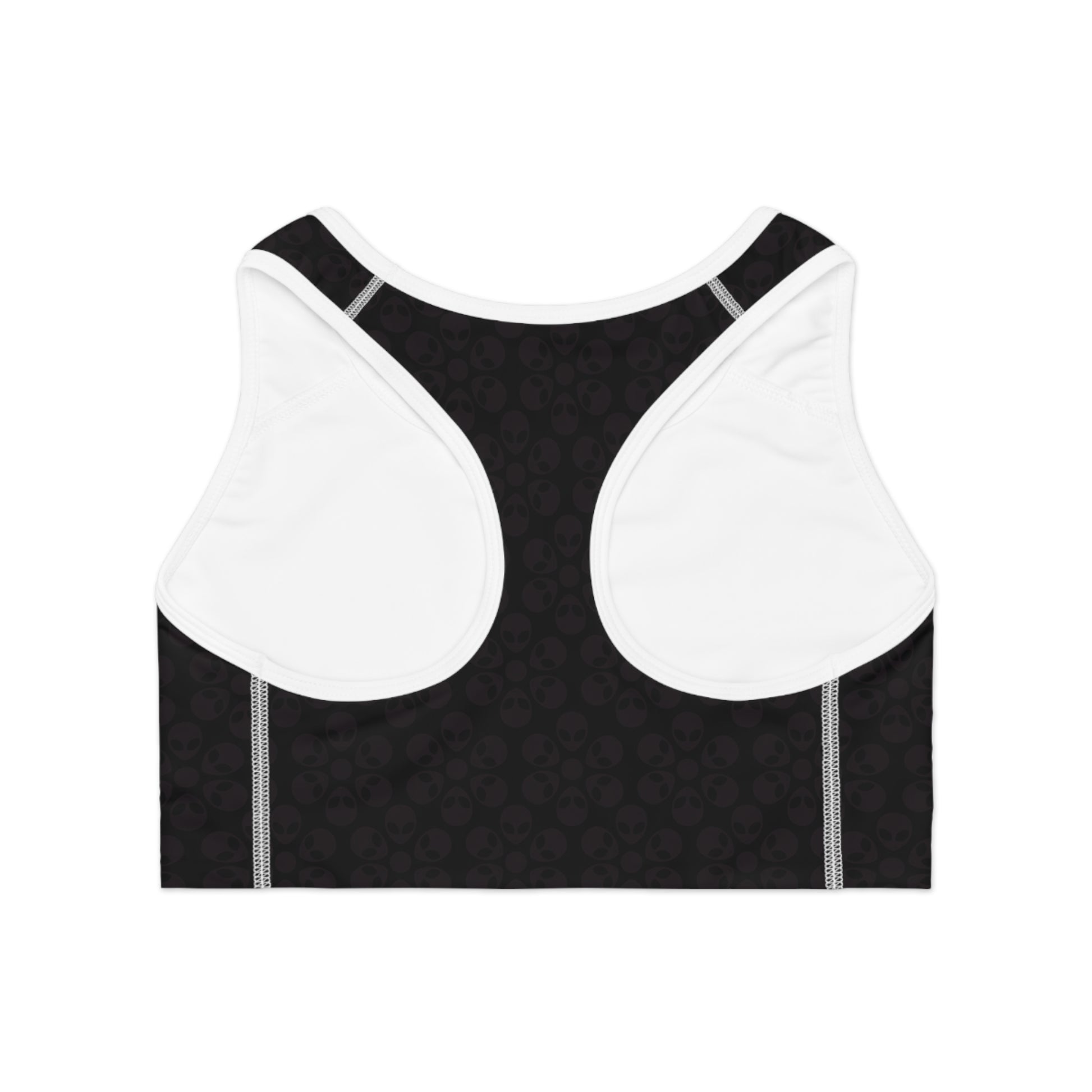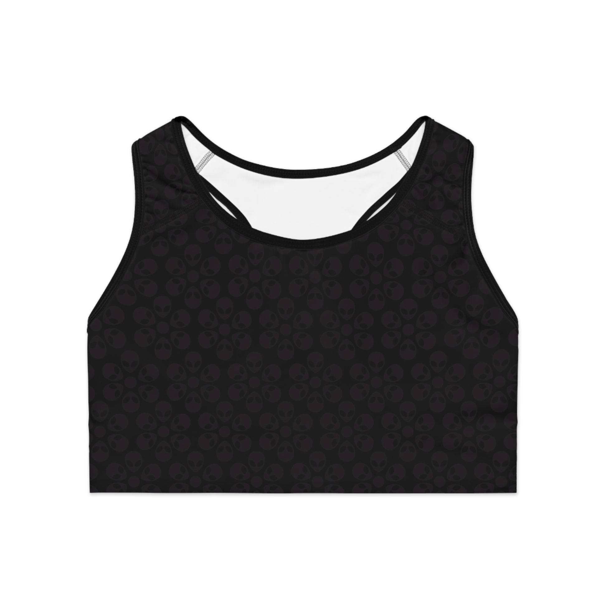 Trendy Floral Pattern Sports Bra Workout Bra for Women Fitness Gear Yoga Top Gym Wear Gift for Athletes Alien Flowers Black