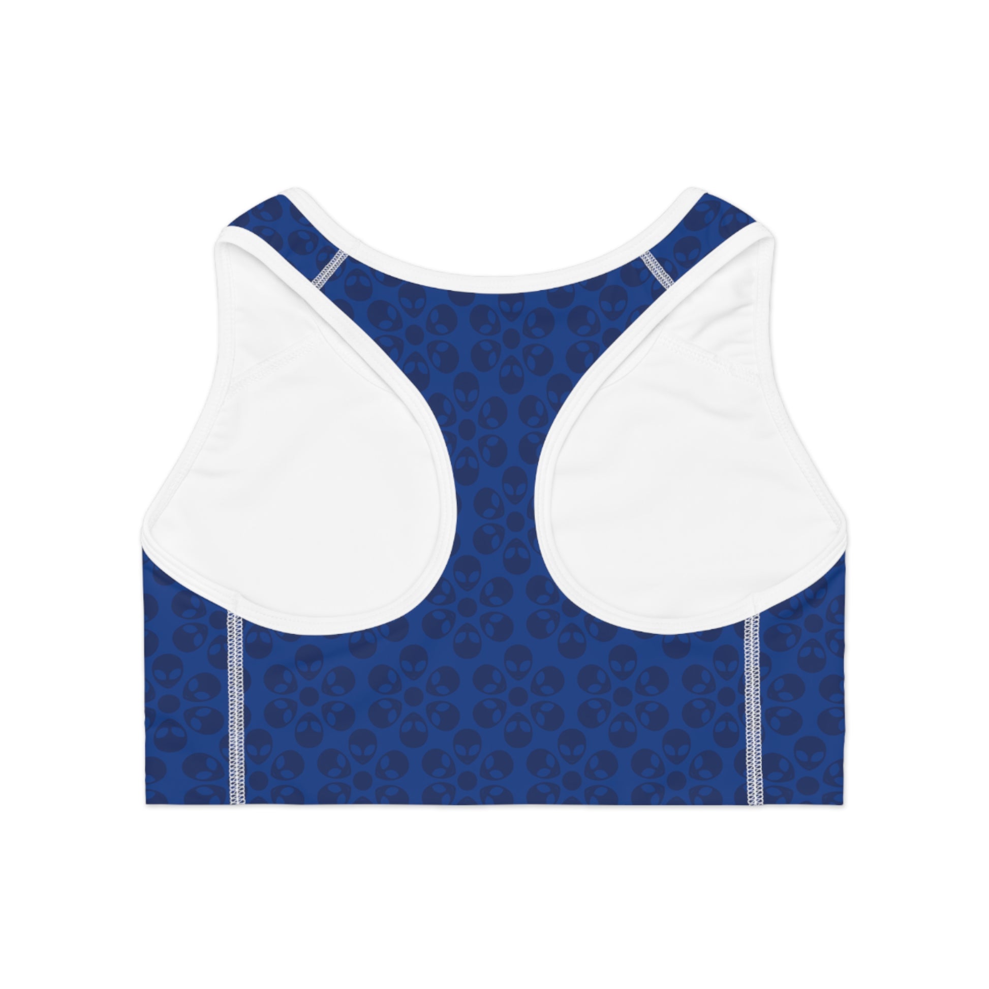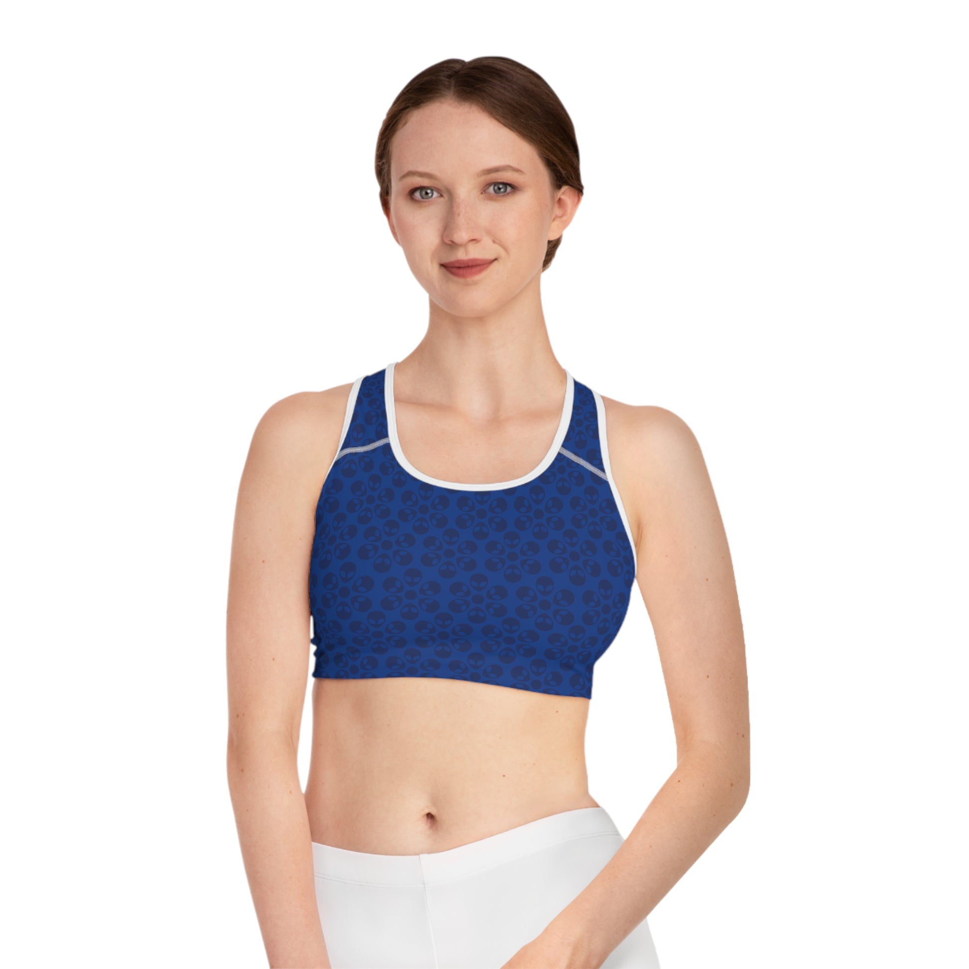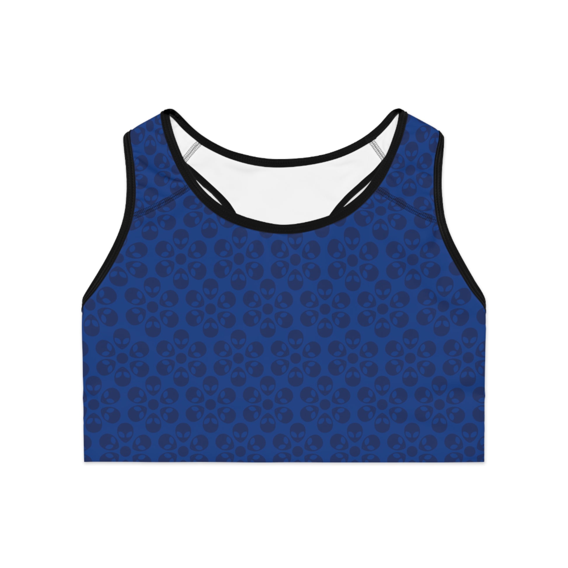 Trendy Floral Pattern Sports Bra Workout Bra for Women Fitness Gear Yoga Top Gym Wear Gift for Athletes Alien Flowers Dark Blue
