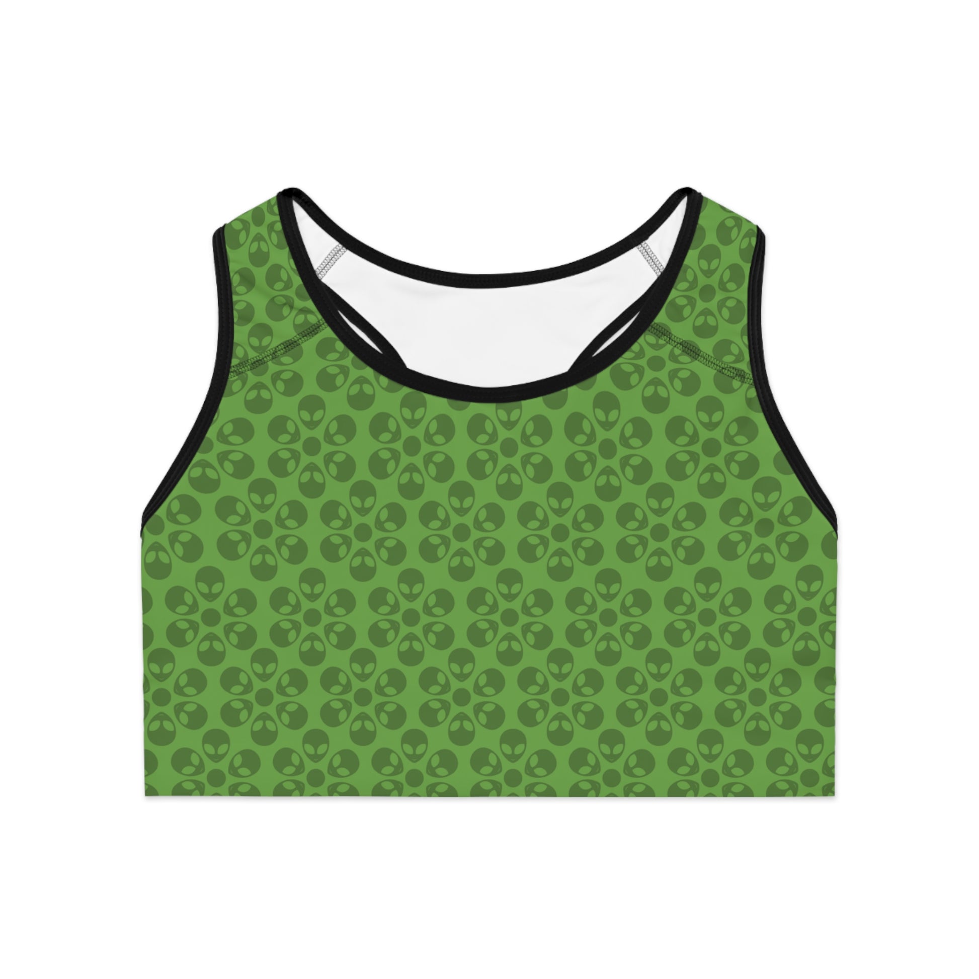 Trendy Floral Pattern Sports Bra Workout Bra for Women Fitness Gear Yoga Top Gym Wear Gift for Athletes Alien Flowers Green