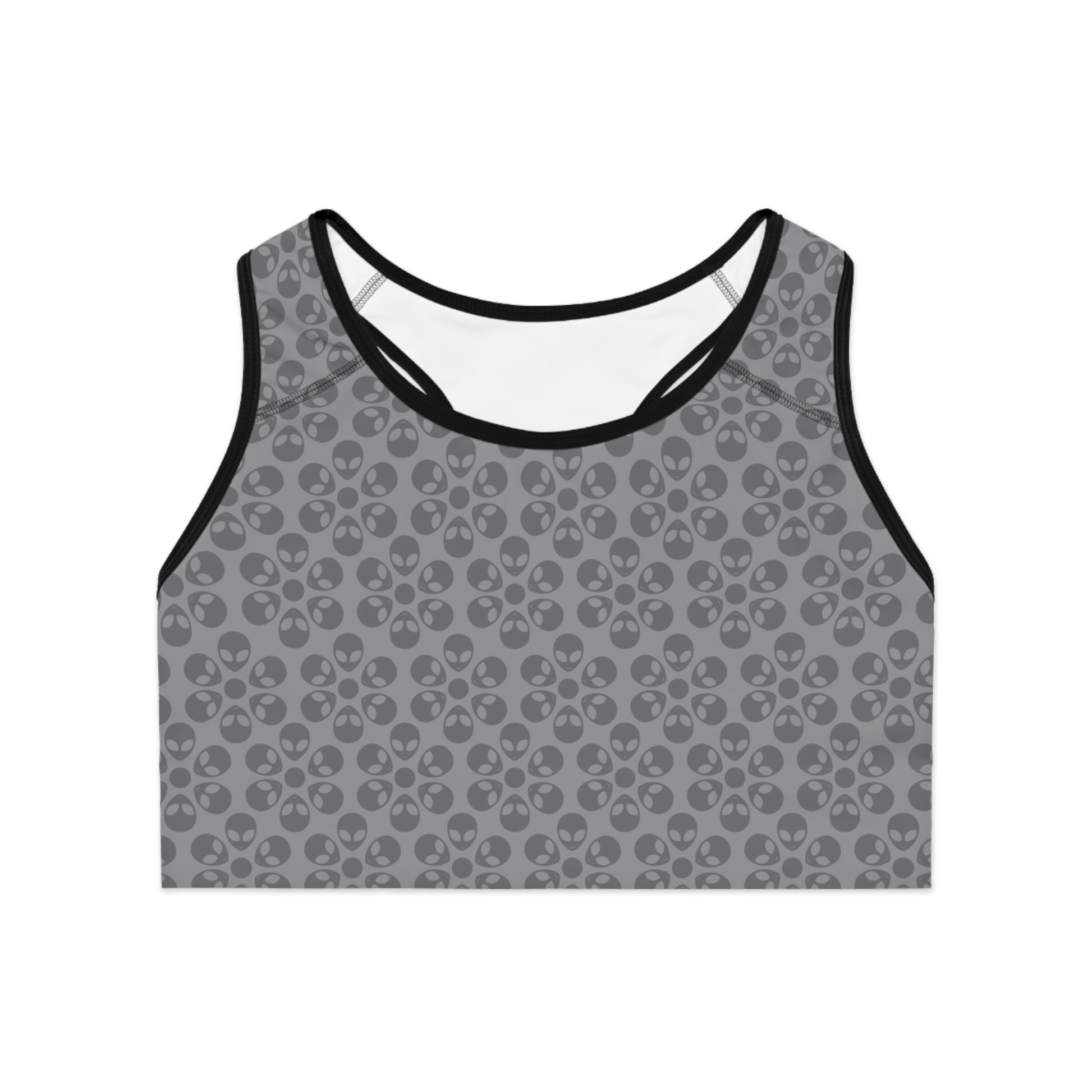 Trendy Floral Pattern Sports Bra Workout Bra for Women Fitness Gear Yoga Top Gym Wear Gift for Athletes Alien Flowers Grey