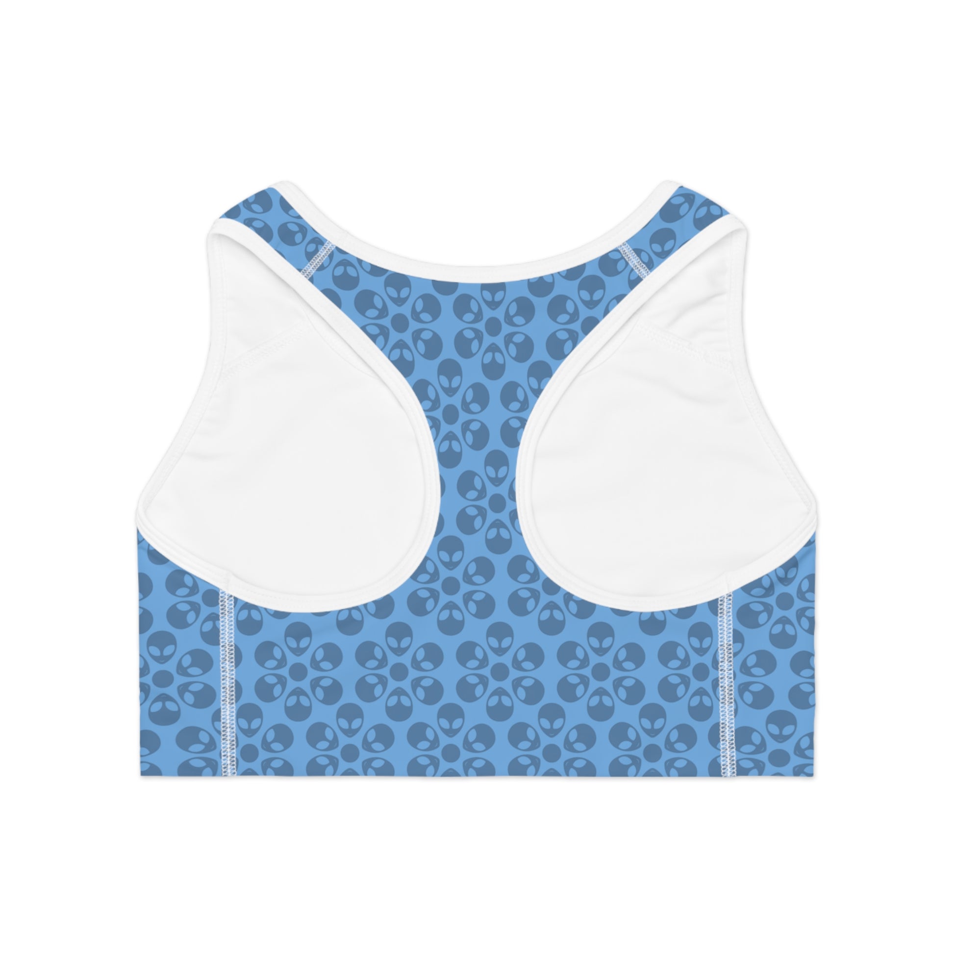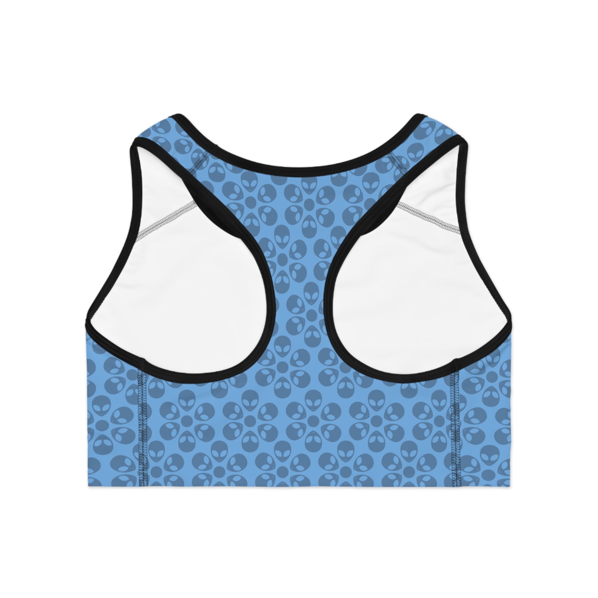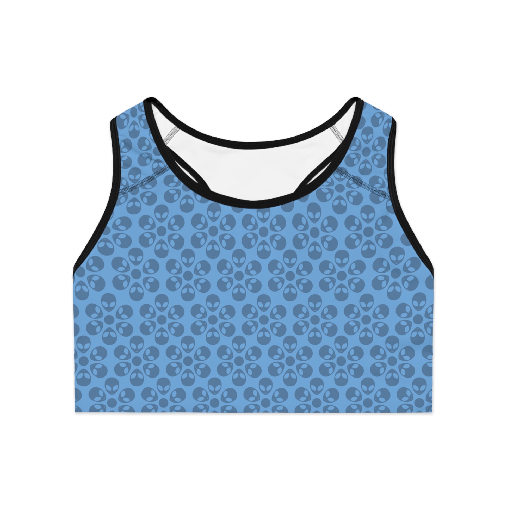 Trendy Floral Pattern Sports Bra Workout Bra for Women Fitness Gear Yoga Top Gym Wear Gift for Athletes Alien Flowers Light Blue