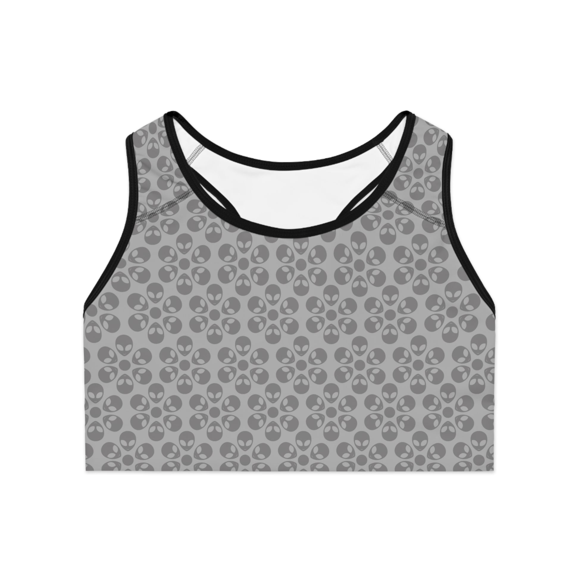Trendy Floral Pattern Sports Bra Workout Bra for Women Fitness Gear Yoga Top Gym Wear Gift for Athletes Alien Flowers Light Grey