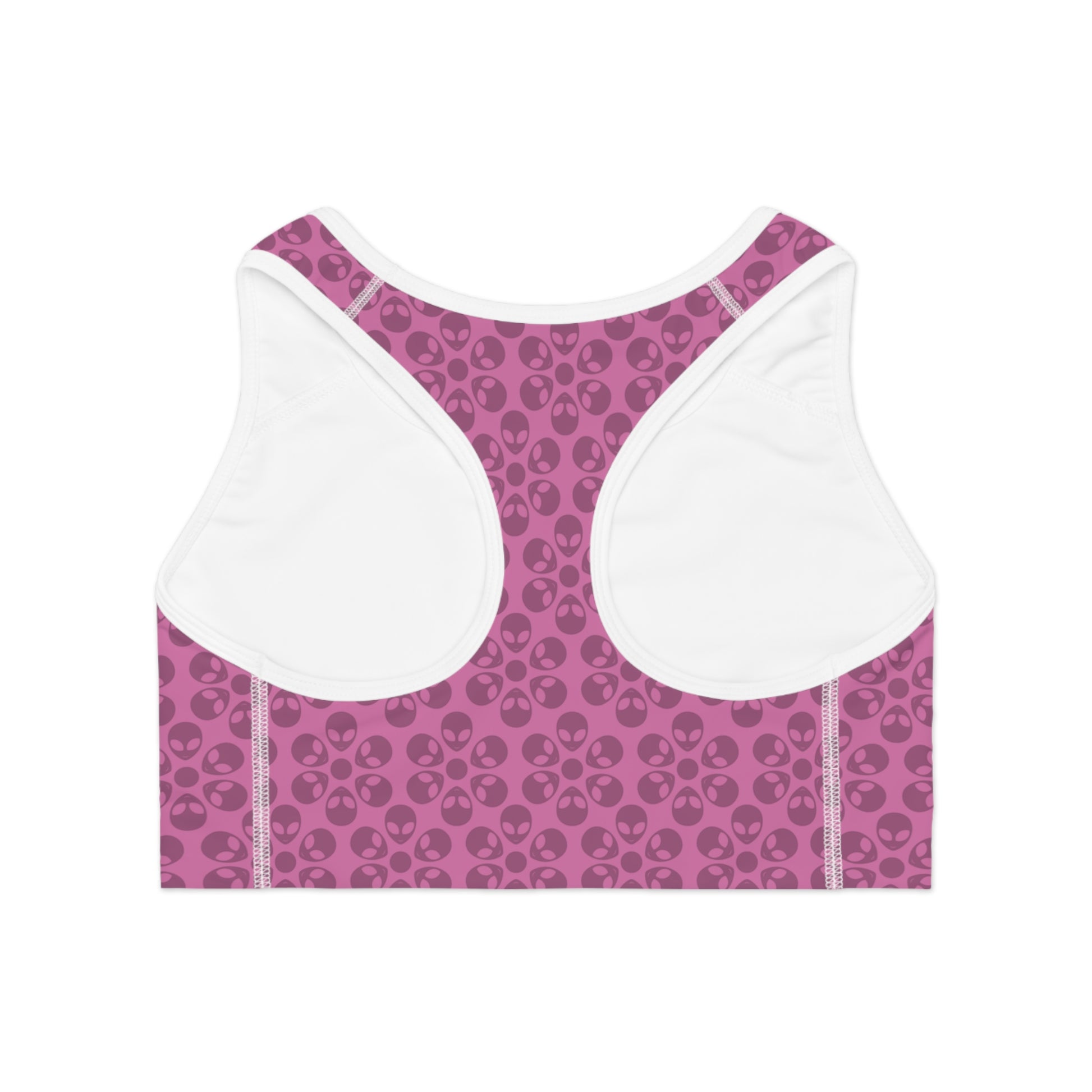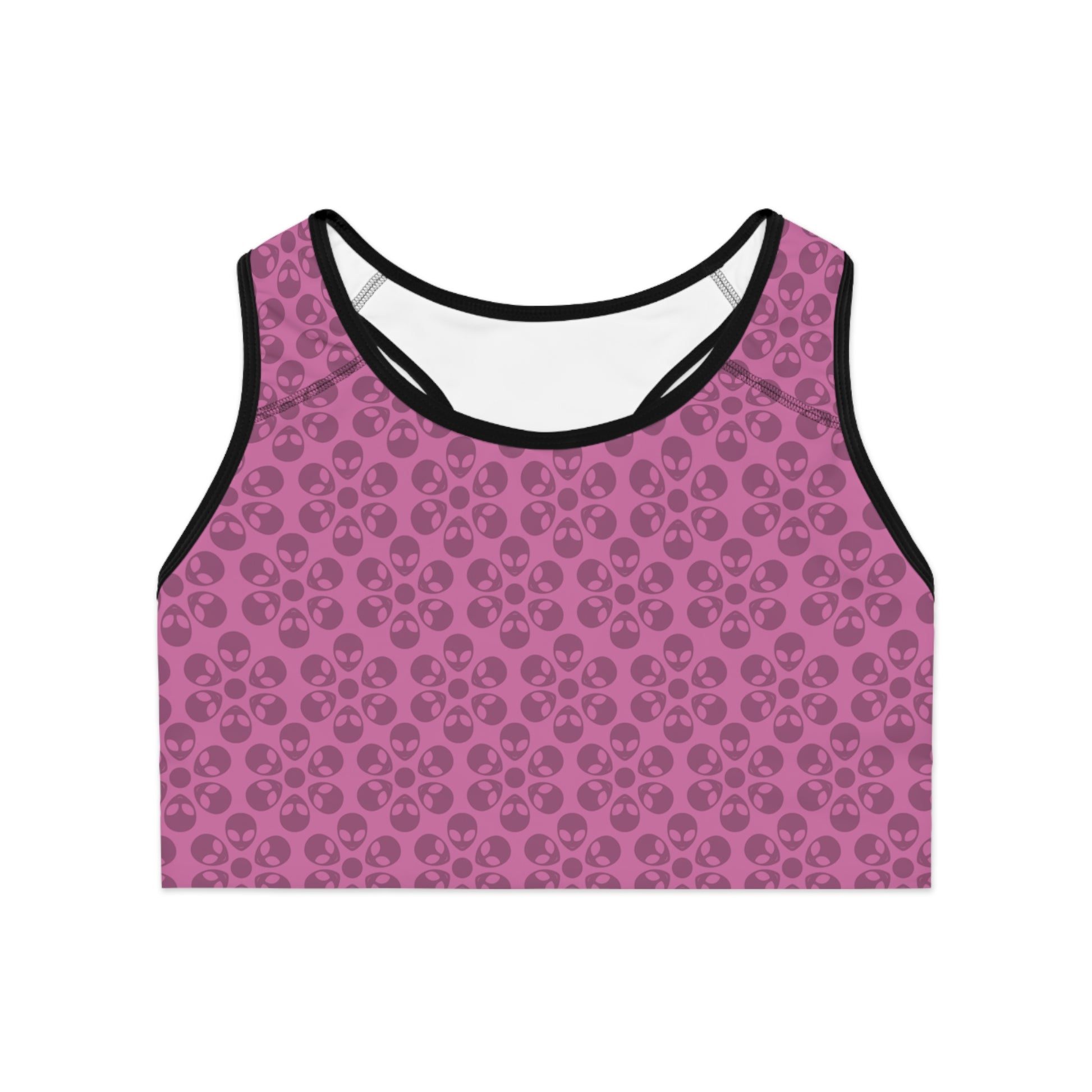 Trendy Floral Pattern Sports Bra Workout Bra for Women Fitness Gear Yoga Top Gym Wear Gift for Athletes Alien Flowers Light Pink