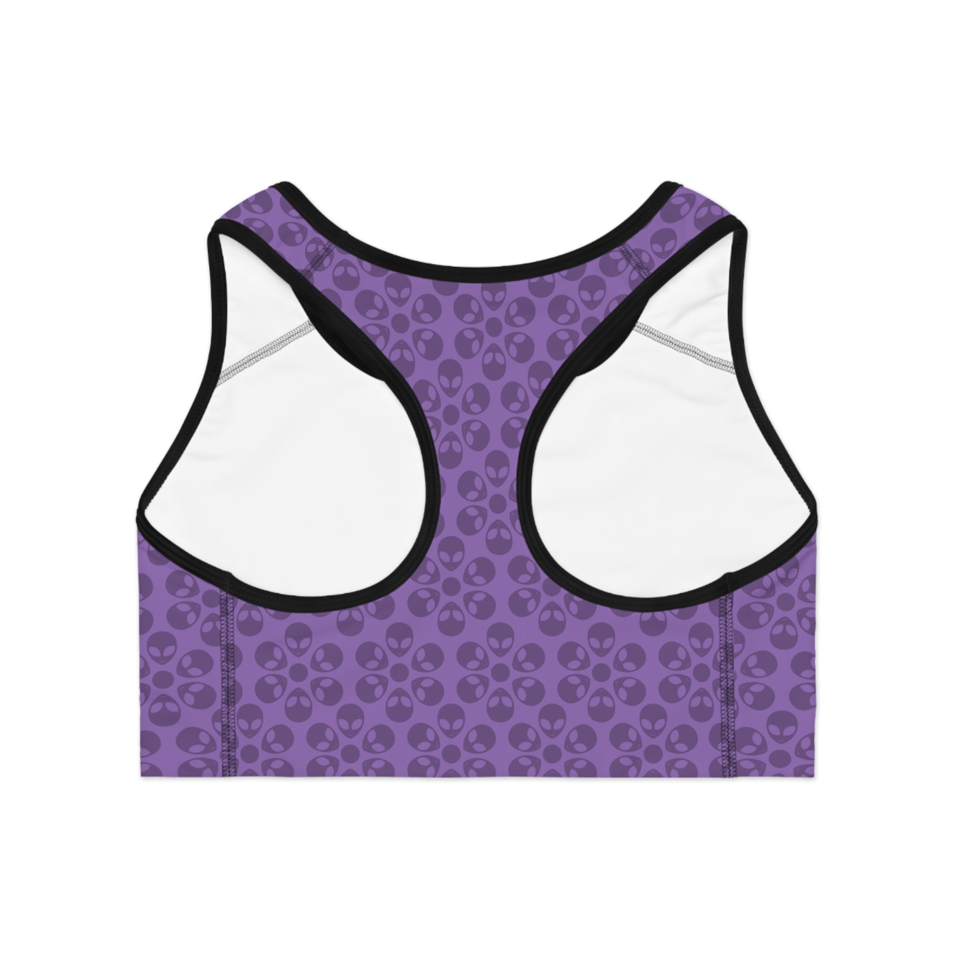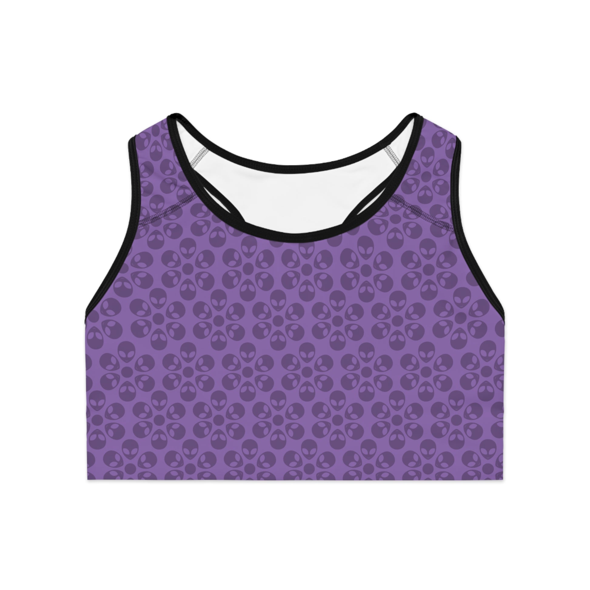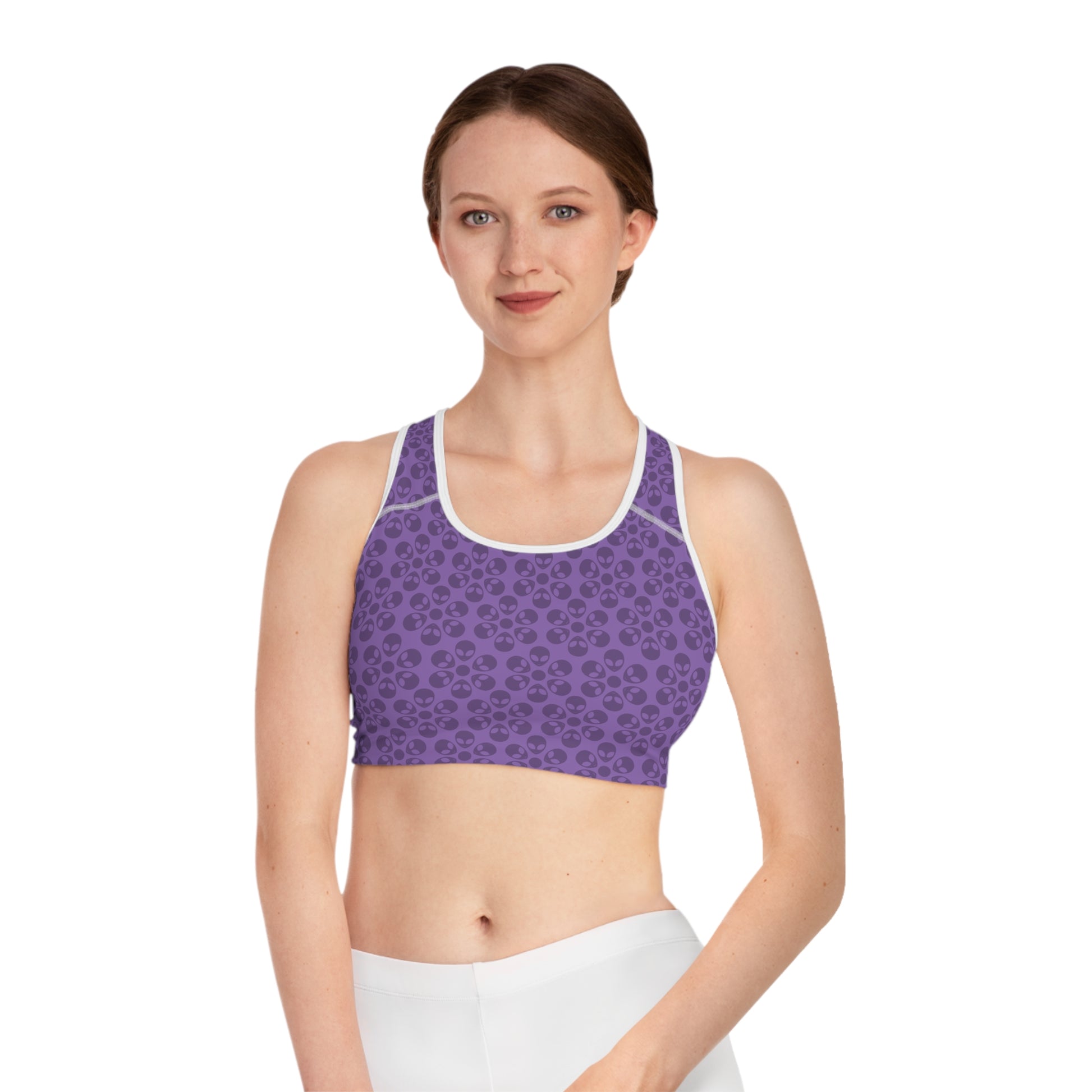 Trendy Floral Pattern Sports Bra Workout Bra for Women Fitness Gear Yoga Top Gym Wear Gift for Athletes Alien Flowers Light Purple