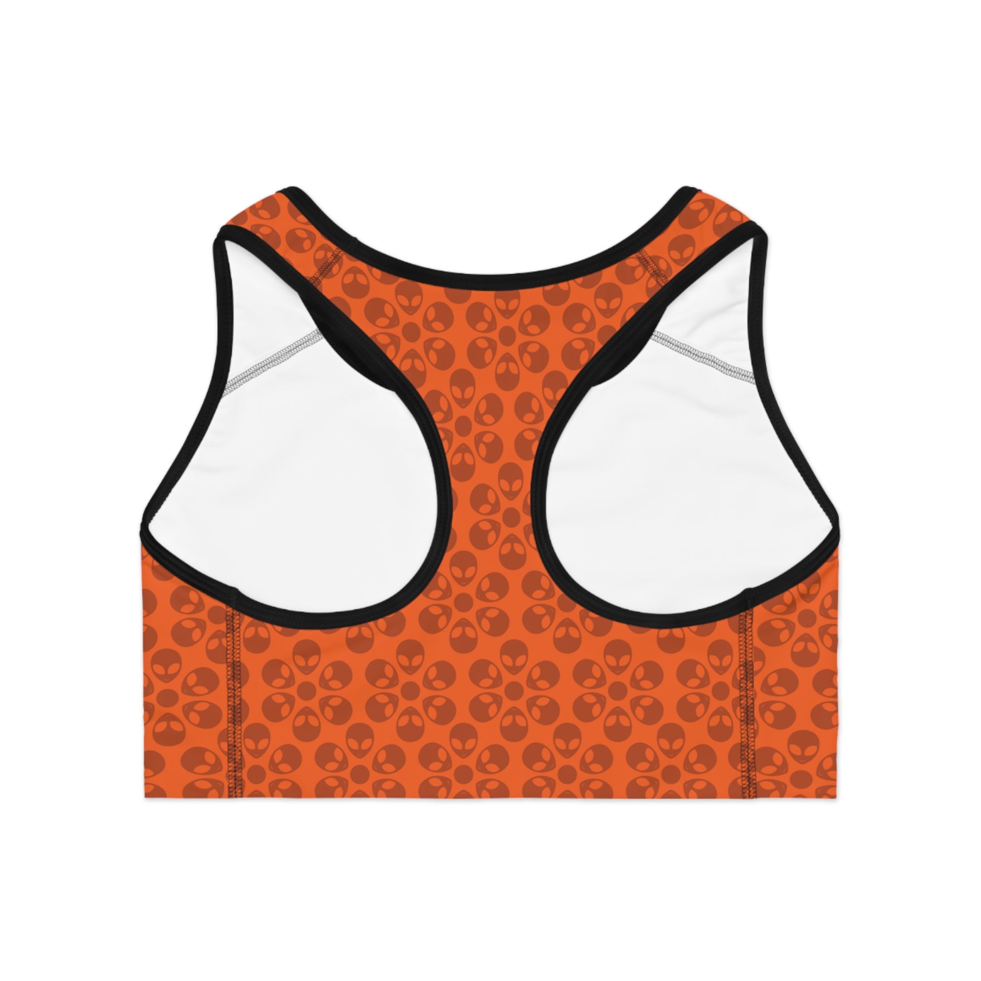 Trendy Floral Pattern Sports Bra Workout Bra for Women Fitness Gear Yoga Top Gym Wear Gift for Athletes Alien Flowers Orange