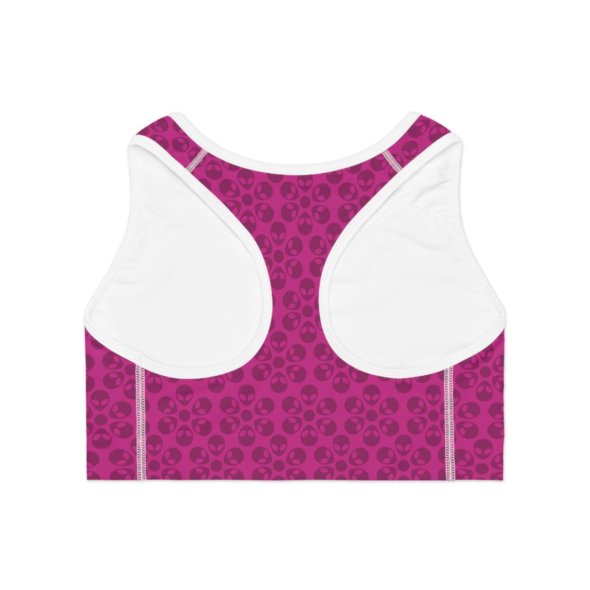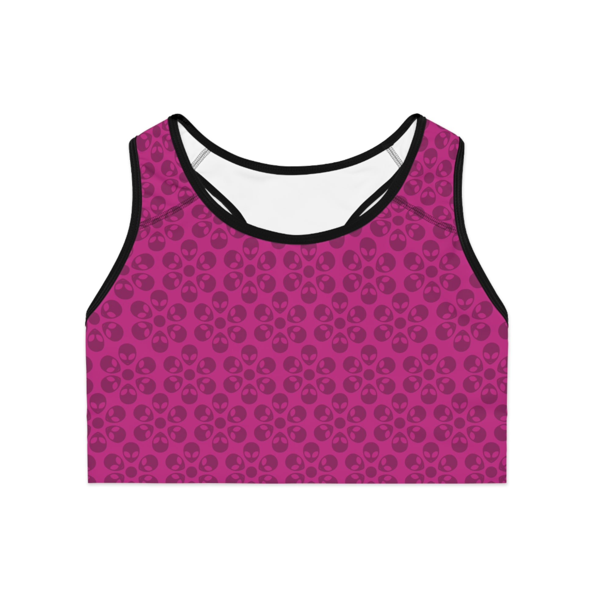 Trendy Floral Pattern Sports Bra Workout Bra for Women Fitness Gear Yoga Top Gym Wear Gift for Athletes Alien Flowers Pink
