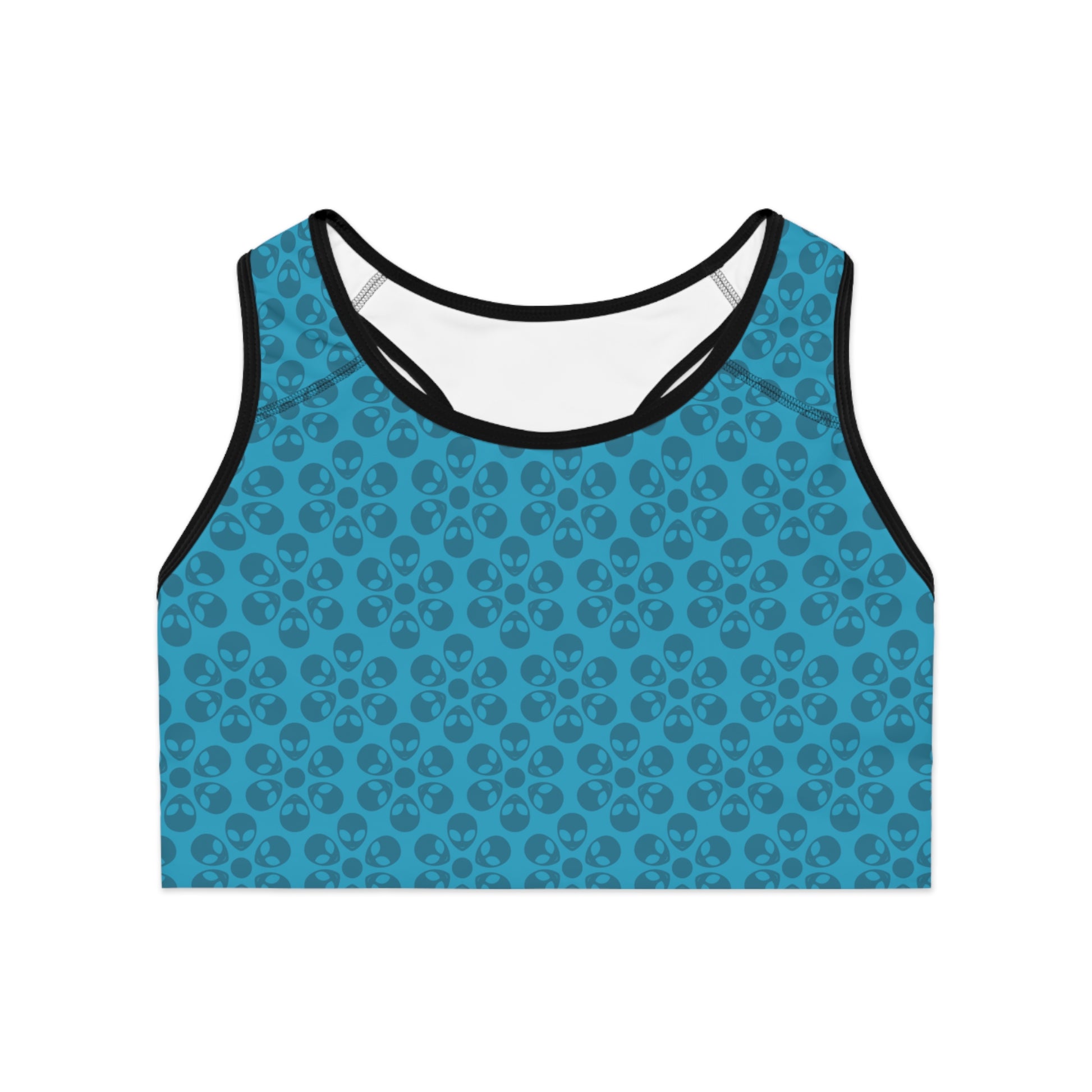 Trendy Floral Pattern Sports Bra Workout Bra for Women Fitness Gear Yoga Top Gym Wear Gift for Athletes Alien Flowers Turquoise