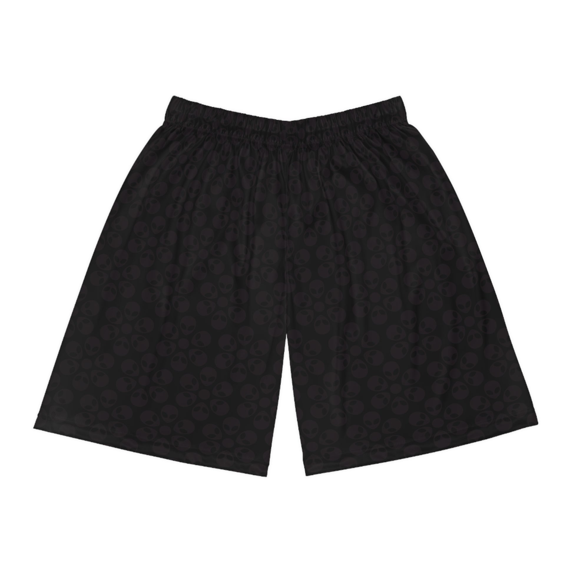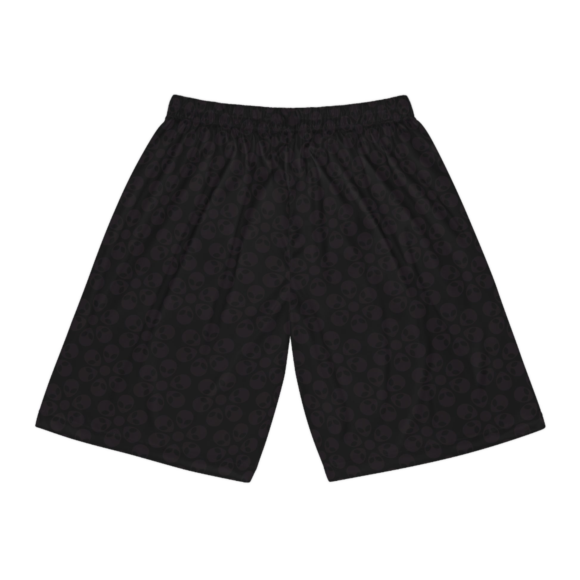 Trendy Skull Pattern Basketball Shorts Summer Activewear Sports Apparel Casual Wear Beach Shorts Gift for Basketball Lovers Alien Flowers Black